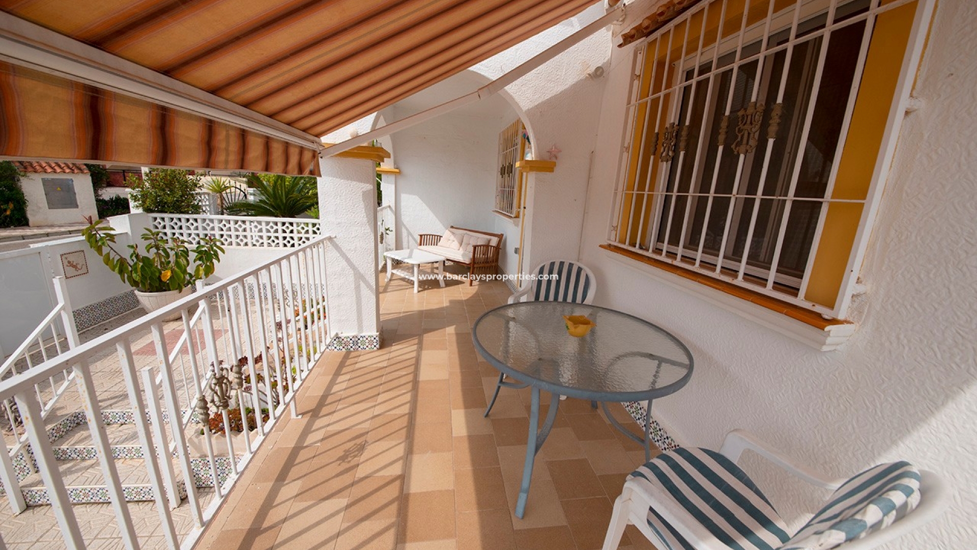 Veel extra's zijn inbegrepen zoals airconditioning, plafondventilatoren, aluminium ramen, horren, inbouwkasten, elektrische toegangspoort en zonneschermen. Deze woning wordt volledig gemeubileerd aangeboden en verkeert in uitstekende staat.