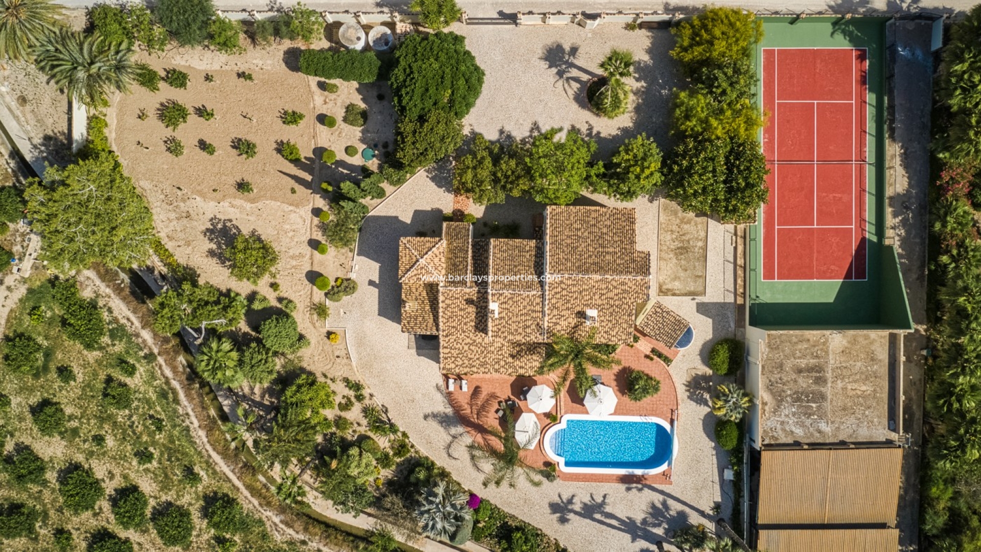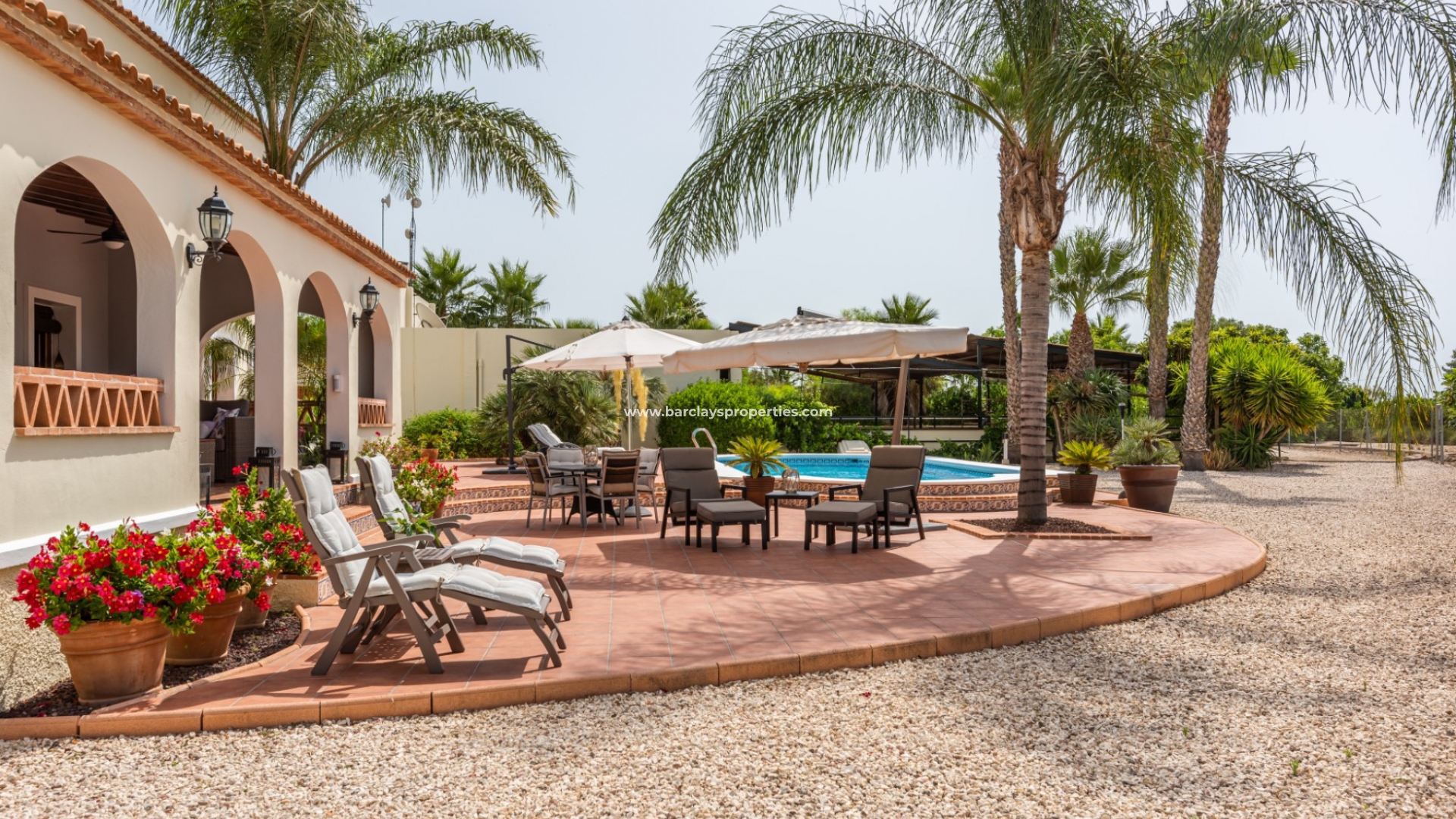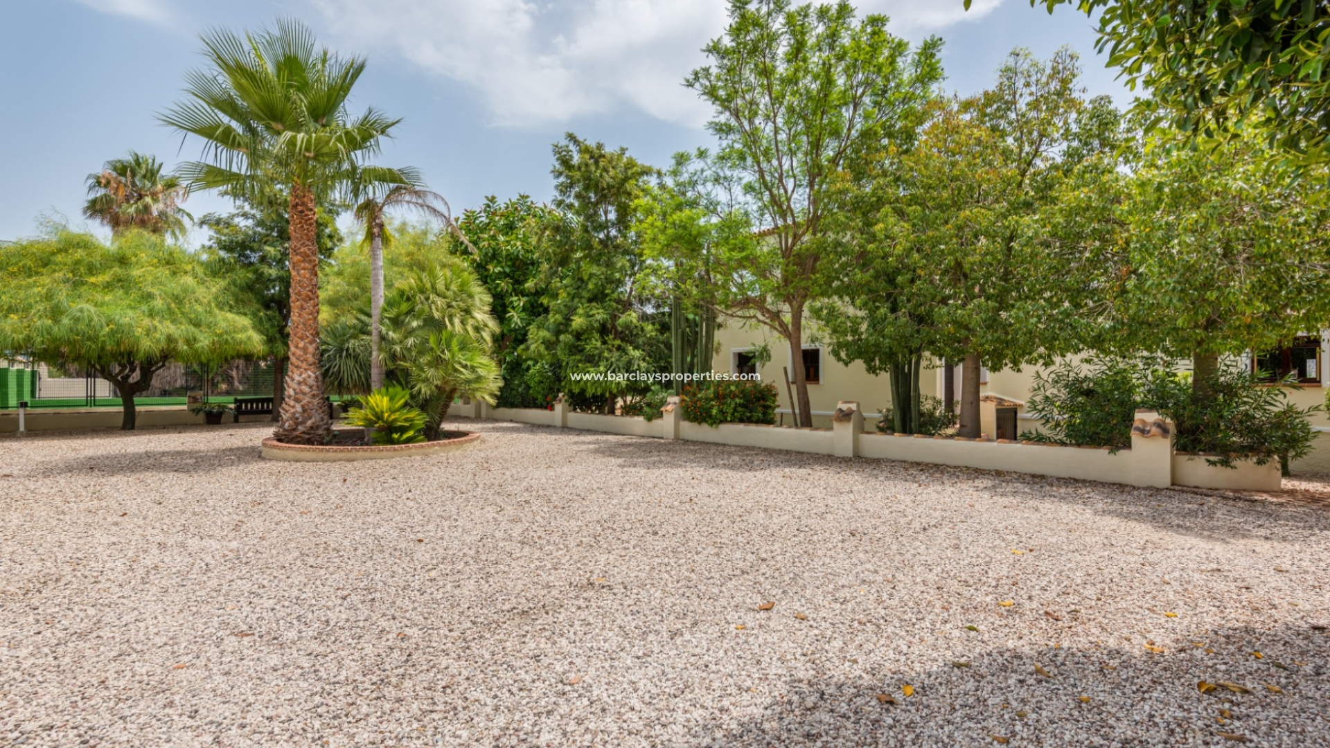 Met trots presenteren wij deze prachtige vrijstaande villa op het platteland nabij de stad Almoradi. Het is slechts vijf minuten rijden naar alle voorzieningen en 40 minuten rijden naar de luchthaven van Alicante. Dit is een prachtige en zeer ruime woning van 370 m2 op een uitzonderlijk groot perceel van 5300 m2 waar men een groot privé 12 x 6 zoutwaterzwembad op het terrein kan vinden, evenals een grote tennisbaan, een toiletgebouw, een schuur en een overdekte voorraadruimte. Daarnaast biedt de aangelegde tuin off-road parking voor diverse voertuigen en een boomgaard met fruitbomen.