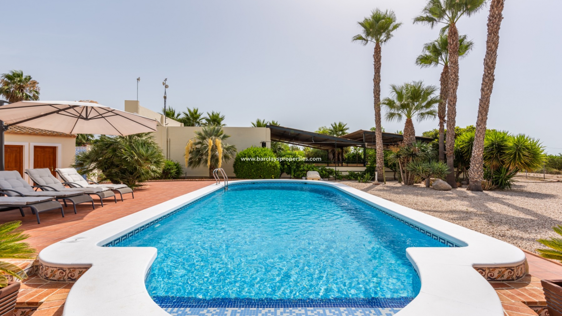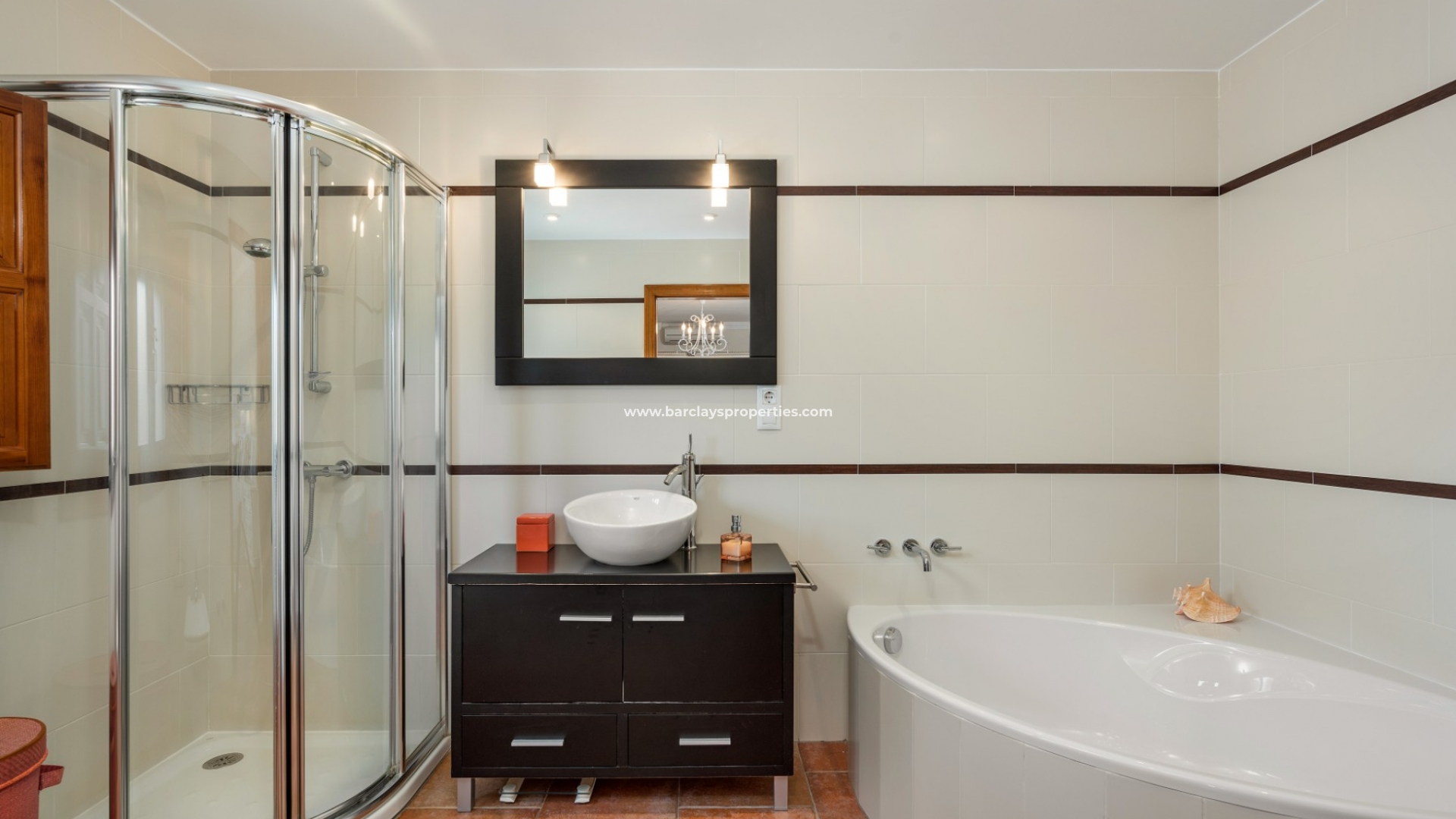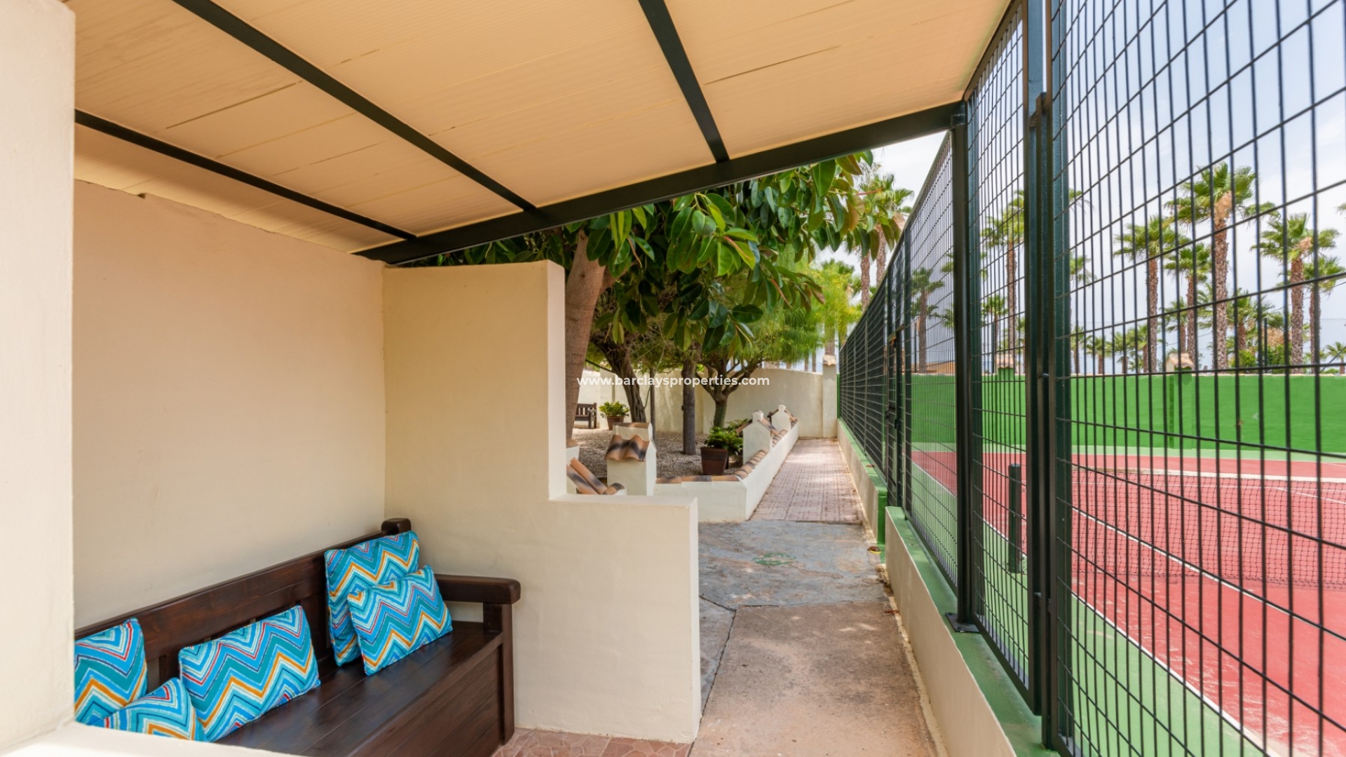 Met trots presenteren wij deze prachtige vrijstaande villa op het platteland nabij de stad Almoradi. Het is slechts vijf minuten rijden naar alle voorzieningen en 40 minuten rijden naar de luchthaven van Alicante. Dit is een prachtige en zeer ruime woning van 370 m2 op een uitzonderlijk groot perceel van 5300 m2 waar men een groot privé 12 x 6 zoutwaterzwembad op het terrein kan vinden, evenals een grote tennisbaan, een toiletgebouw, een schuur en een overdekte voorraadruimte. Daarnaast biedt de aangelegde tuin off-road parking voor diverse voertuigen en een boomgaard met fruitbomen.