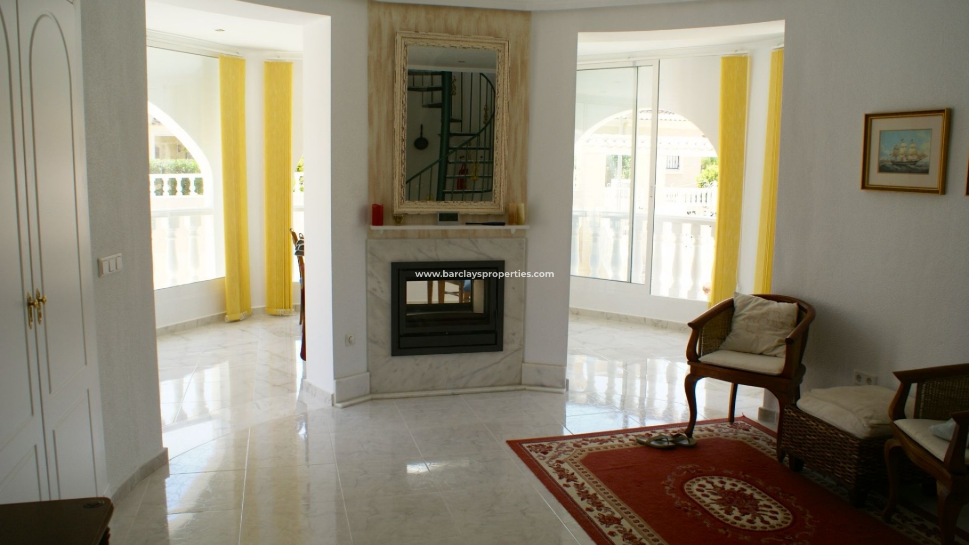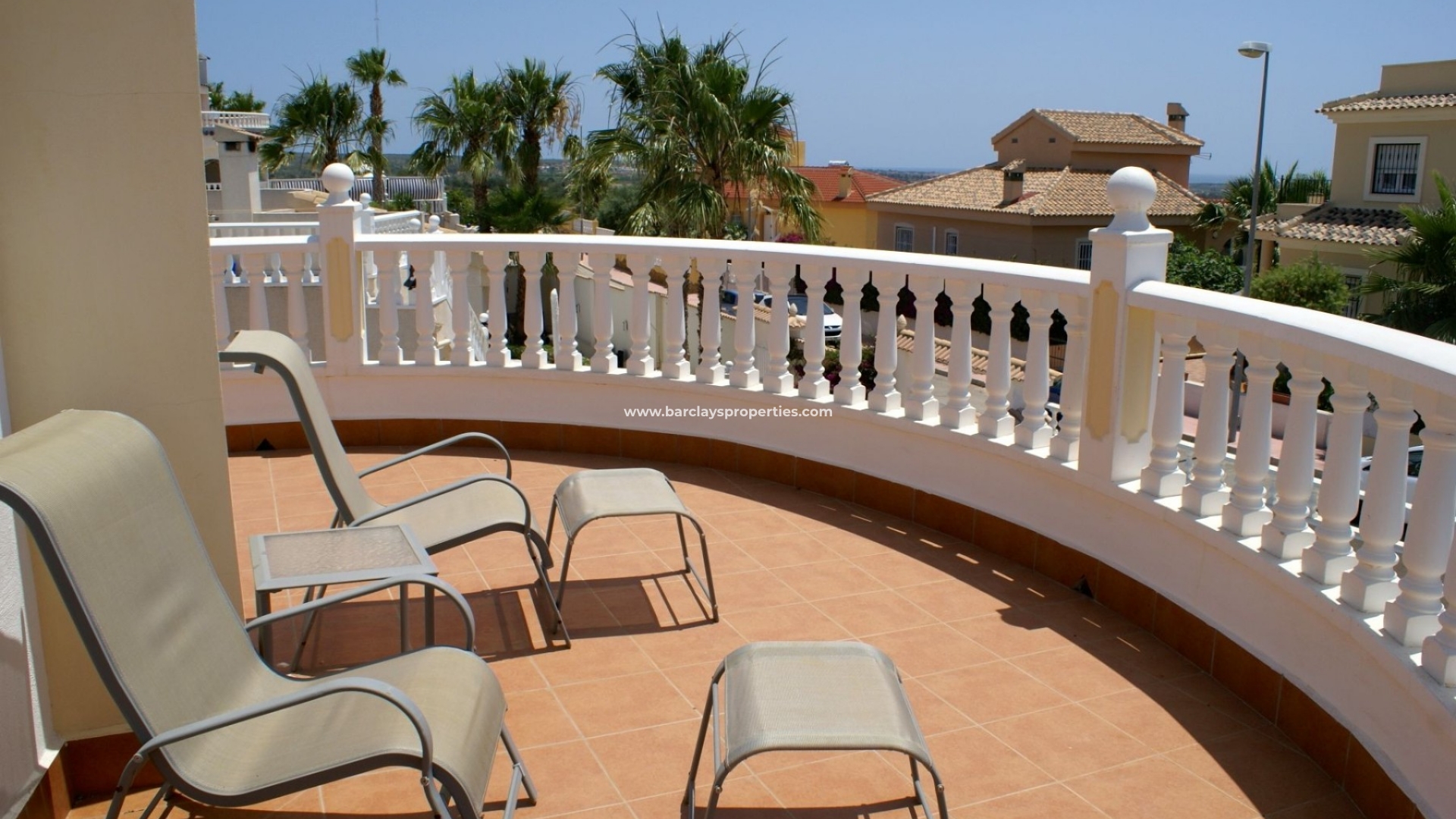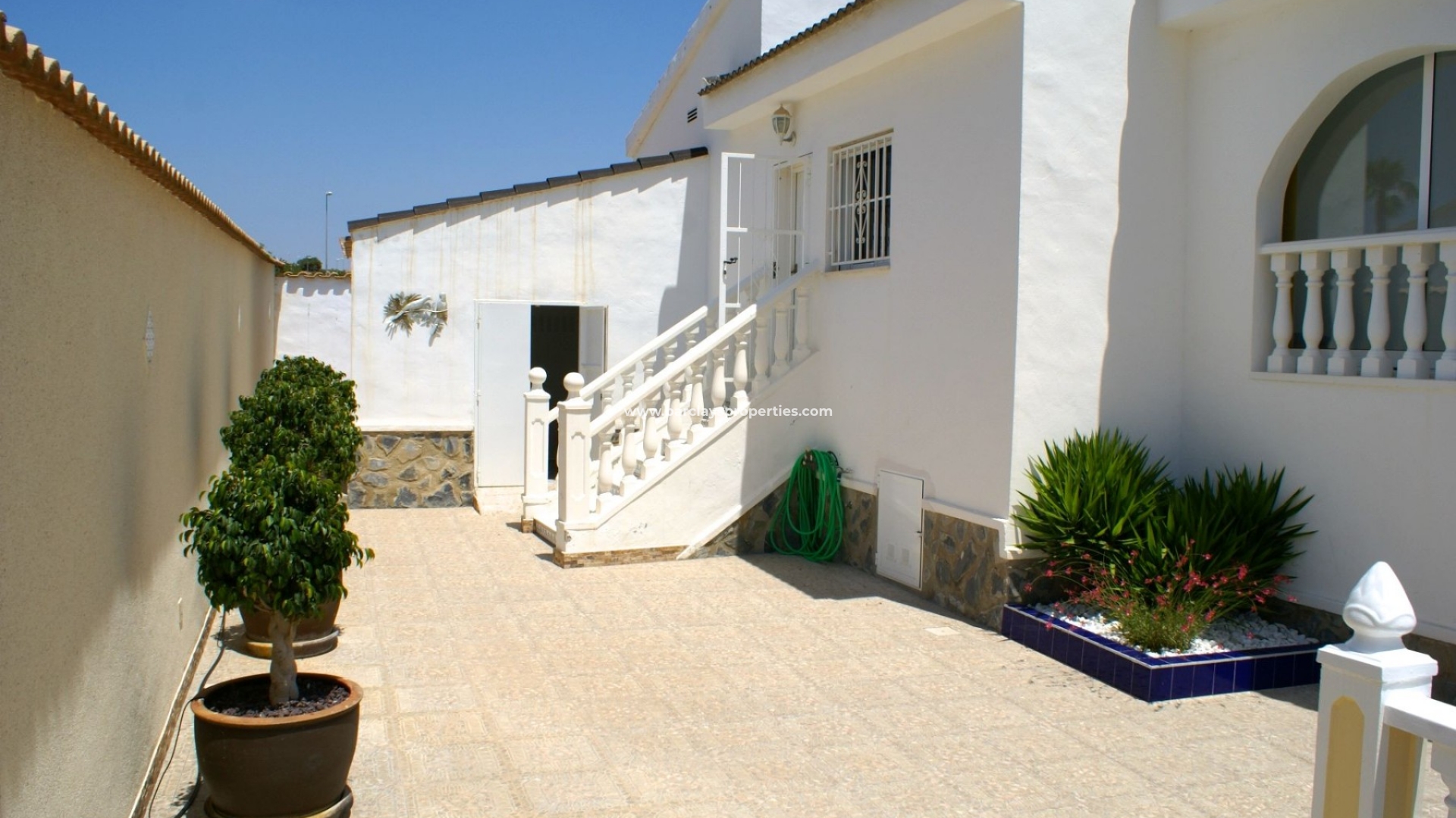 We zijn verheugd om deze grote vrijstaande villa met verwarmd privézwembad te presenteren op een royaal perceel van 600m2 in het Lo Pepin-gebied van Ciudad Quesada. De grote tuin is volledig geasfalteerd en biedt parkeergelegenheid op eigen terrein en veel zitjes aan de buitenkant. Deze prachtige vrijstaande woning is gelegen in een rustige omgeving maar dicht bij voorzieningen die op slechts 5 minuten afstand liggen met een scala aan bars, restaurants, winkels etc. Een 10 minuten rijden brengt u naar het gouden zandstrand van Guardamar del Segura en de omliggende golf. cursussen en de dichtstbijzijnde luchthaven van Alicante ligt op slechts 35 minuten rijden!