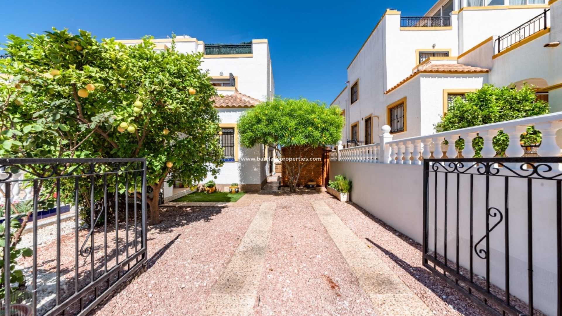 Een verzorgde tuin verwelkomt u, met off-road parking, een prachtige citroenboom, een scala aan planten en een berging.