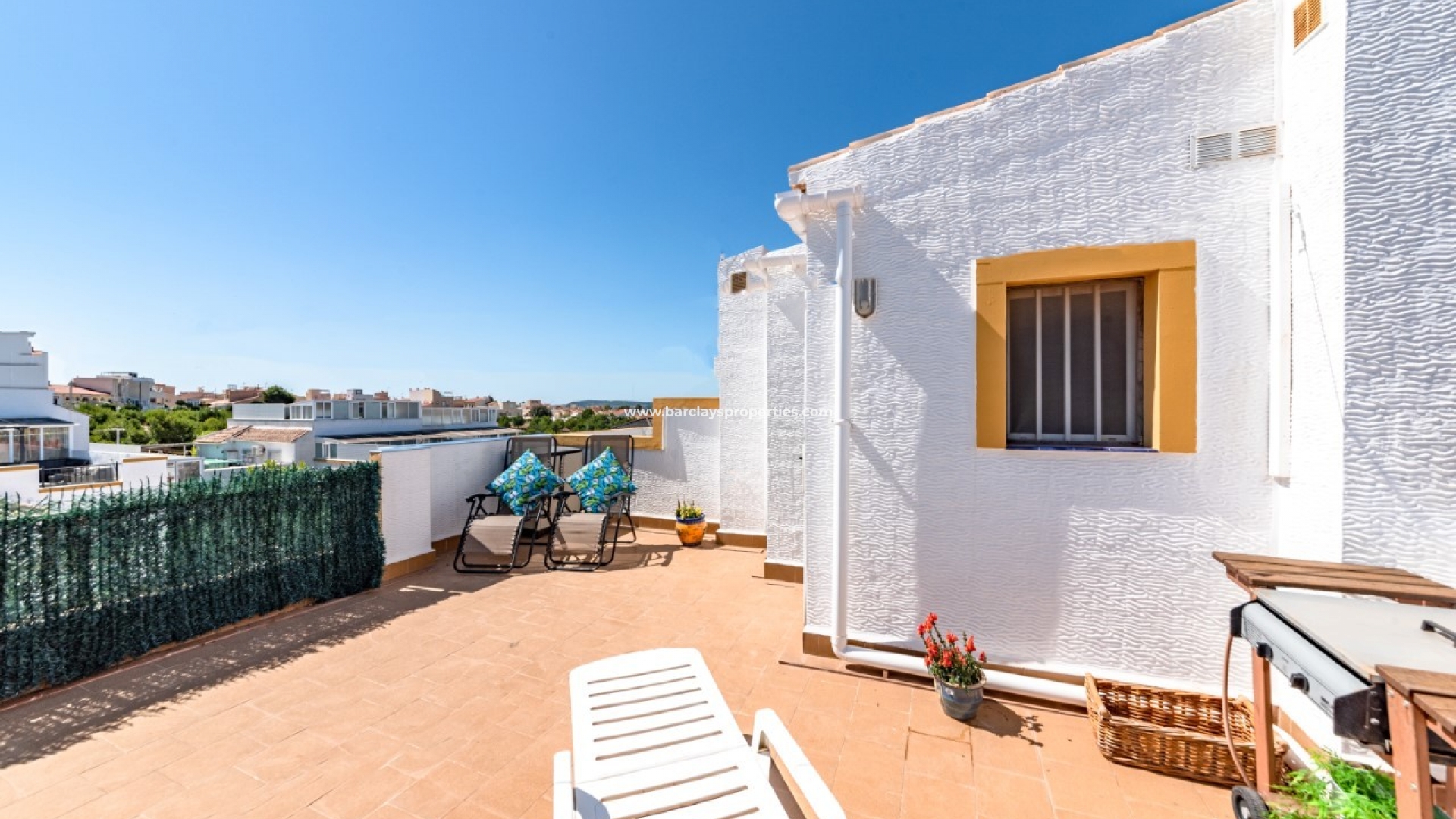 Deze onberispelijke woning op het oosten ligt op slechts een paar minuten lopen van het dichtstbijzijnde commerciële gebied waar u de plaatselijke dokterspraktijk, toeristische informatie, sociaal centrum, banken, supermarkt, opticiens, dierenartsen, winkels en een scala aan bars en restaurants vindt die bij u passen alle. De prachtige gouden stranden van La Marina liggen op slechts vijf minuten rijden.