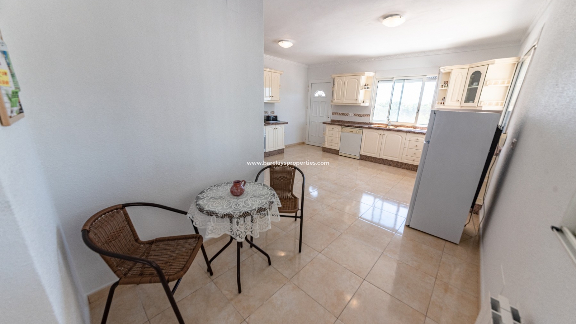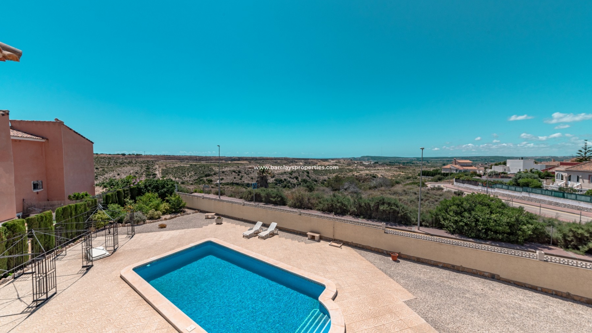 Gelegen in urbanisatie La Escuera is deze prachtige vrijstaande vrijstaande villa te koop met prachtig uitzicht op zee. Deze prachtige, ruime villa ligt op een groot hoekperceel van ongeveer 960m2 en biedt een verharde tuin voor weinig onderhoud, evenals een privézwembad van 11 x 5, een privégarage en een buitendouche. Voorzieningen zijn te vinden op slechts een paar minuten rijden of als u liever loopt, dan is dat slechts 10 minuten lopen. Deze vrijstaande villa is perfect gelegen in een rustige urbanisatie met de prachtige gouden stranden van het dorp La Marina op slechts 5 minuten rijden met de auto.