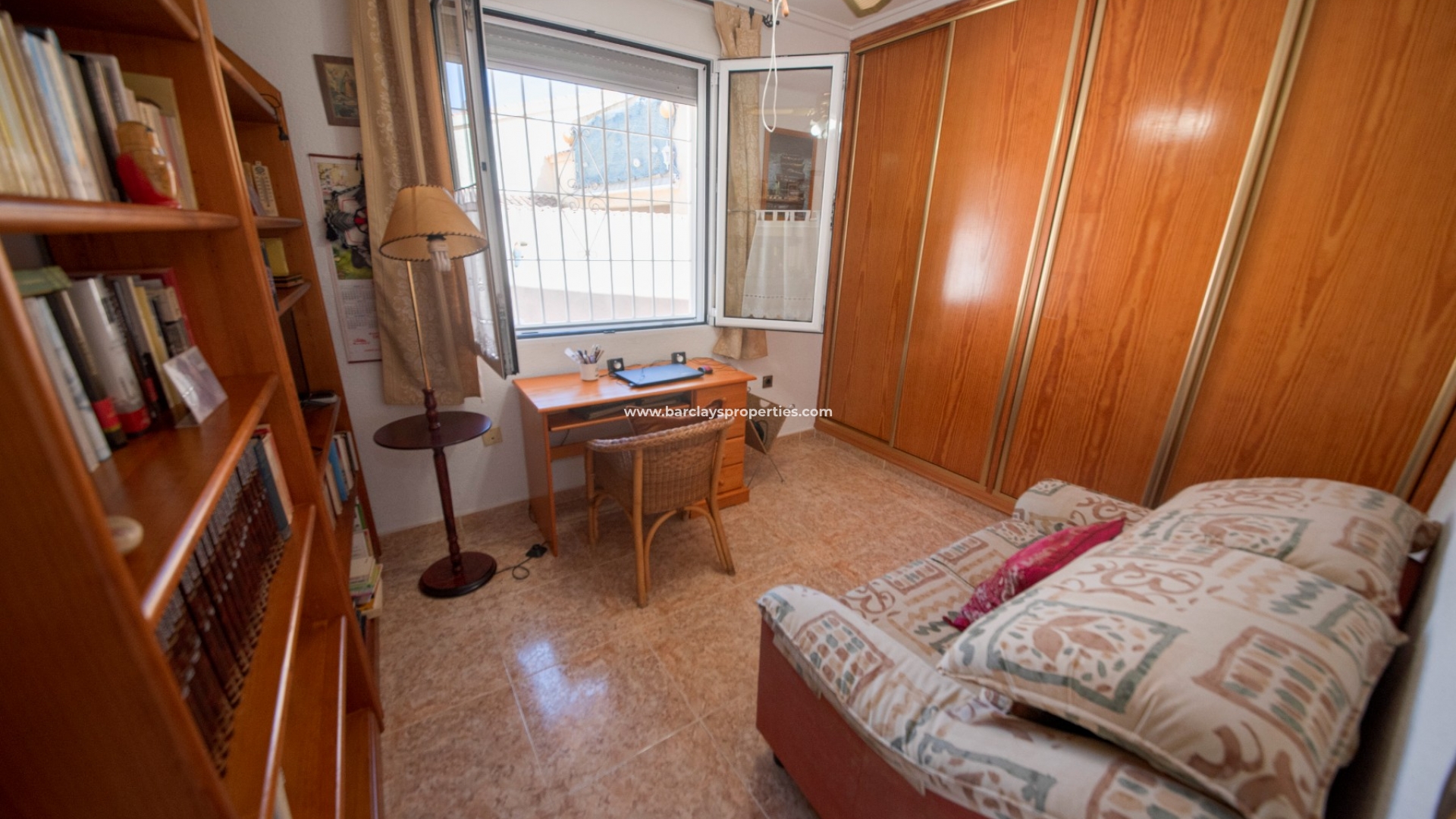 De aantrekkelijke tuin is volledig betegeld voor weinig onderhoud voor de gelukkige nieuwe eigenaar en beschikt over een oprit voor off-road parking en een eigen garage. Het overdekte terras aan de voorzijde leidt naar het interieur van het pand waar we een omsloten glazen terras vinden dat wordt gebruikt als zomer- / winterkamer, een ruime en lichte uitgebouwde woonkamer met open eetkamer, een aparte, grote volledig ingerichte keuken met uitgebreide werkoppervlakken als evenals voldoende opbergruimte. Een toegangsdeur leidt vanuit de keuken naar de achtertuin. De drie slaapkamers zijn van een goede grootte, de hoofdslaapkamer biedt veel opbergruimte met ingebouwde spiegelkasten en airconditioning, de tweede slaapkamer is een tweepersoonskamer met twee eenpersoonsbedden met grote kledingkast en airconditioning, de derde tweepersoonskamer biedt inbouwkasten en een plafondventilator en wordt momenteel gebruikt als studie. De twee badkamers zoals bij alle kamers in dit charmante pand zijn ruim, badkamer 1 anbiedingen een groot bad en opbergruimte en badkamer 2 heeft een inloopdouche met scherm. Naast het indrukwekkende interieur van deze prachtige villa vinden we een buitentrap die leidt naar het solarium met een prachtig uitzicht op het platteland van de Vega Baja. Er is een berging onder de trap en het solarium herbergt een berging met houten balkenplafond die als kantoor gebruikt zou kunnen worden.