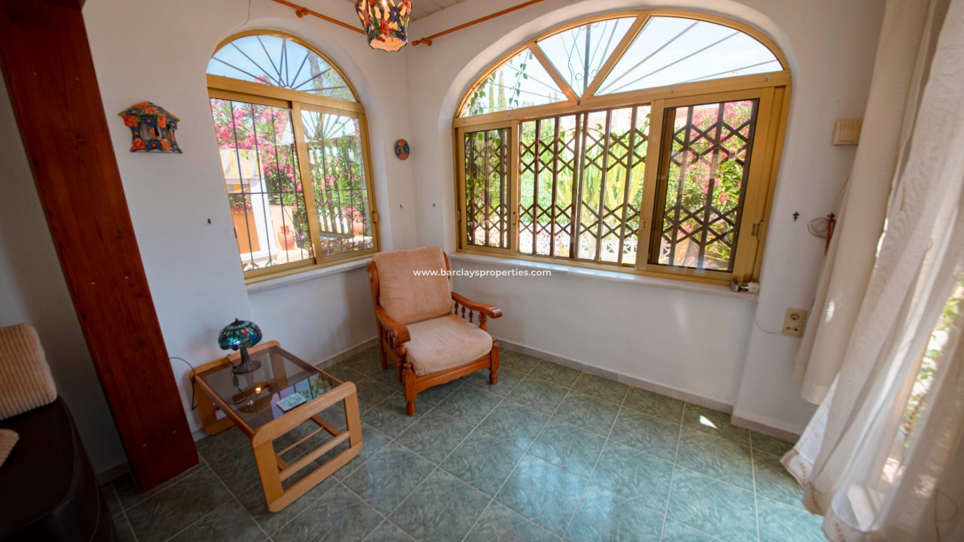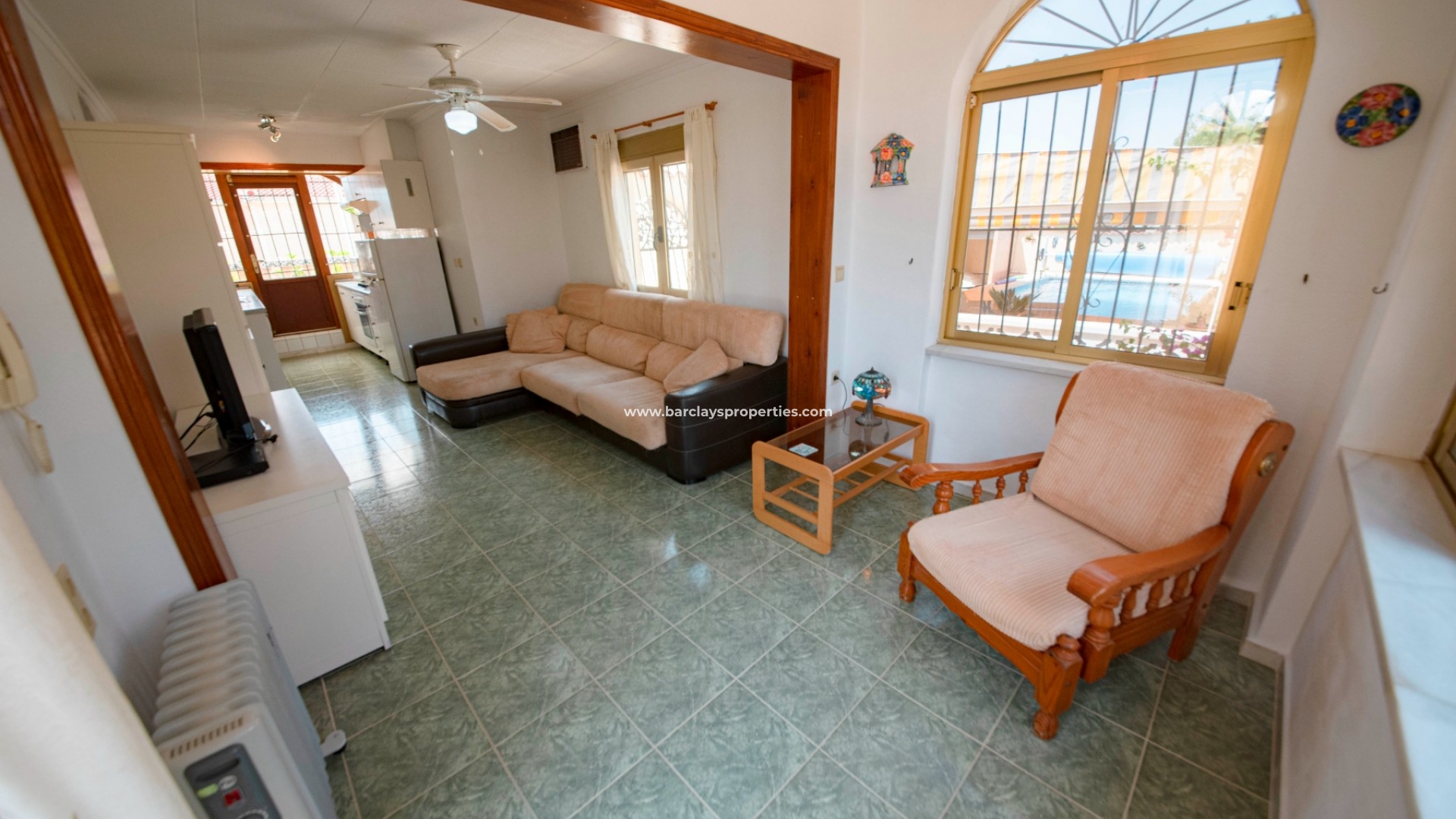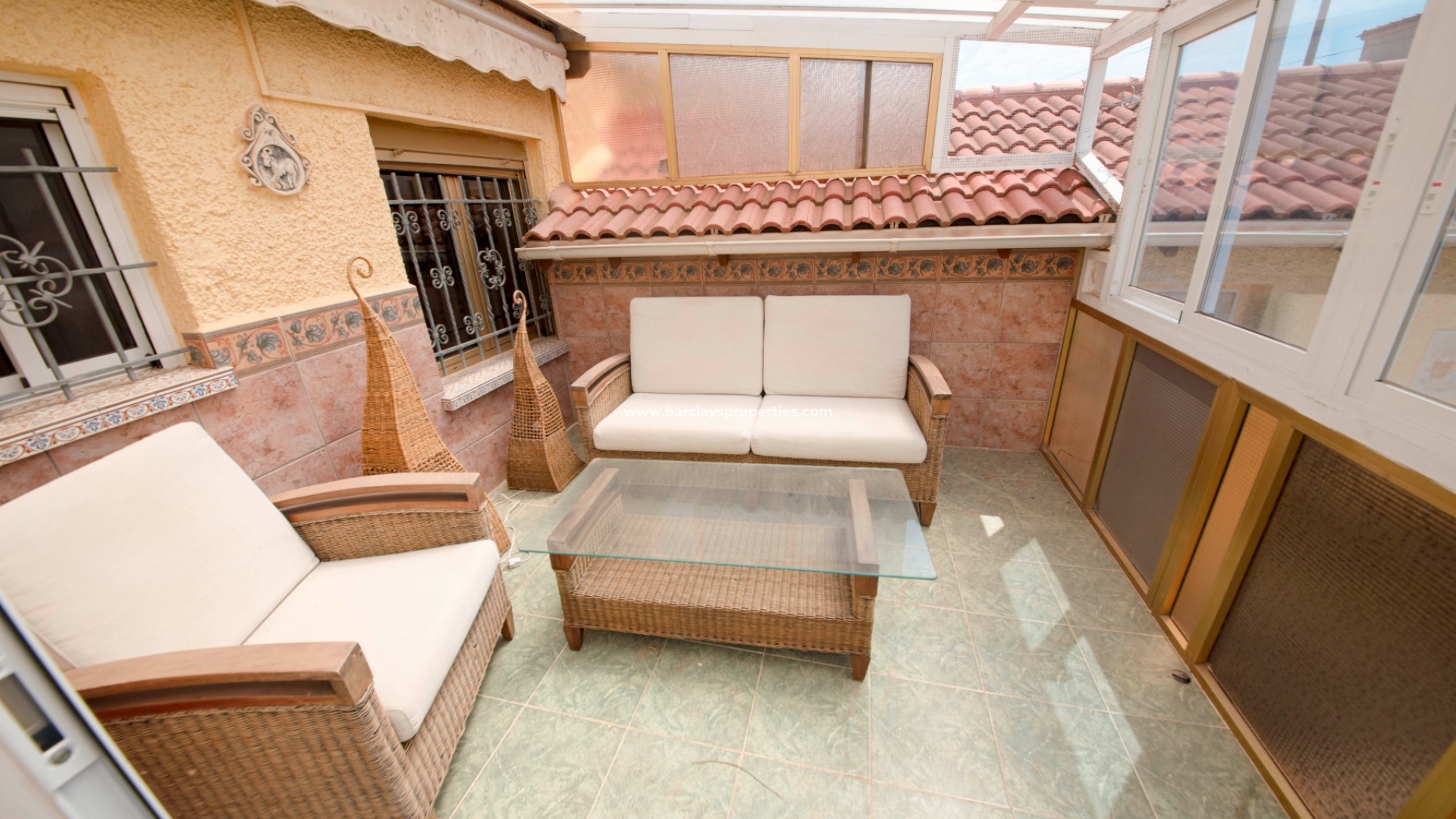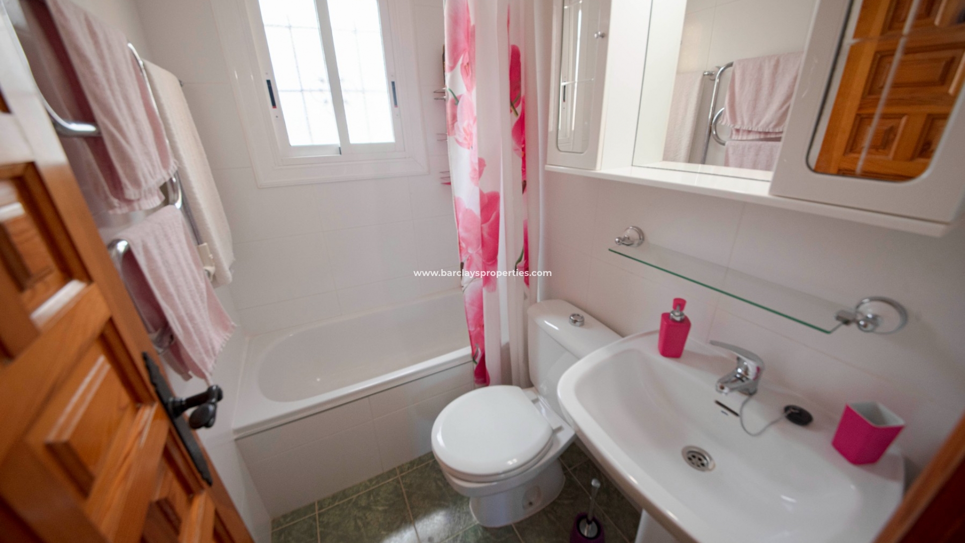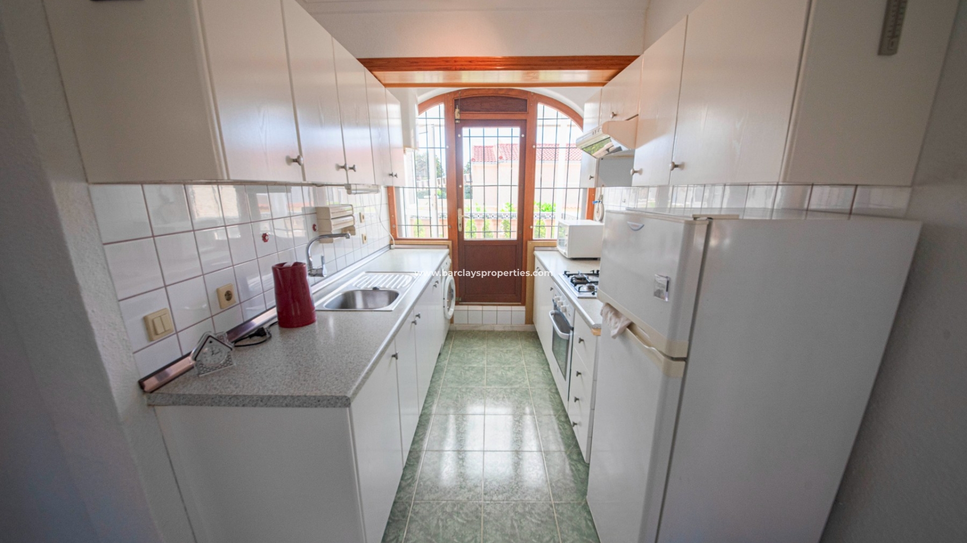 Wonen is gemakkelijk met de accommodatie op één verdieping met een omheind zonneterras, een lichte en luchtige woonkamer / eetkamer, een open keuken, twee slaapkamers met kasten, de master heeft een aparte kleedkamer (die kan worden gebruikt als derde slaapkamer) en er is ook een badkamer met ligbad.