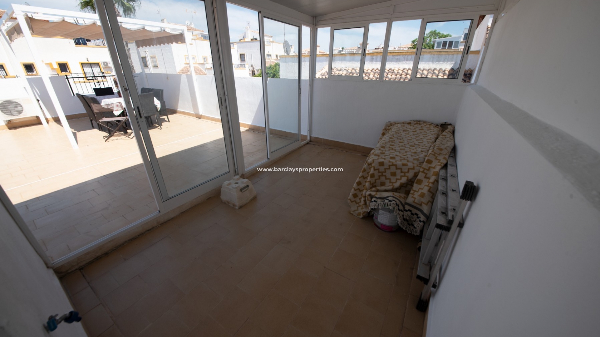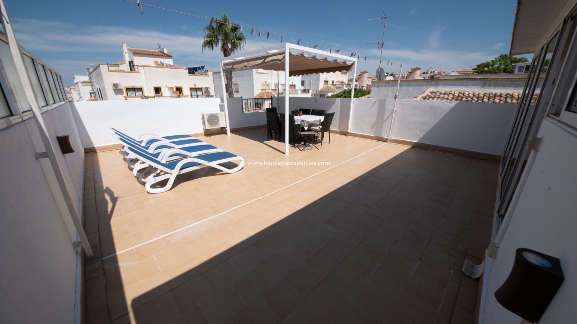 Met trots introduceren wij deze EXCLUSIEVE quad villa, een model "Julia" welke is gelegen in een besloten gemeenschap binnen urbanisatie La Marina. Deze woning op het westen ligt dicht bij het gemeenschappelijk zwembad, perfect voor enthousiaste zwemmers of vakantiegasten om het hele jaar door gebruik te maken van dit grote zwembad en de tuin. Het pand ligt op slechts 10 minuten lopen van het populaire commerciële gebied Consum Square met supermarkt, winkels en een scala aan bars en restaurants met internationale gerechten voor elk wat wils.