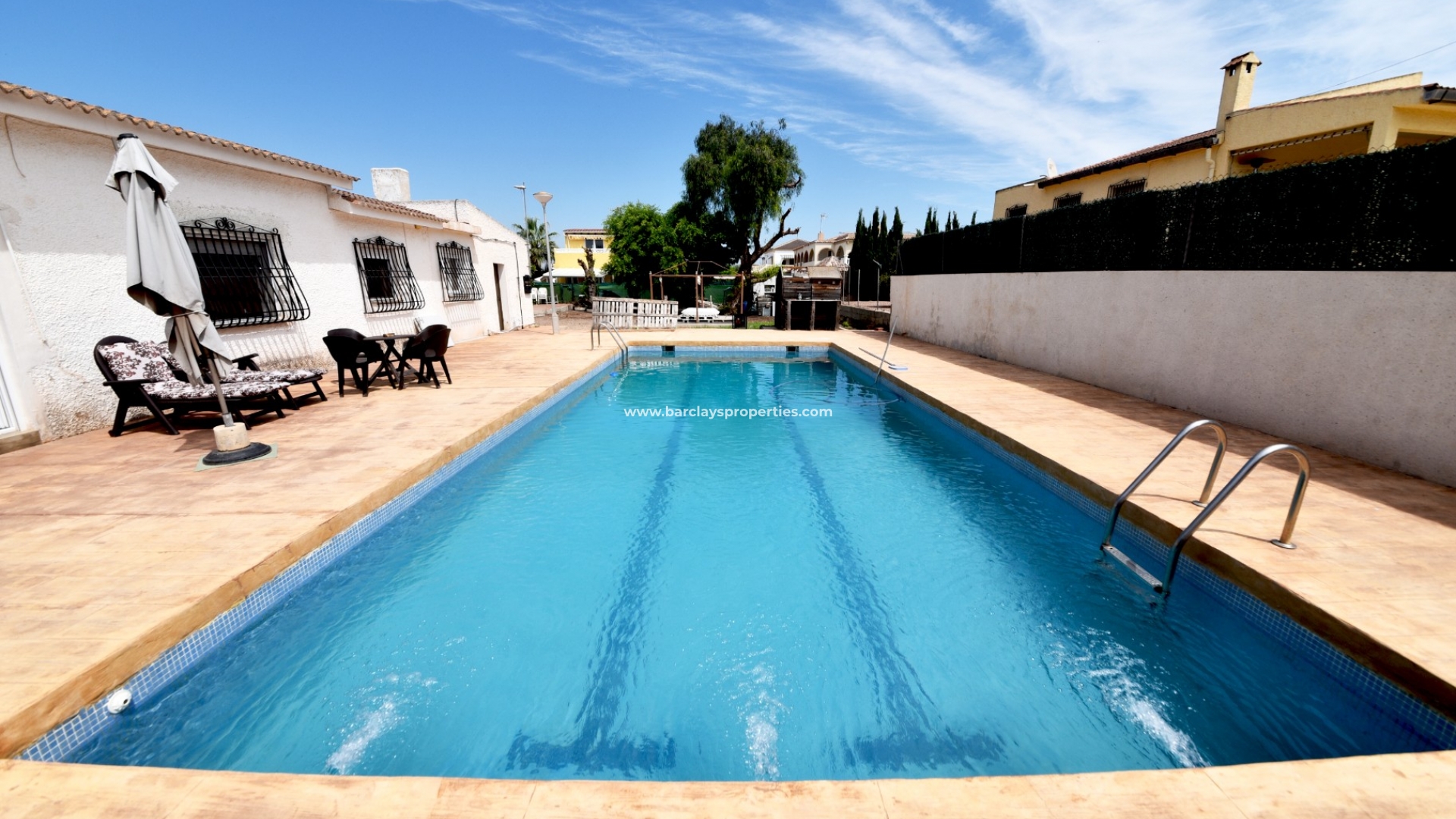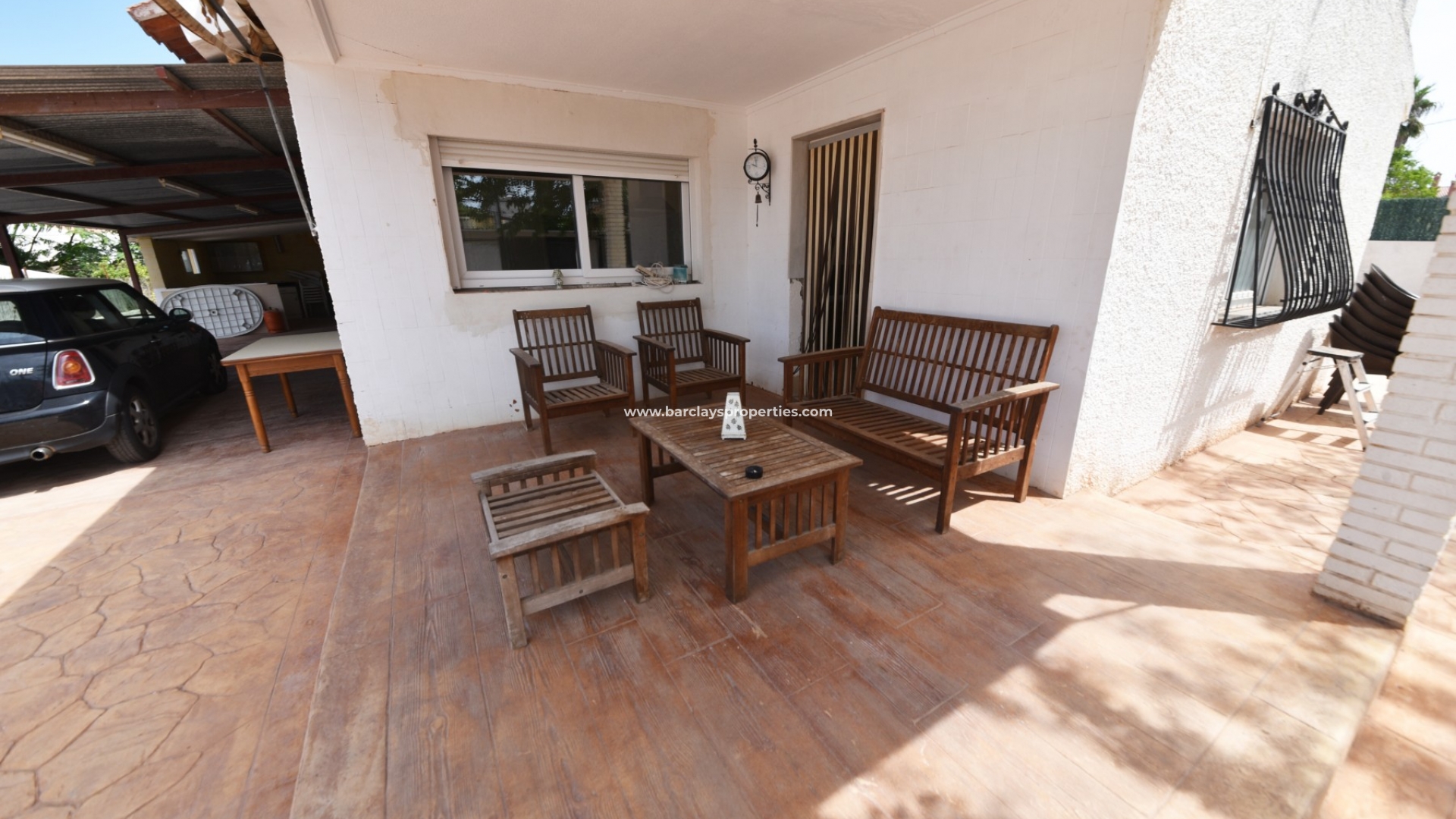 Introductie van deze op maat gemaakte vrijstaande woning gelegen in een rustige wijk van de urbanisatie El Oasis, direct naast de urbanisatie La Marina, op slechts 10 minuten lopen van het commerciële gebied met een supermarkt, een scala aan bars en restaurants, dierenartsen, opticiens, apotheek, dokterspraktijk enz Deze villa op het westen ligt op een groot, vlak perceel van 1200 m2 met een privézwembad van 11 x 5, off-road parking met carport, twee bergingen, zitgedeeltes aan de buitenkant, een ruime buitenkeuken met barbecue en een exterieur moderne badkamer met muur tot muur douche.