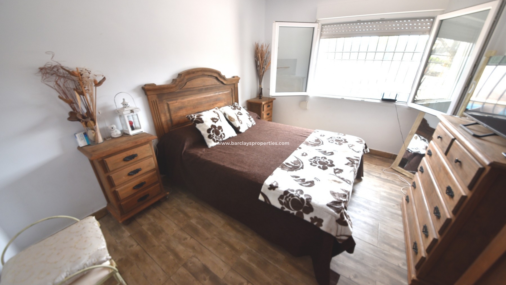 De privé, ruime tuin is geplaveid en met grind voor weinig onderhoud en biedt vele zitjes en het grote zwembad waar men kan genieten van het buitenleven in het warme Spaanse klimaat hier aan de Costa Blanca.