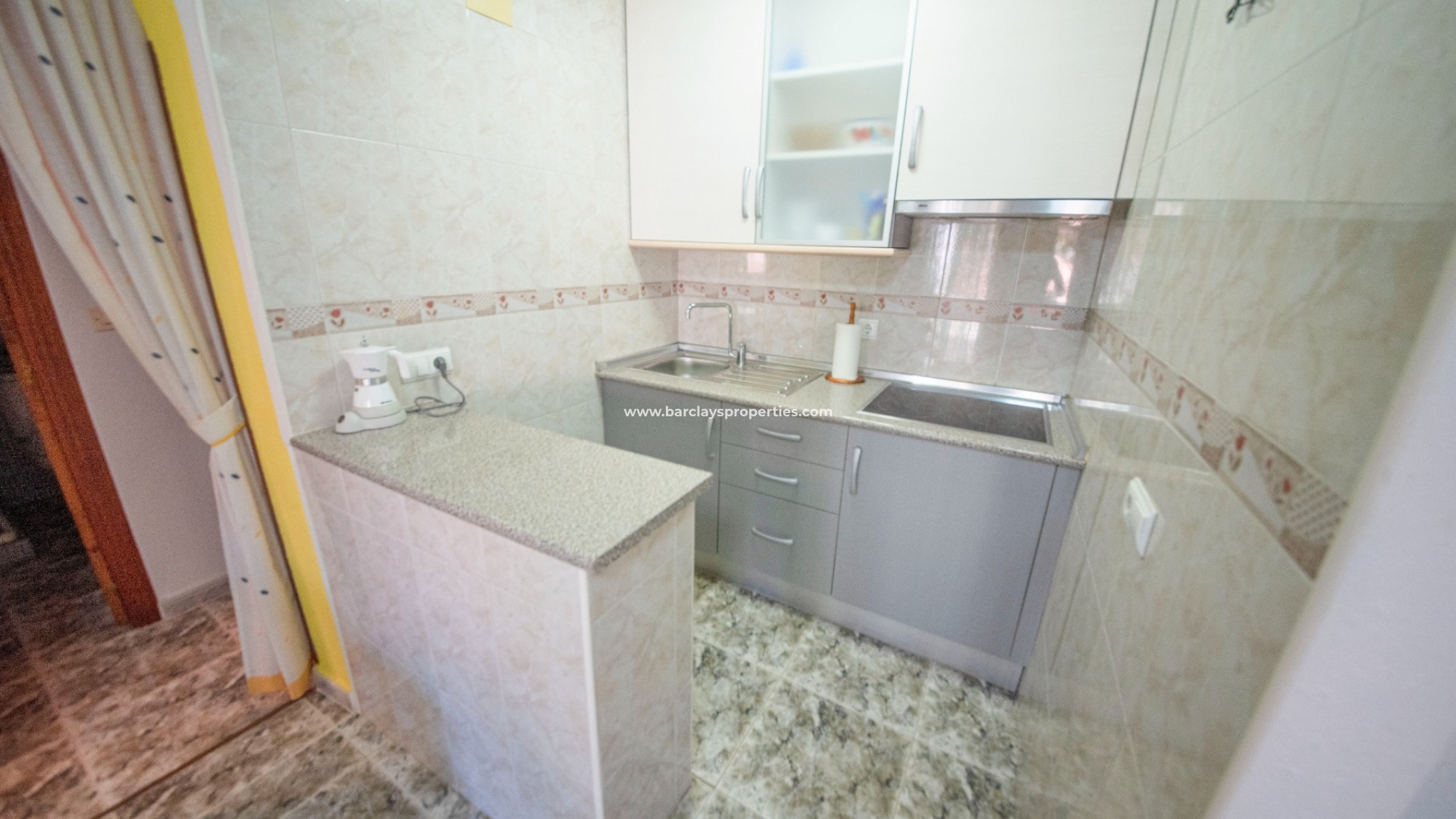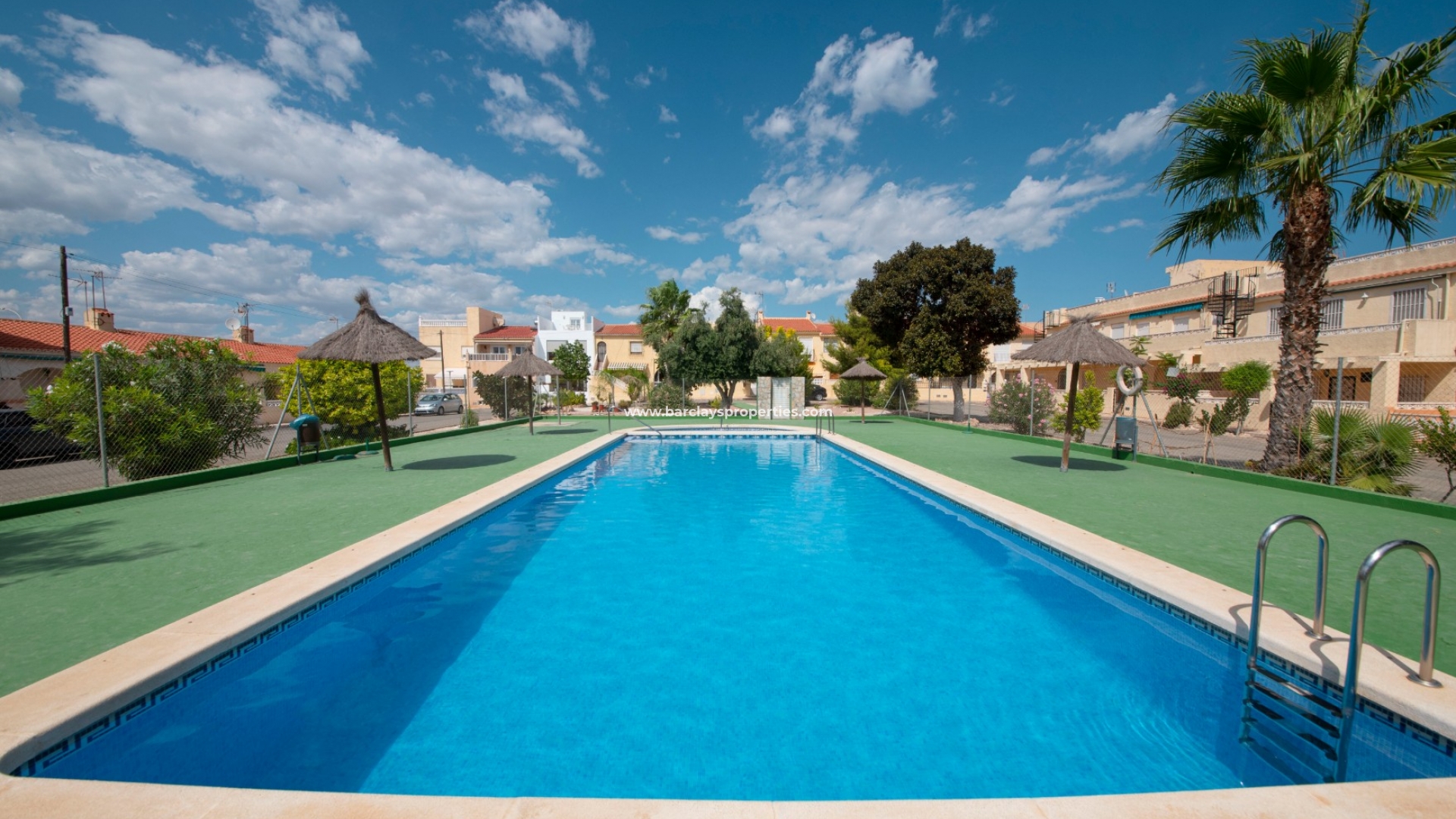 Deze unieke geschakelde woning maakt deel uit van een kleine privégemeenschap, waardoor u de mogelijkheid heeft om lid te worden om gebruik te kunnen maken van het prachtige gemeenschappelijke zwembad dat recht tegenover deze woning is gelegen! Bij binnenkomst van het pand ziet u dat het bestaat uit een ruim frontaal zonneterras met een decoratieve tuinrand en zonneluifel ideaal voor extra schaduw wanneer u "al fresco" eet, een woon/eetkamer met een aangrenzende gerenoveerde keuken, 3 tweepersoons slaapkamers en een badkamer met inloopdouche. Aan de achterzijde van het pand vinden we ook een zonnig terras op het zuiden.