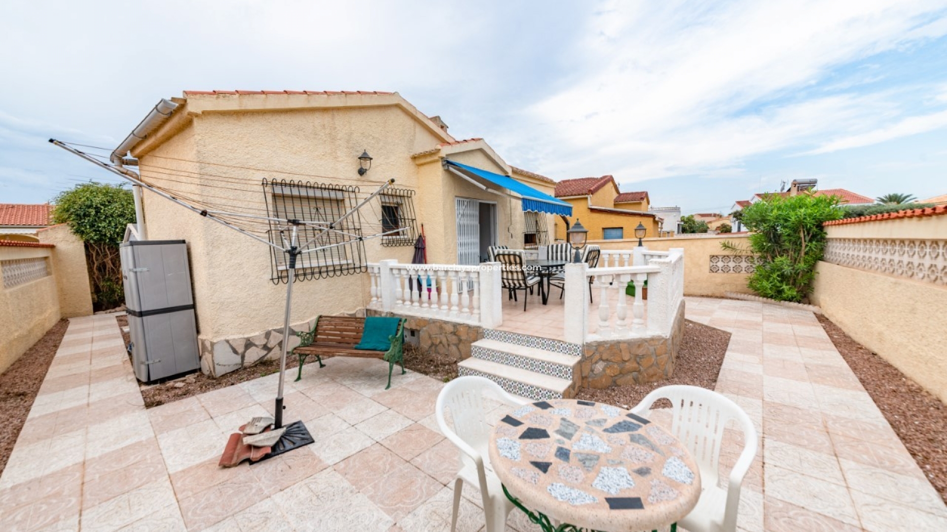 Deze prachtige vrijstaande villa op het zuiden is gelegen in het hart van La Marina, met alle voordelen van dichtbij alles wat u nodig heeft, maar zonder er tussen te hoeven wonen! Gelegen op een ruim hoekperceel, bieden de gemakkelijk te onderhouden tuinen off-road parking met een carport, een zonneterras voor en achter, een stenen barbecue, bergingen en voldoende ruimte om uw eigen privézwembad te vinden, indien nodig.