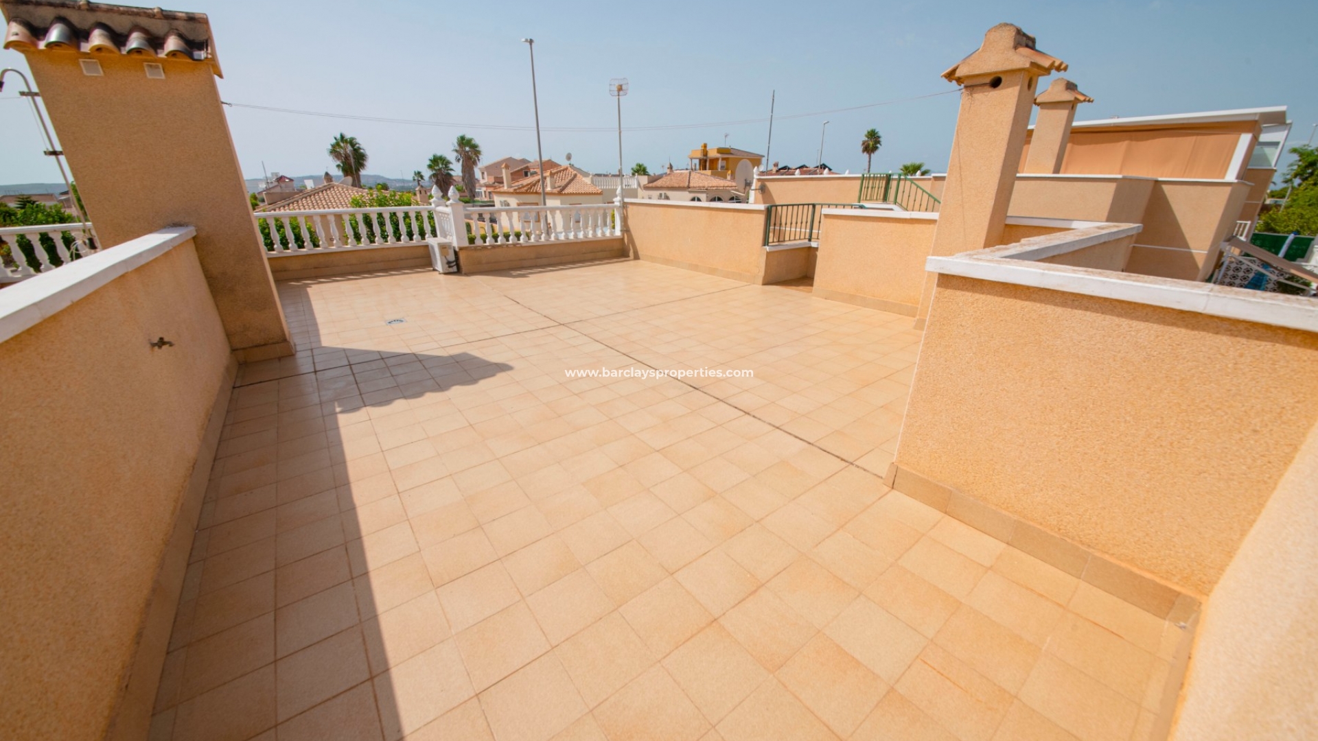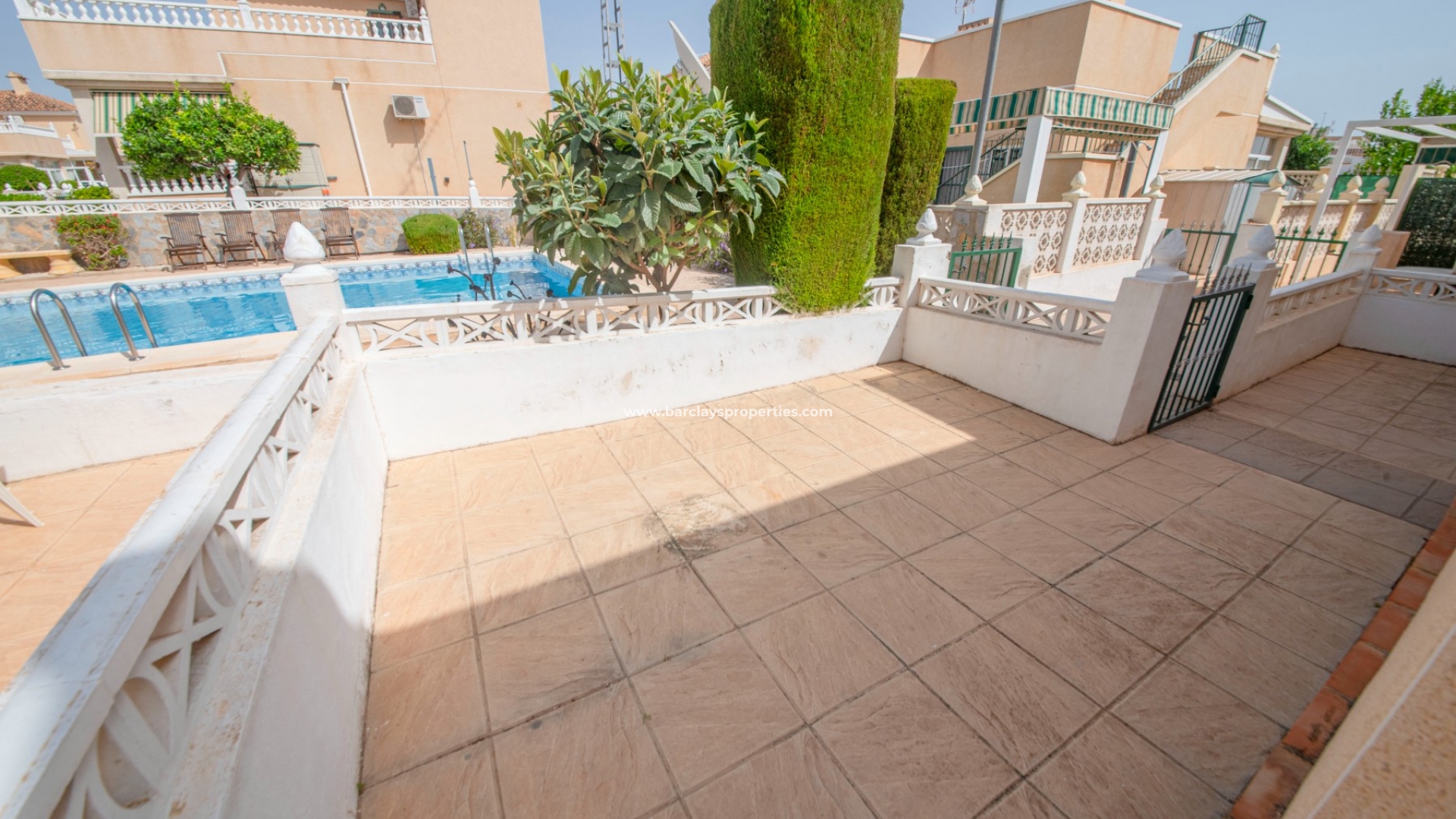EXCLUSIEF de introductie van dit prachtige twee onder een kap gelegen in de urbanisatie El Oasis-La Marina, San Fulgencio. Deze mooie woning is gelegen in een rustige gemeenschap en heeft toegang tot een prachtig gemeenschappelijk zwembad, maar het voelt alsof het uw eigen privézwembad is, aangezien het toegankelijk is via de achterste tuinpoort, zo dicht bij het pand.