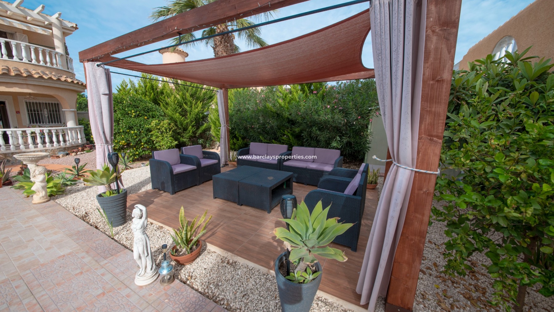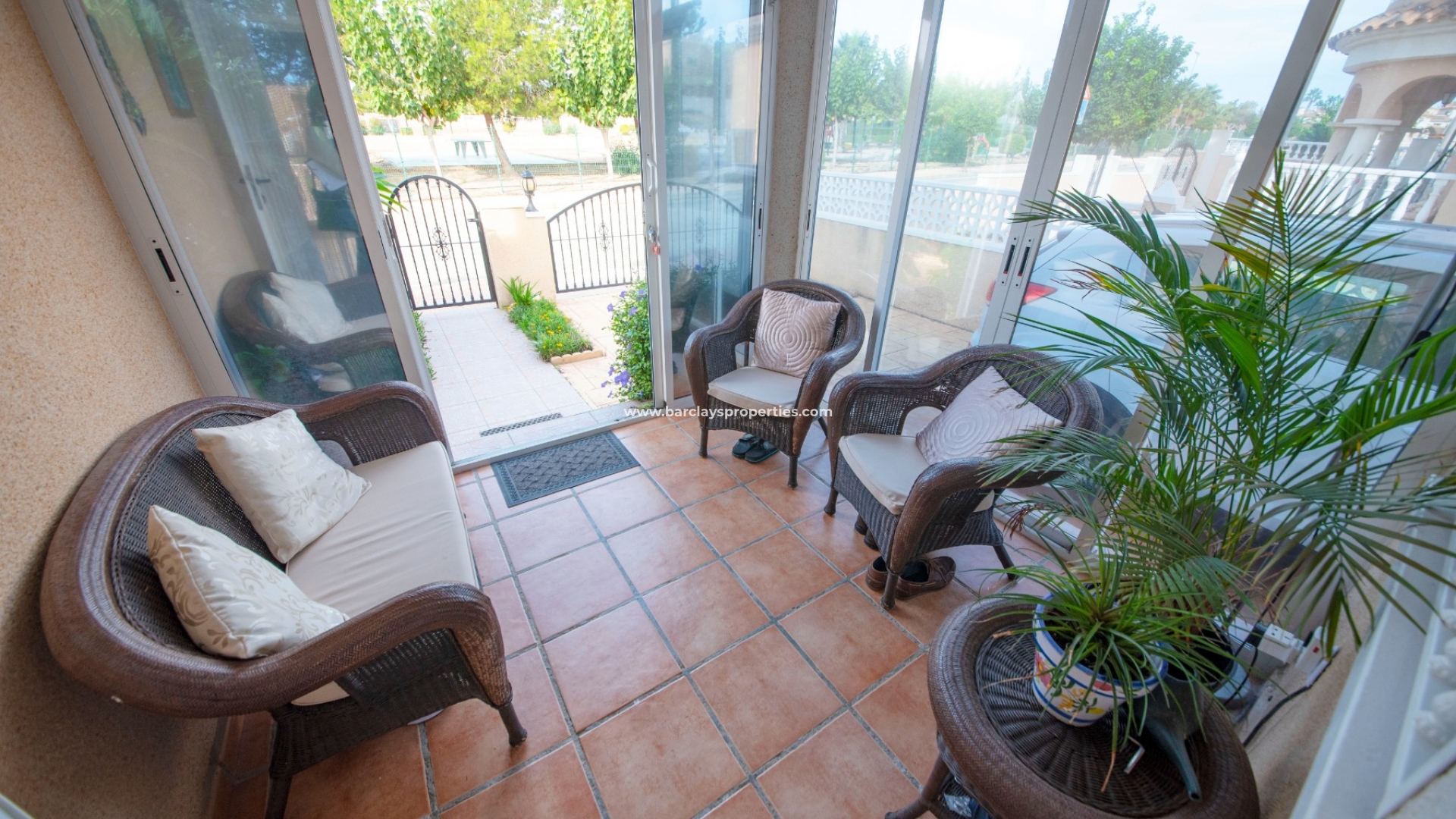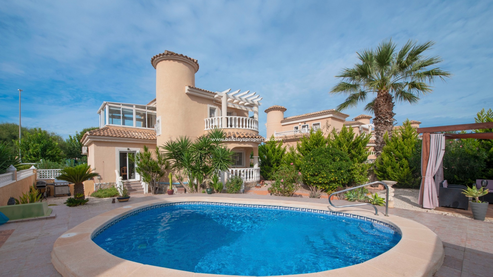 EXCLUSIEF en met trots introduceren we deze prachtige grote vrijstaande villa, gelegen in de immer populaire urbanisatie La Marina, San Fulgencio. Voor sportliefhebbers is deze villa perfect gelegen nabij goed onderhouden tennisbanen, padelbanen, tafeltennis, voetbal, buitengymnastiek en kinderspeelpark. De populaire commerciële wijk Consum Square met supermarkten, winkels en een scala aan bars, restaurants en cafés ligt op slechts 5 minuten lopen van de accommodatie.