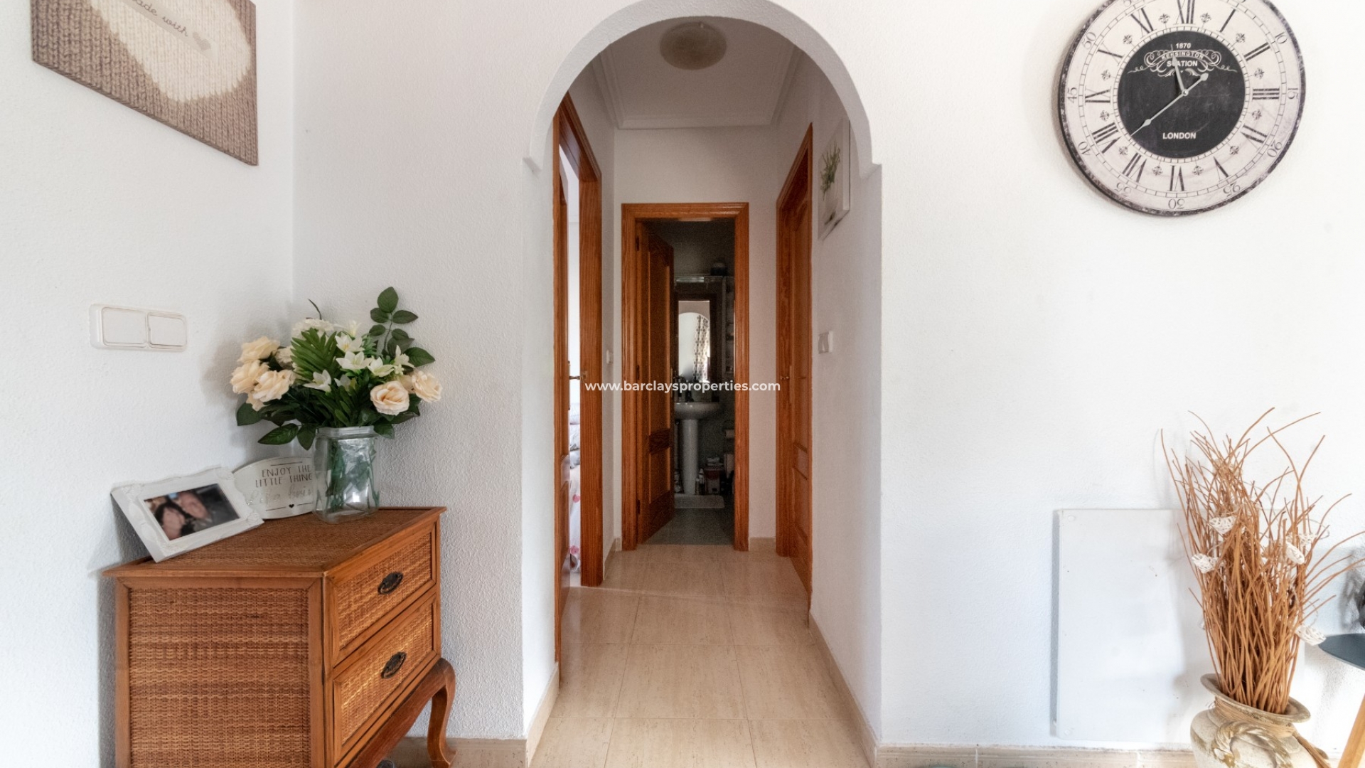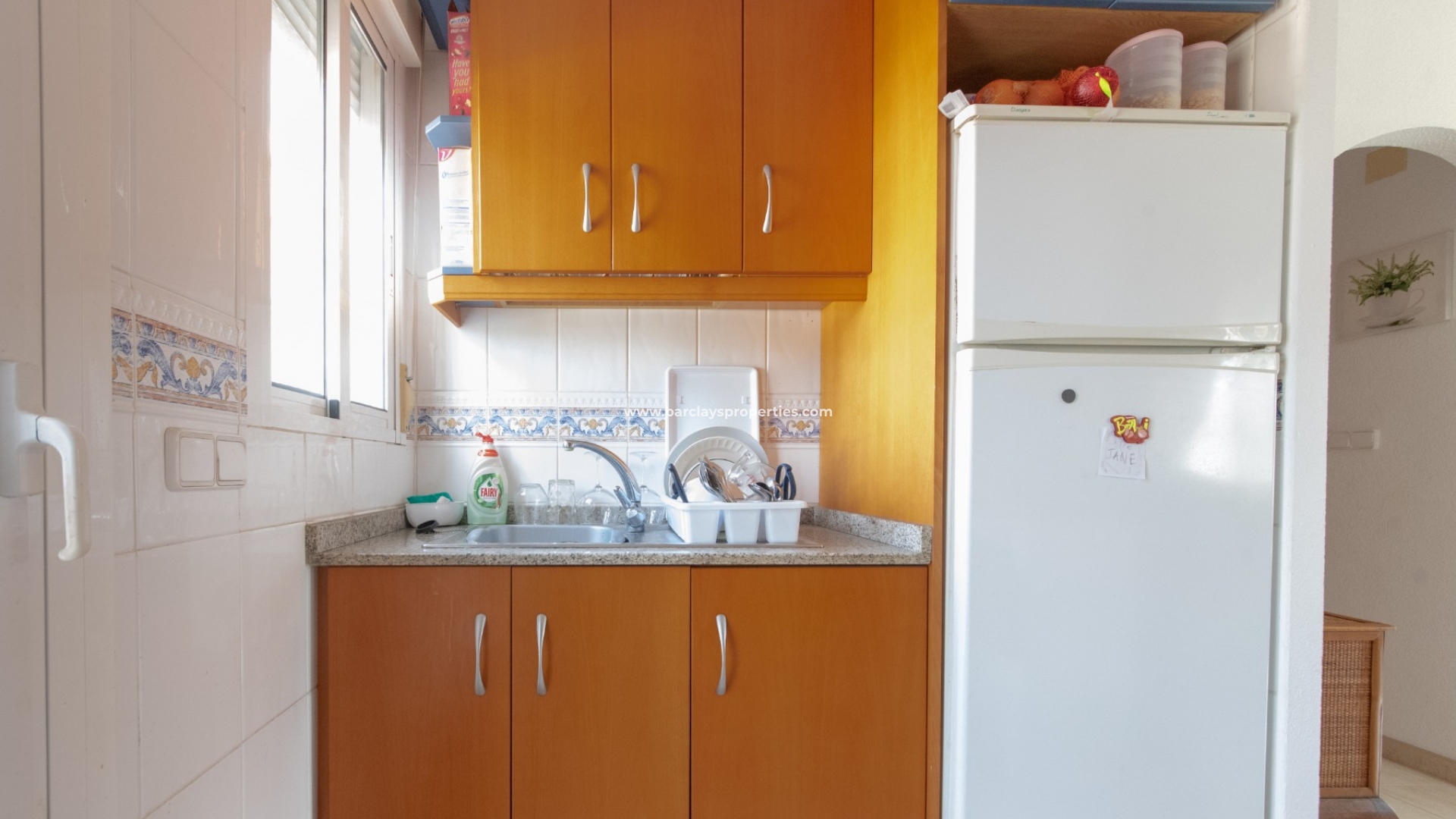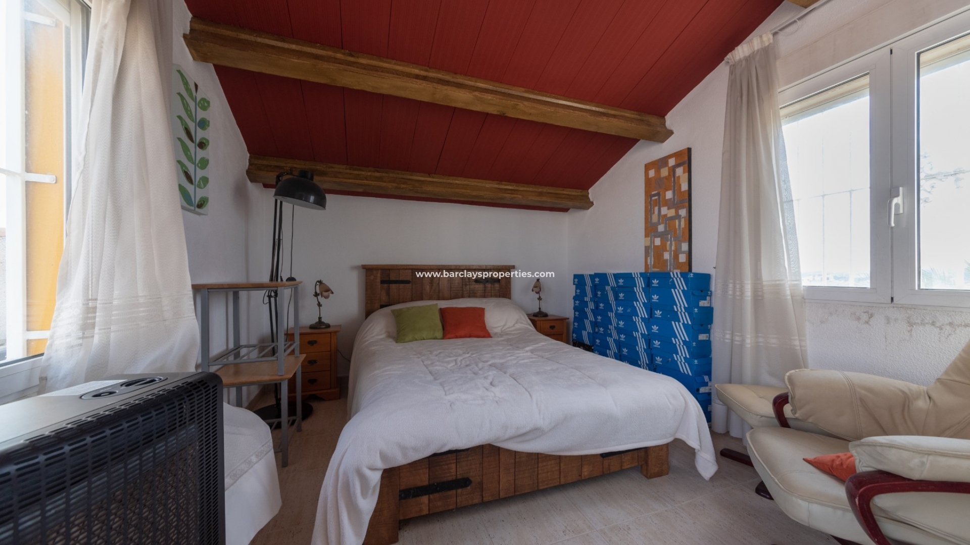 De achtertuin biedt een zit/barbecue aan de buitenzijde, opslagfaciliteiten, toegang tot het gemeenschappelijke zwembad en een buitentrap die leidt naar het solarium en een derde slaapkamer met tweepersoonsbed en een tweede badkamer met hoekdouche, een ideale plek voor gasten. Het solarium heeft opslagruimte en is het perfecte toevluchtsoord om de prachtige zonsondergangen over de bergen hier aan de Costa Blanca te bekijken.
