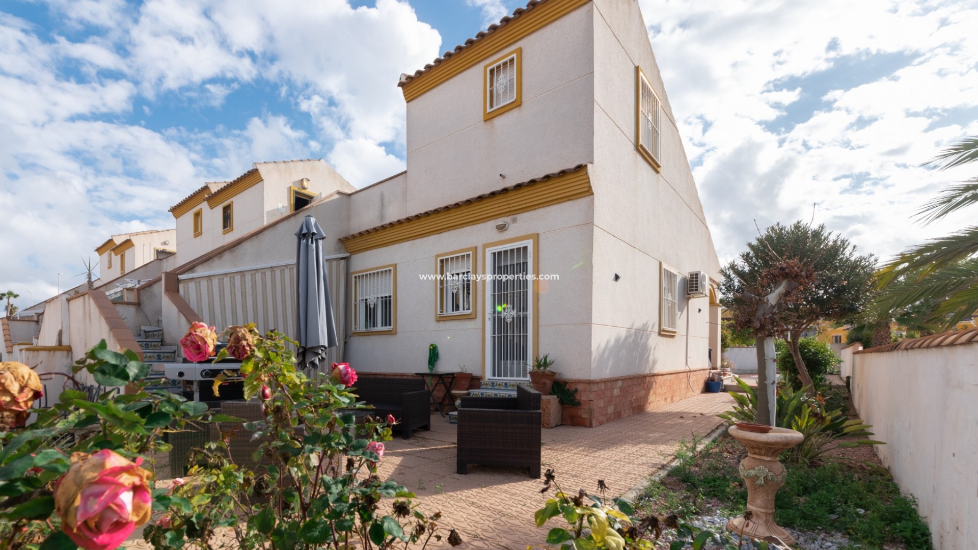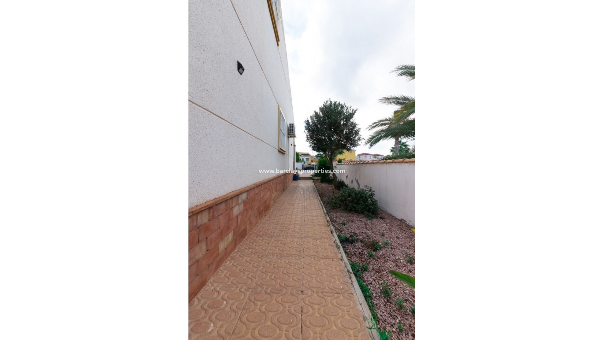 Gelegen in een privégemeenschap van 17 woningen, vinden we deze prachtige hoekwoning, een model "Monte Victoria" dat het voordeel heeft dat het slechts een paar minuten lopen is naar de commerciële zone van "Monte Victoria", die een breed scala aan bars biedt , cafés en restaurants, evenals een artsenpraktijk, VVV-kantoor, supermarkt, dierenartsenpraktijk, opticiens, podologen en apotheek. Bovendien liggen de prachtige, gouden stranden van het dorp La Marina op slechts 3 km afstand, perfect voor een ontspannen, rustige dag terwijl u meer dan 300 dagen per jaar van de zon geniet. Voor een bezoek aan familie en vrienden is de dichtstbijzijnde luchthaven van Alicante-Elche slechts 25 minuten rijden.