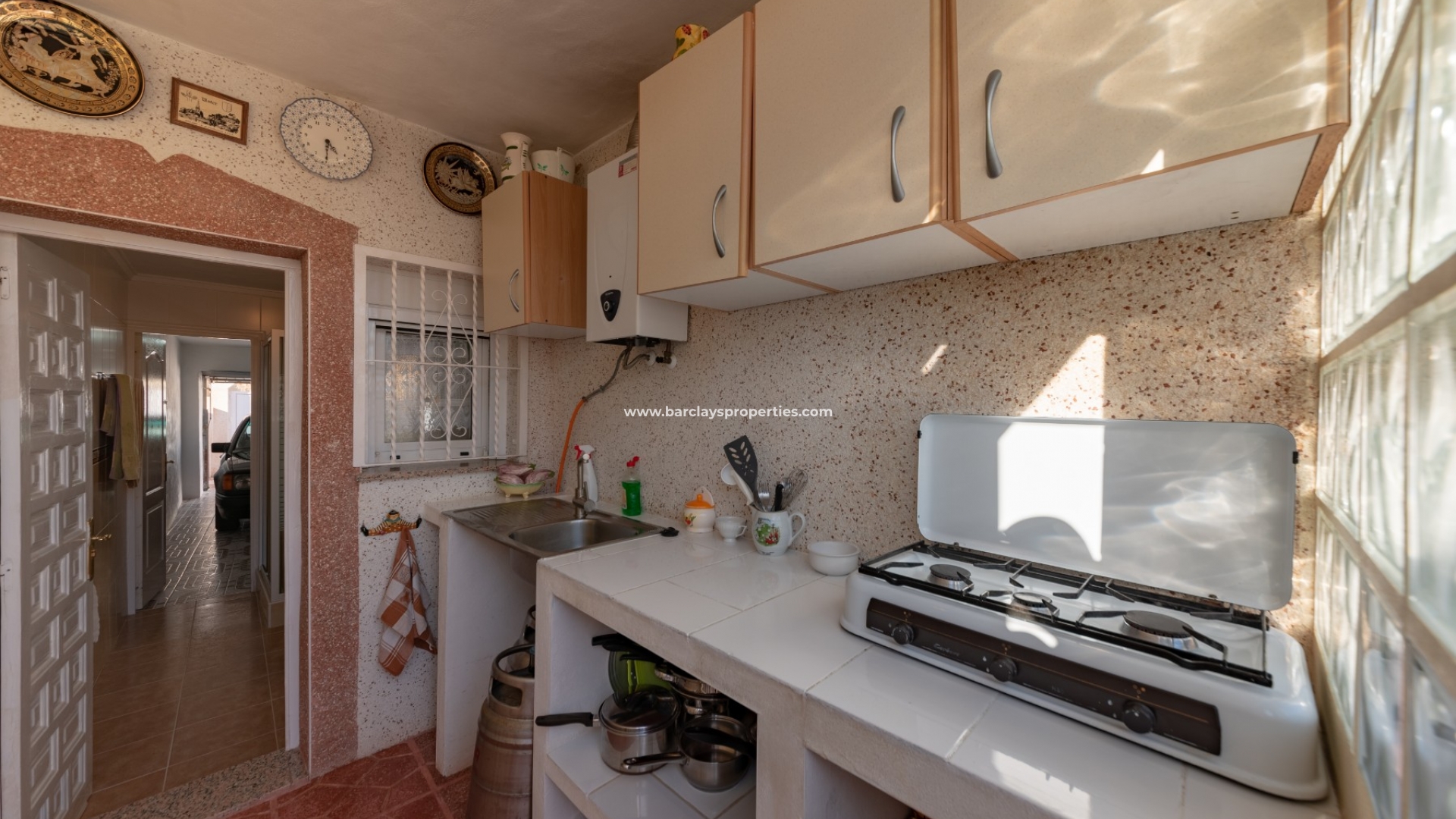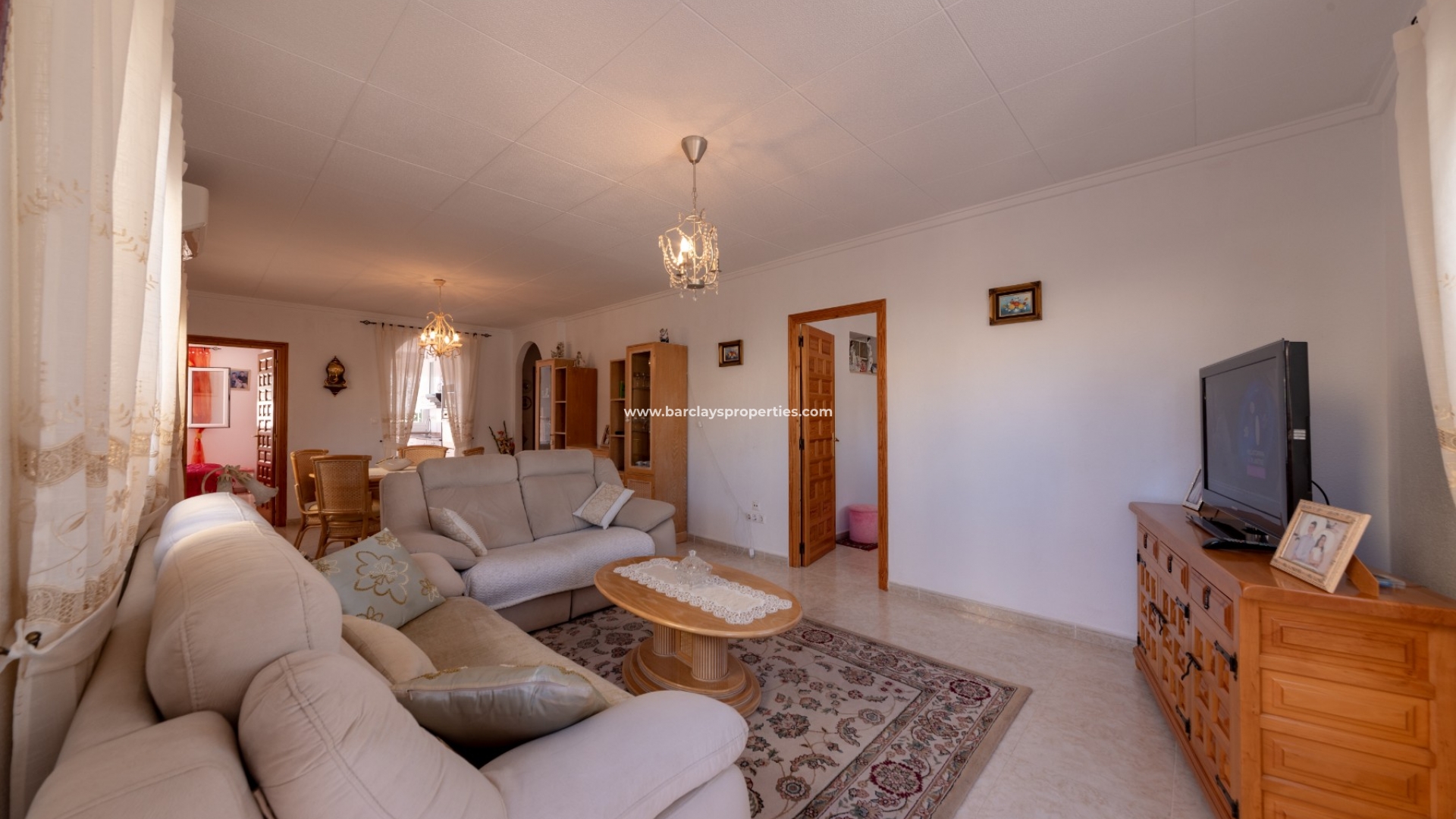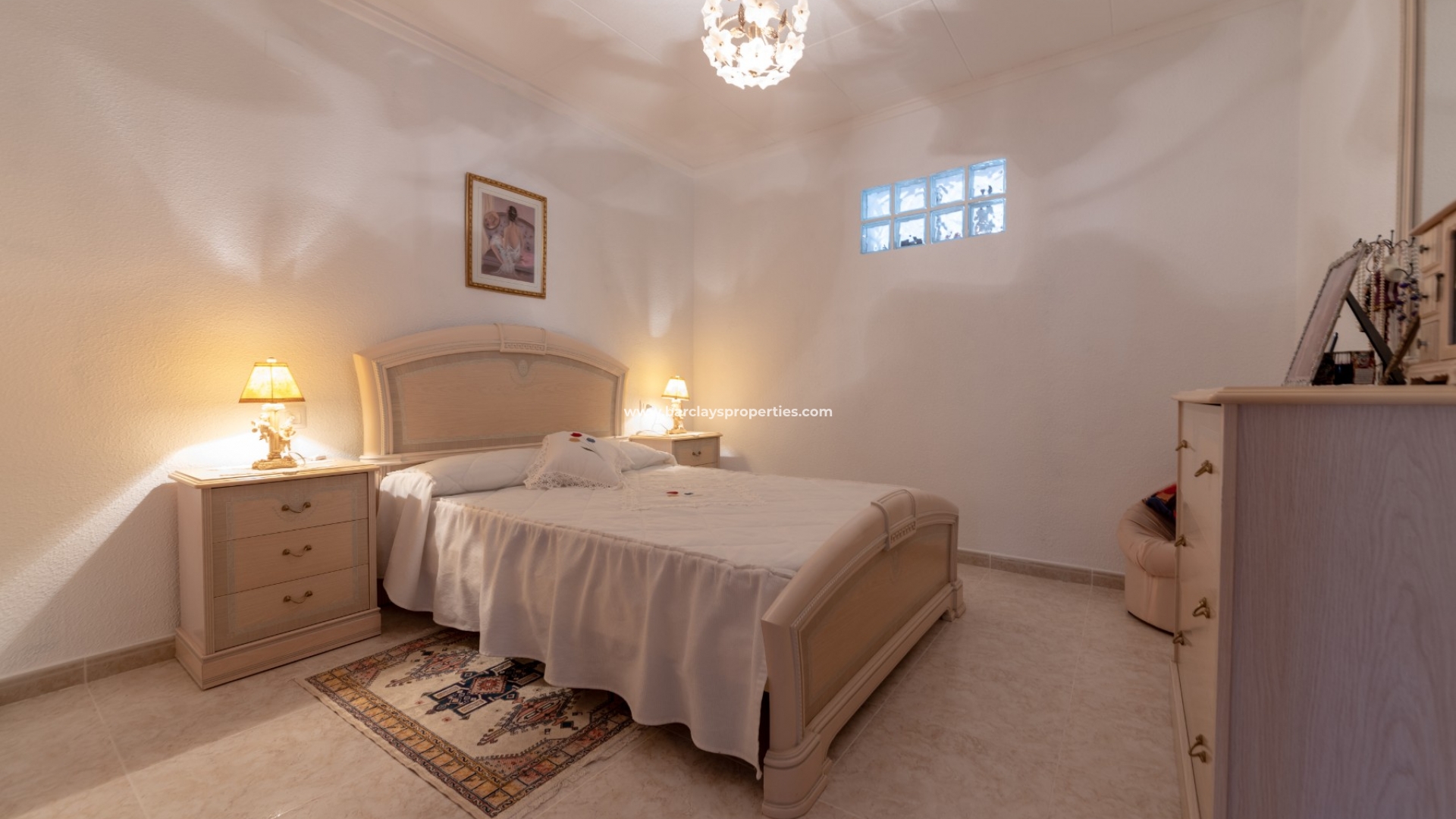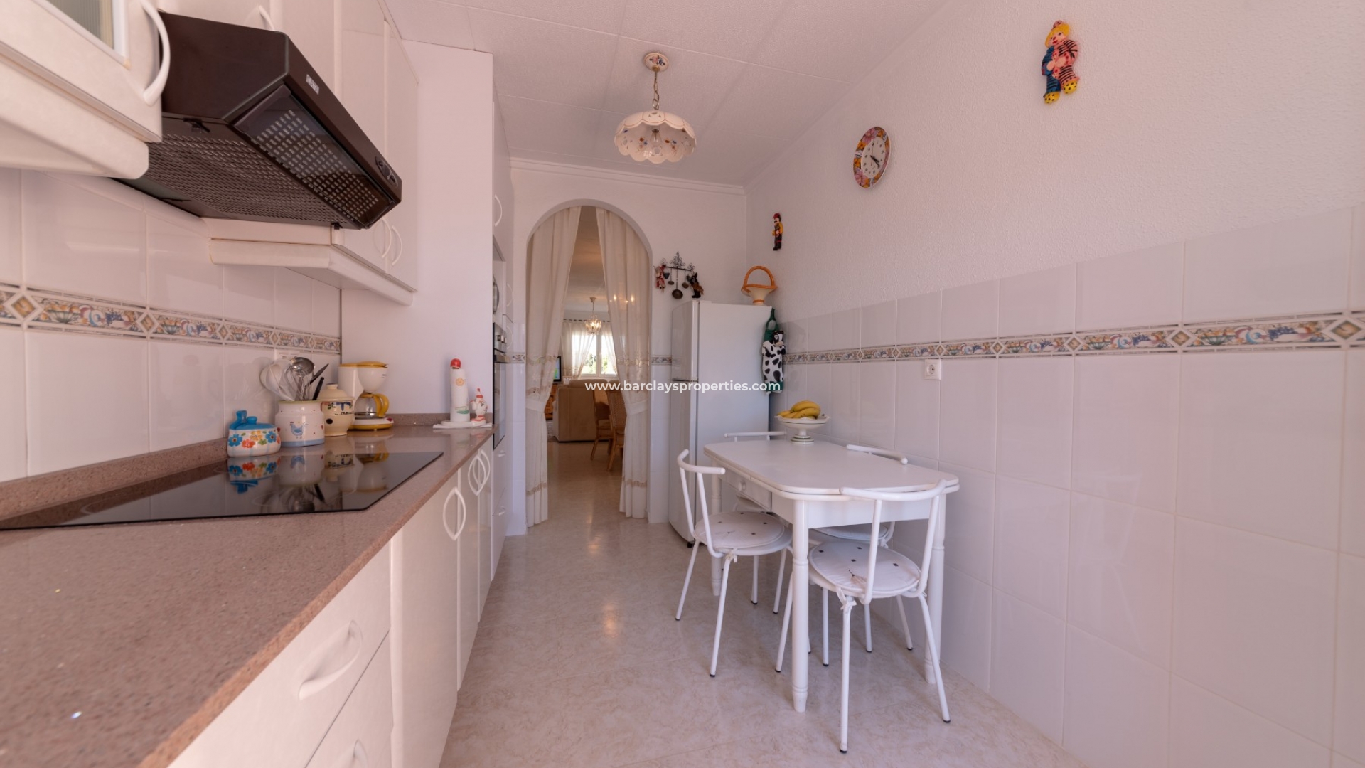 Het interieur van de woning is geheel gelijkvloers en ideaal voor iedereen die niet dagelijks trappen wil lopen. We worden verwelkomd door de ruime en lichte woon / eetkamer met airconditioning en "draai-kiep" aluminium ramen met dubbele beglazing die veel natuurlijk licht geven, een onafhankelijke volledig ingerichte keuken met eethoek en toegangsdeur naar de patio aan de achterzijde, vier ruime tweepersoons slaapkamers en een badkamer met inloopdouche.