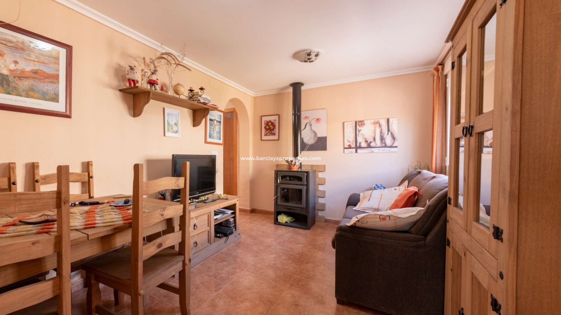 We betreden het huis via een witte deur met hoge beveiliging en lopen meteen een ruime zitkamer/woonkamer binnen die zowel airconditioning heeft om op een warme zomerdag voor verkoeling te zorgen, als een houtkachel om op koude winteravonden gezellig rond te branden. Vanaf hier vinden we een deur aan de linkerkant die ons leidt naar een onafhankelijke volledig ingerichte keuken en bijkeuken. De keuken heeft een raam met uitzicht op de tuin vanaf de gootsteen, zodat u kunt genieten van het uitzicht buiten terwijl u de afwas doet. Terug in de woonkamer en rechtdoor vinden we een kleine gang met twee tweepersoons slaapkamers aan de rechterkant, beide met grote ramen met uitzicht op de tuin, waardoor beide worden gevuld met veel natuurlijk licht. Aan de linkerkant vinden we een grote volledig ingerichte badkamer met een inloopdouche. Als we verder door de gang lopen, komen we door een open deur in een tweede huis dat met elkaar verbonden is in hetzelfde gebouw. Ook hier zijn aan de rechterkant twee tweepersoonsslaapkamers, met grote ramen die uitkijken op de tuin en ingebouwde kasten. Er is een volledig ingerichte badkamer met een inloopdouche aan de linkerkant en aan het eind lopen we naar een andere lounge/eetkamer die ook zijn eigen airconditioning en houtkachel heeft. Aan het eind van de zitkamer vinden we een deur naar een onafhankelijke volledig ingerichte keuken. Het heeft ook zijn eigen exterieur witte high-security deur, dus beide huizen, hoewel verbonden, hebben onafhankelijke ingangen.