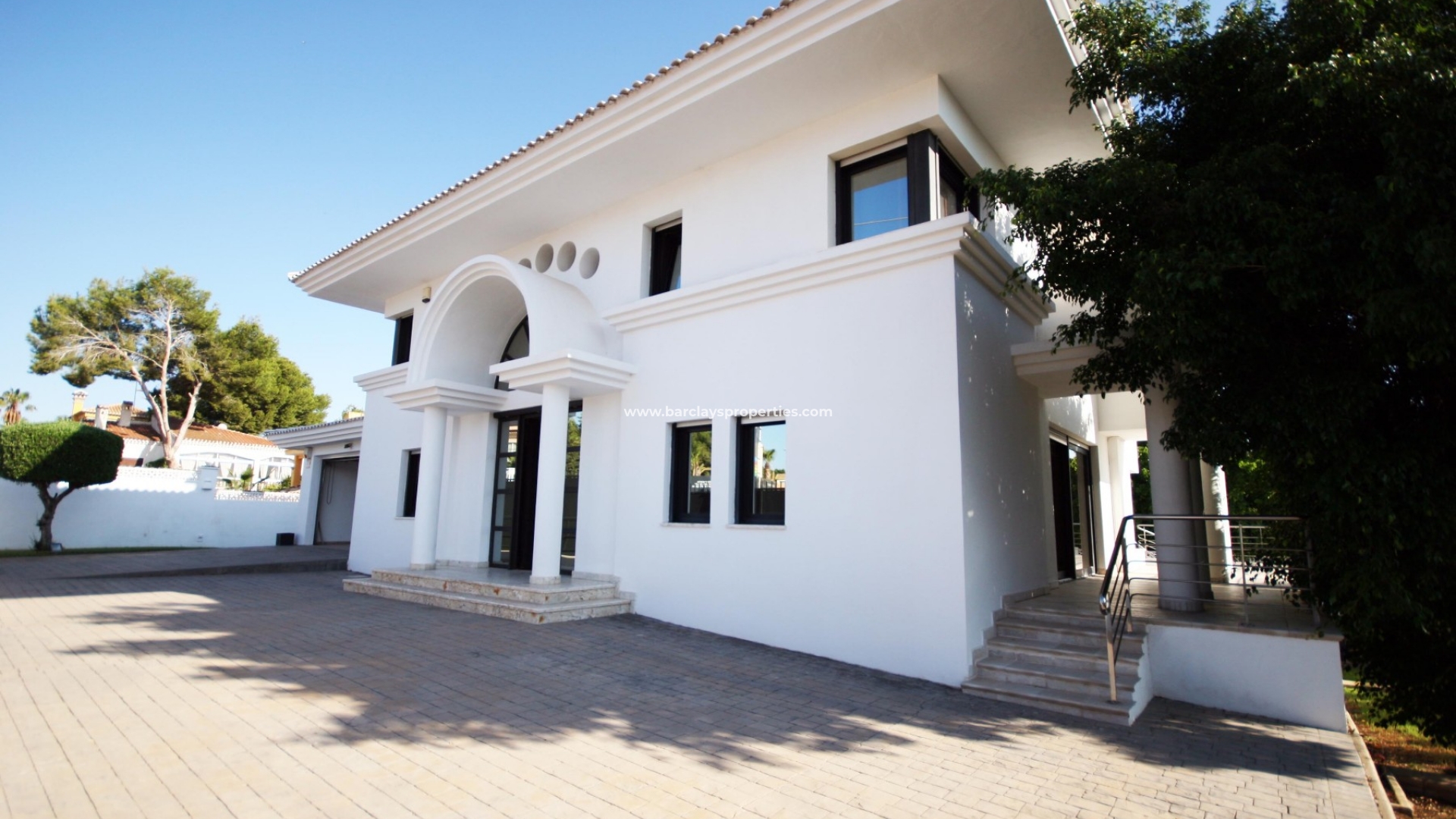 U vindt deze prestigieuze en luxe moderne villa gelegen naast de Villamartin Golf Course, in het populaire gebied van Villamartin, een prachtig mediterraan stadje omgeven door sinaasappel-en citroenboomgaarden, beroemd om zijn 'Plaza' waar u kunt zitten in een van de vele restaurant terrassen en luisteren naar het geluid van de tropische papegaaien terwijl u nipt aan een koel drankje in de Costa Blanca zon. Het is ook beroemd om zijn nachtelijke muziek entertainment tijdens de zomer en zijn multinationale restaurants met top klasse keuken. Er is een Internationale School die door "El Mundo" als één van "De beste scholen in Spanje" wordt beoordeeld en een andere attractie in dit gebied zijn de lokale straatmarkten waar u kleding, vers fruit en groenten, typische Spaanse delicatessen zoals Chorizo of Manchego Kaas en zelfs antiekkraampjes kunt vinden. De woning ligt op loopafstand van alle lokale voorzieningen, op 2 minuten rijden van het beroemde winkelcentrum La Zenia Boulevard en op slechts twee kilometer van de prachtige zandstranden van Orihuela Costa.