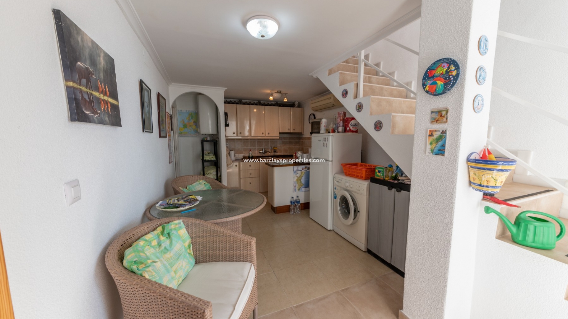 We vinden dit prachtige rijtjeshuis op het zuiden in een centrale, maar rustige wijk van La Marina Urbanisation. Direct aan de voorzijde van het pand zijn er struiken, mooie bloemen en bomen die schaduwrijke gebieden om te parkeren onder te bieden.