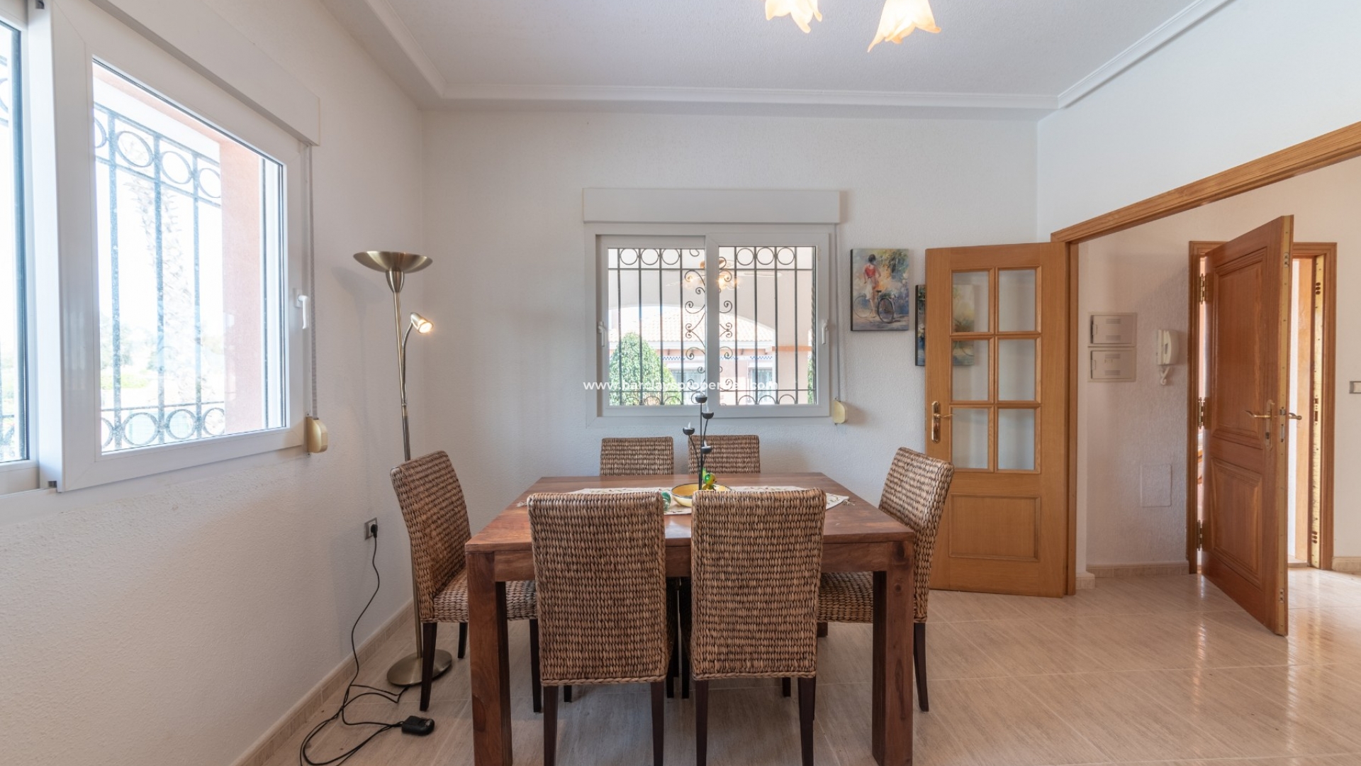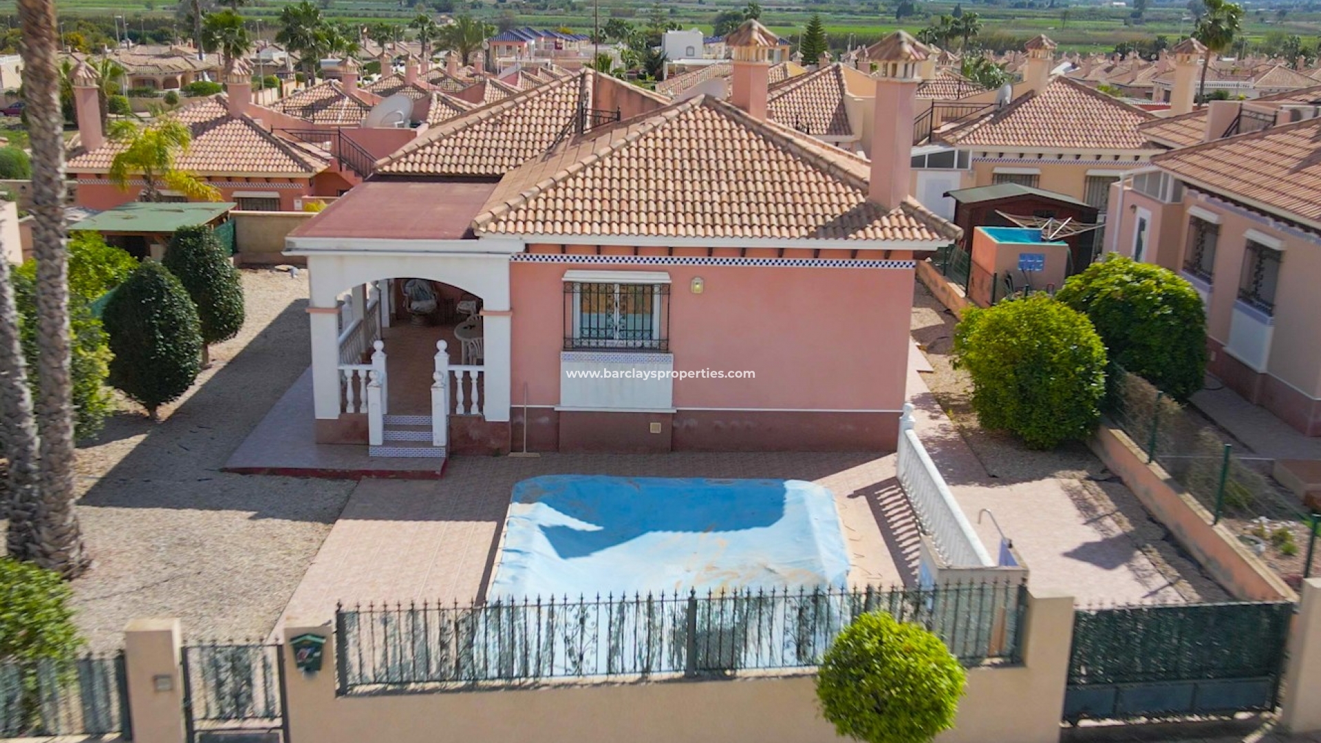 Gelegen in een goed formaat perceel van 536m2 in het hart van de urbanisatie La Marina, San Fulgencio is dit model, "Marina Villas" vrijstaande woning. Een intercom systeem geeft toegang tot de geplaveide en grind ruime tuin met off-road parking en een 8 x 4 prive zwembad met buitendouche gebied.