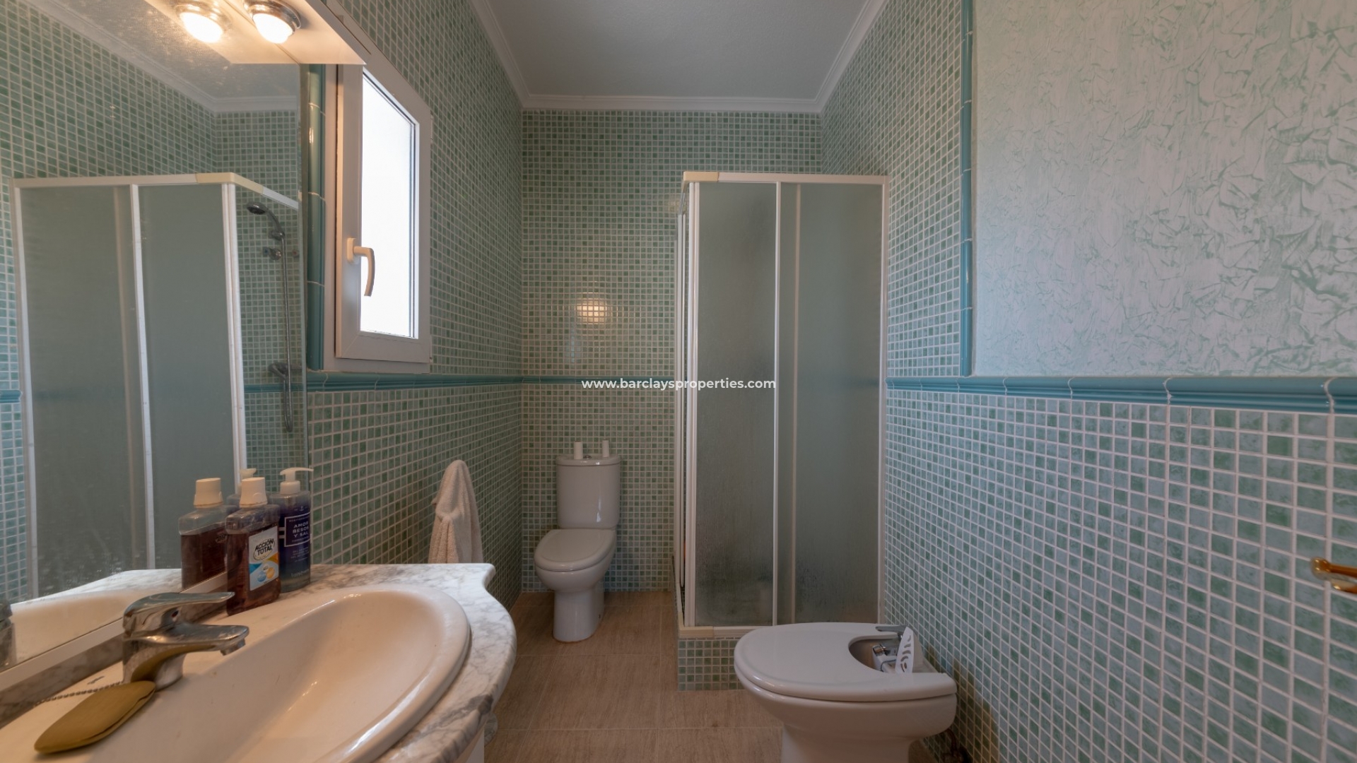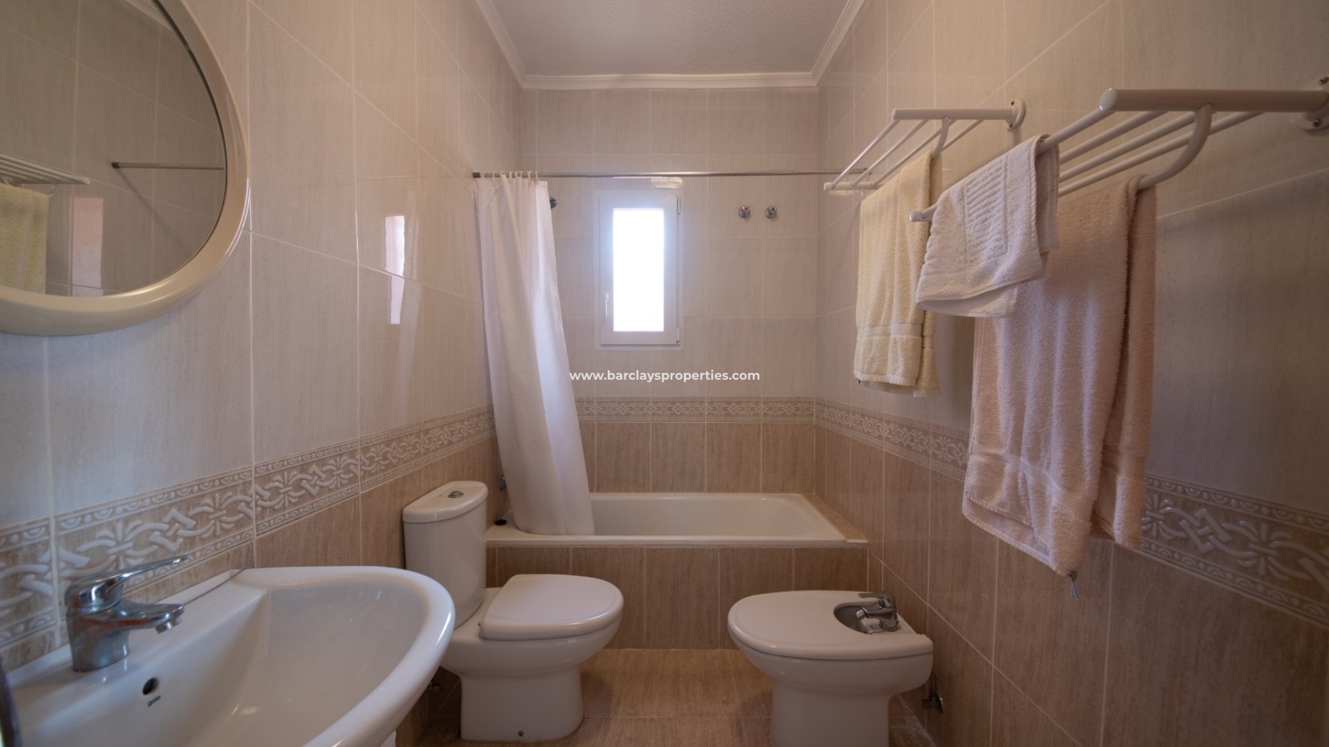 De rest van deze mooie woning beschikt over een familie badkamer met full size bad, wastafel, toilet en bidet en 3 dubbele slaapkamers met inbouwkasten, plafondventilatoren (de master bedroom heeft een en-suite badkamer compleet met hoekdouche, badmeubel / wastafel, toilet en bidet.