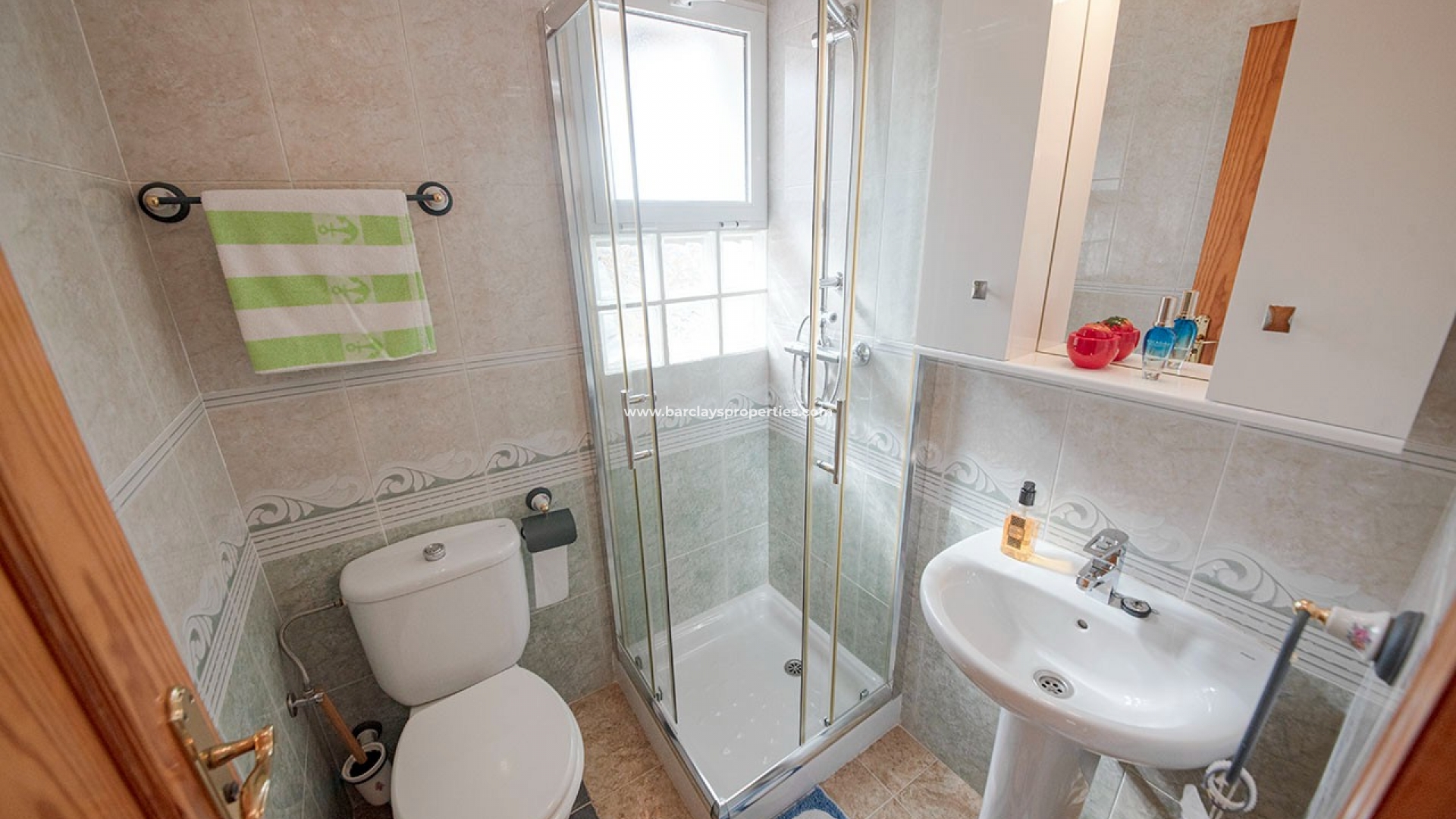 Deze vrijstaande woning biedt een mooie betegelde tuin en een zijtuin met grind en zitgedeeltes buiten, een verhoogd terras aan de voorzijde dat leidt naar het interieur van de woning waar u een woonkamer met eethoek zult tegenkomen, een onafhankelijke volledig ingerichte keuken, drie slaapkamers (waarvan één toegang heeft tot een balkon) en twee volledig ingerichte badkamers. De woning heeft een zonneterras met uitzicht op open velden, de ideale locatie voor warme zomerdagen en -avonden.