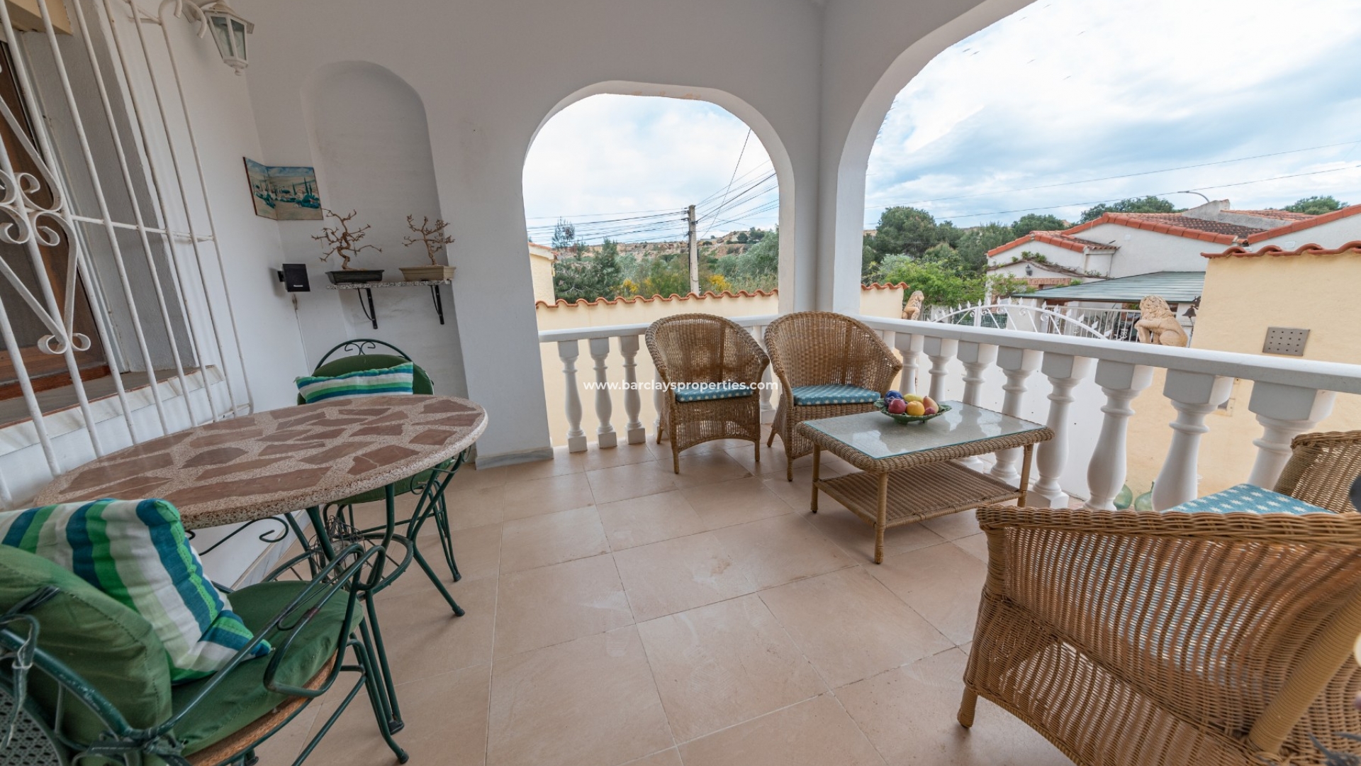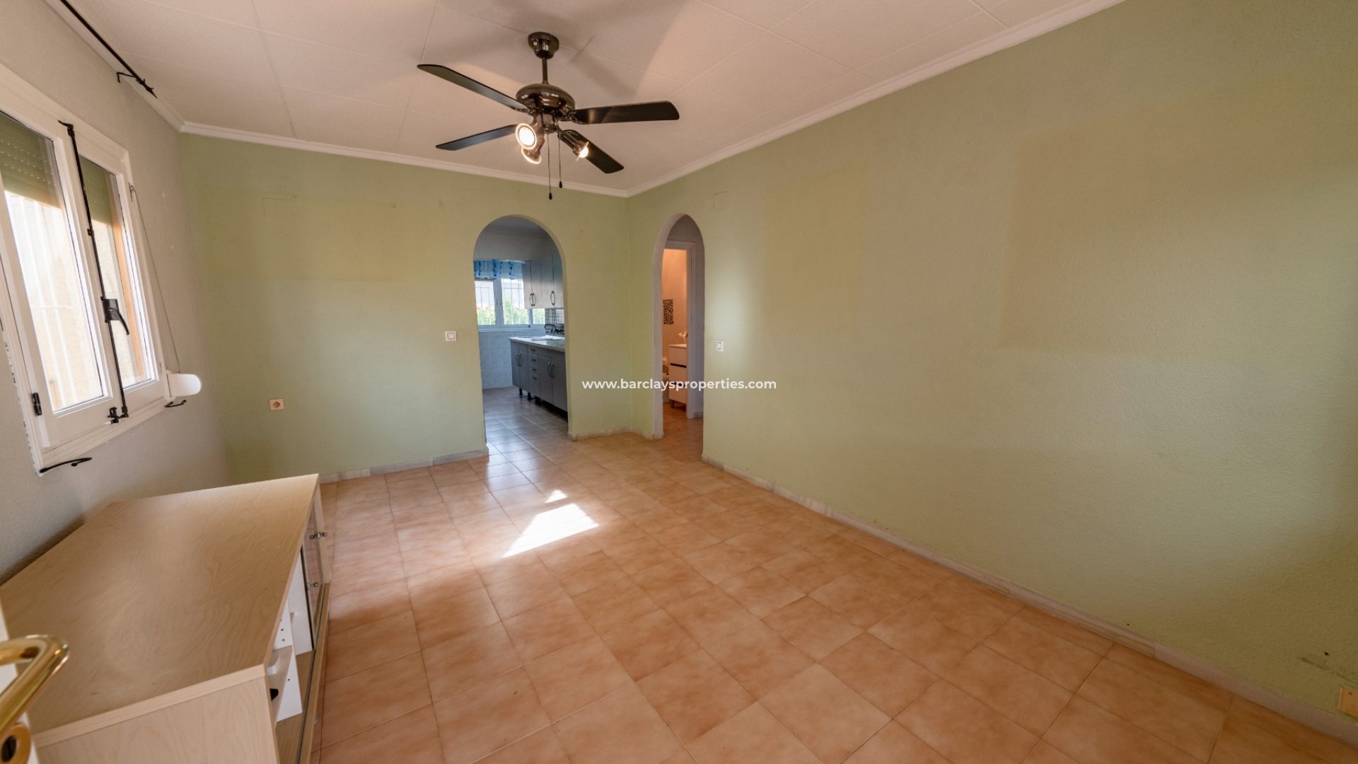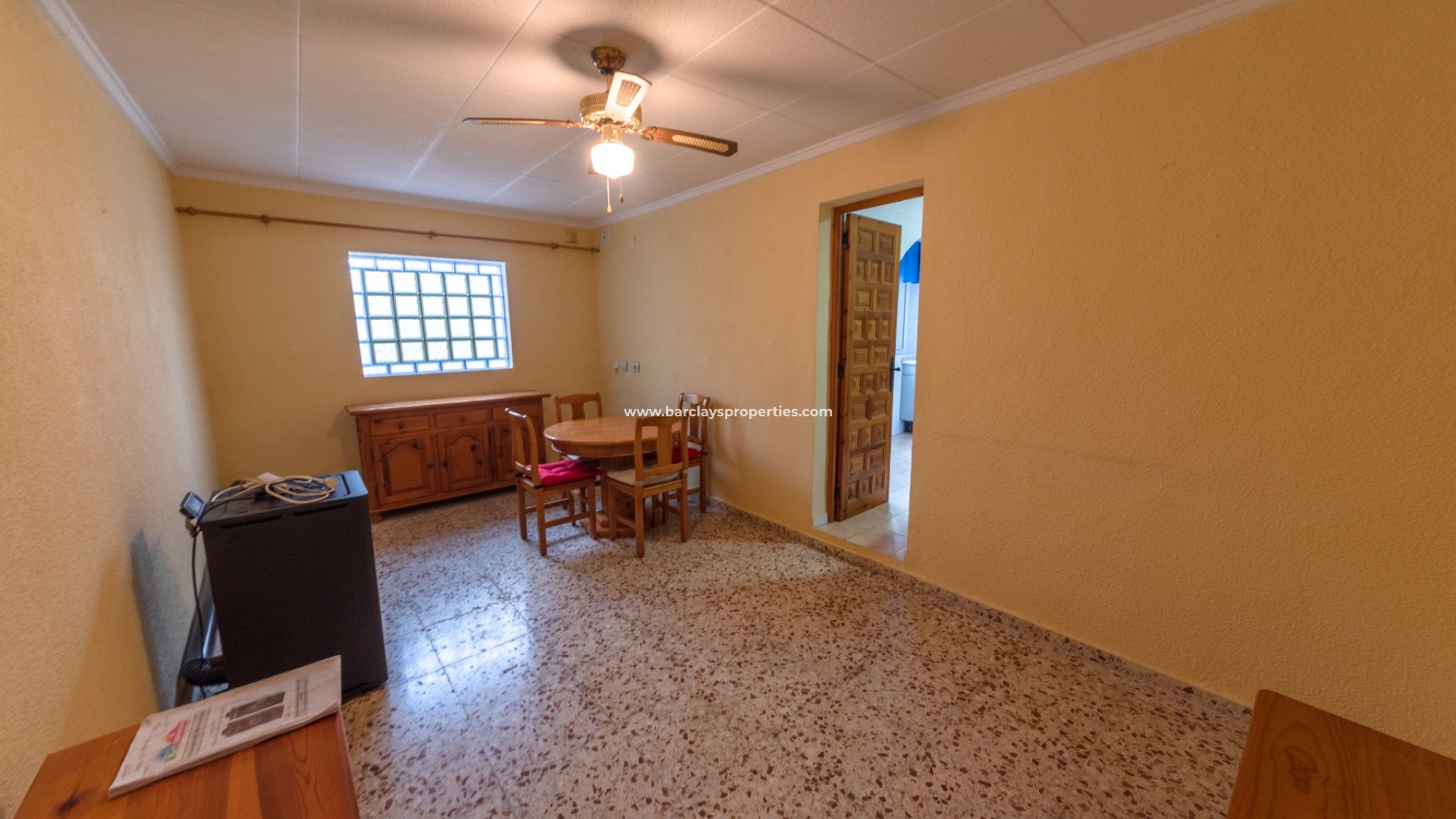 Bij het betreden van het huis door de dubbele poorten, zult u de ruime parkeergelegenheid op de weg op prijs stellen. Via een klein trapje komen we op het verhoogde terras dat in twee delen is verdeeld, we zien dat het ene deel beglaasd is en het andere open waar een grote zithoek is om buiten te eten, terwijl u geniet van het uitzicht op het platteland.