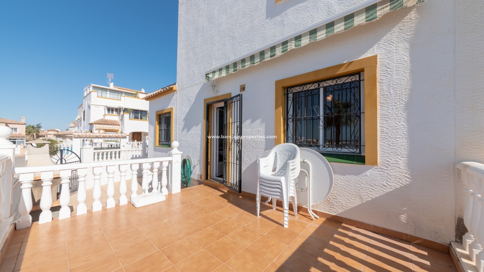 Een prachtige kans heeft zich voorgedaan om deze 3 slaapkamer / 2 badkamer prachtige zuid-westen gelegen quad villa direct tegenover het gemeenschappelijke zwembad en tuinen in een gewilde omgeving van urbanisatie La Marina te verwerven.