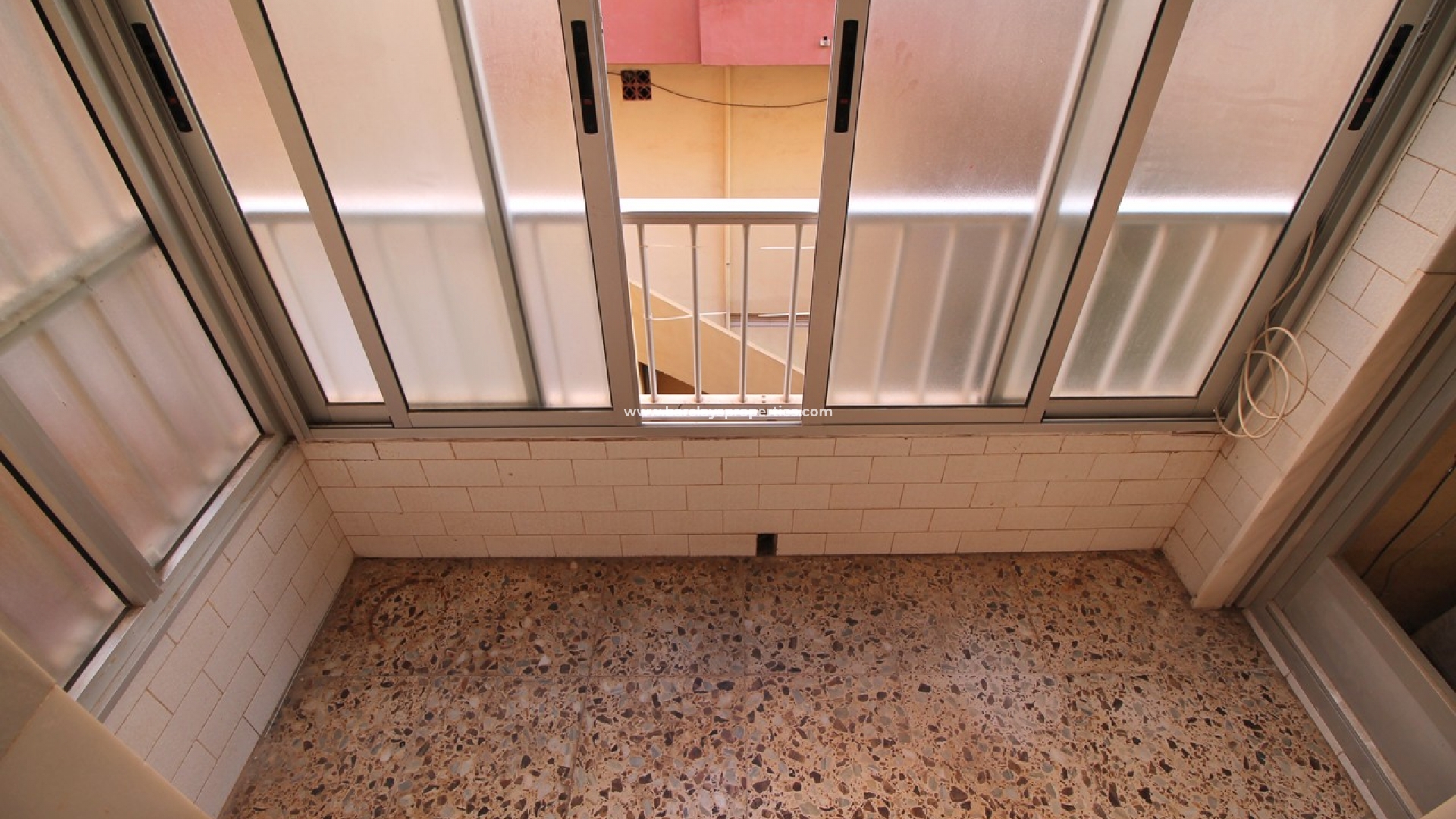 Het appartement zelf biedt een ruime en lichte woonkamer met airconditioning en houten vloeren, een nieuwe en moderne onafhankelijke keuken, een bijkeuken, 2 tweepersoons slaapkamers, waarvan een met een eigen klein balkon (momenteel in gebruik als eetkamer) en een eenpersoons slaapkamer. De ouderslaapkamer heeft gespiegelde kasten en bergruimte. In de badkamer bevindt zich ook een volwaardig bad. Als u met de lift omhoog gaat naar het gemeenschappelijke dakterras, kunt u genieten van een prachtig uitzicht op zee. Dit appartement is ideaal als vakantiehuis, permanente bewoning en heeft goede mogelijkheden voor de verhuur.