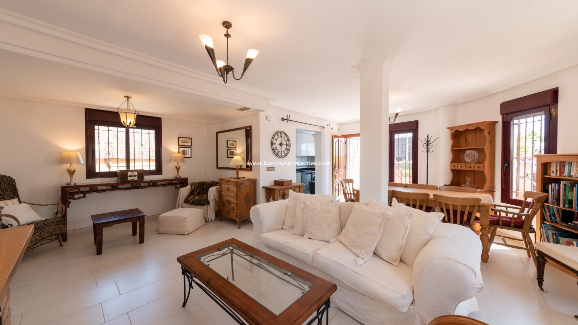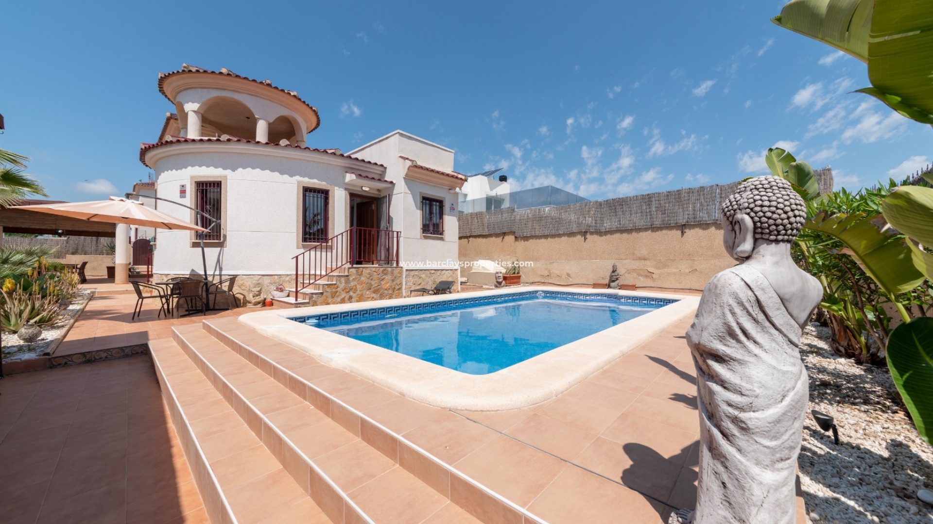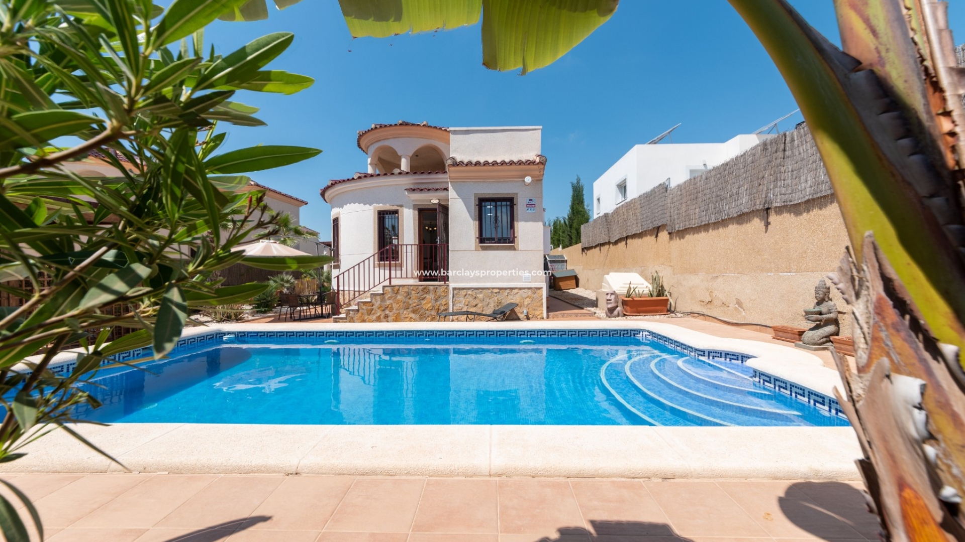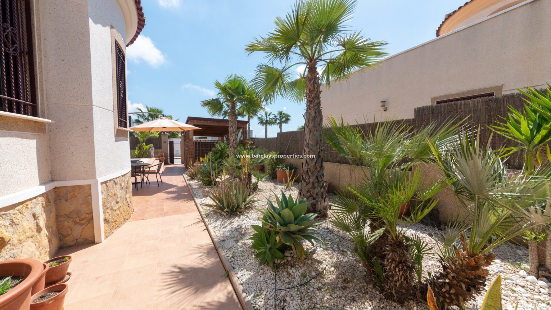 Gelegen in een ruime aangelegde tuin met zijn eigen 8 x 4 prive zwembad is deze prachtige vrijstaande villa, een model "Elisa" gelegen in een rustige omgeving, maar toch op slechts 10 minuten lopen naar de dichtstbijzijnde commerciële gebied in urbanisatie La Marina dat is een grote woonwijk op slechts 5 minuten rijden naar de gouden, zandstranden van La Marina. Alle voorzieningen zijn te vinden op de urbanisatie echter, voor degenen die wensen om verder weg te reizen zijn er busroutes en taxi's beschikbaar in de hele urb. Er is ook een zomer busdienst naar het plaatselijke strand, dat is erg populair bij toeristen en de lokale bevolking.