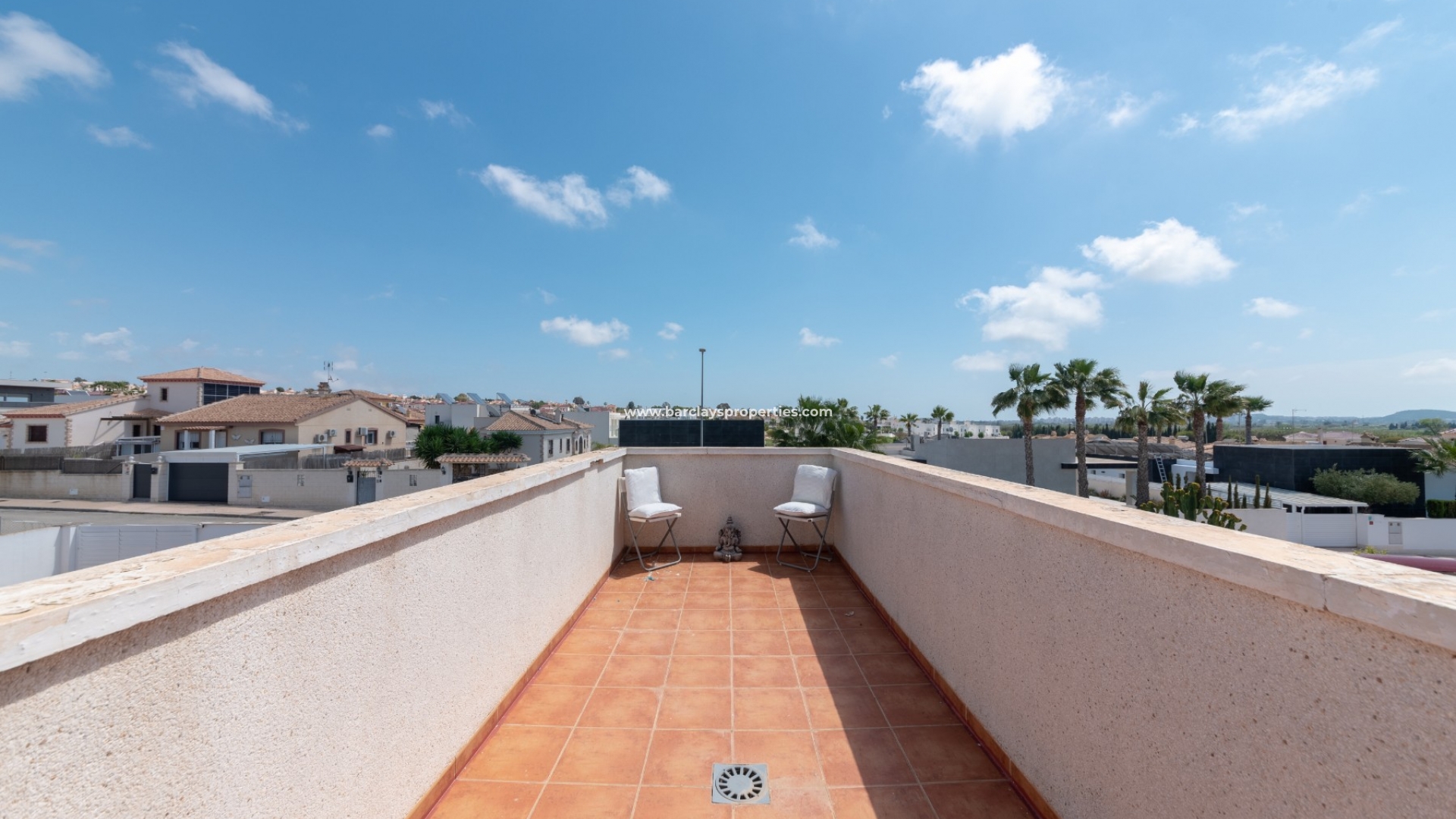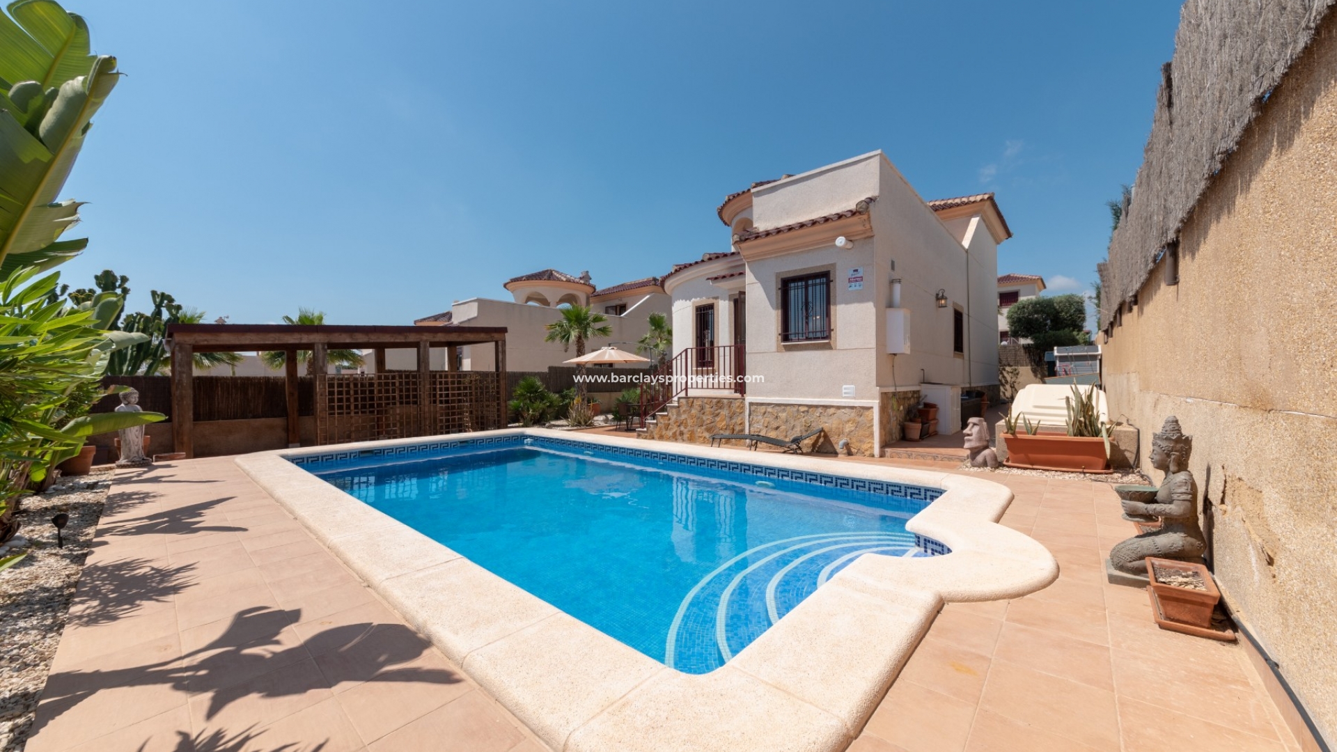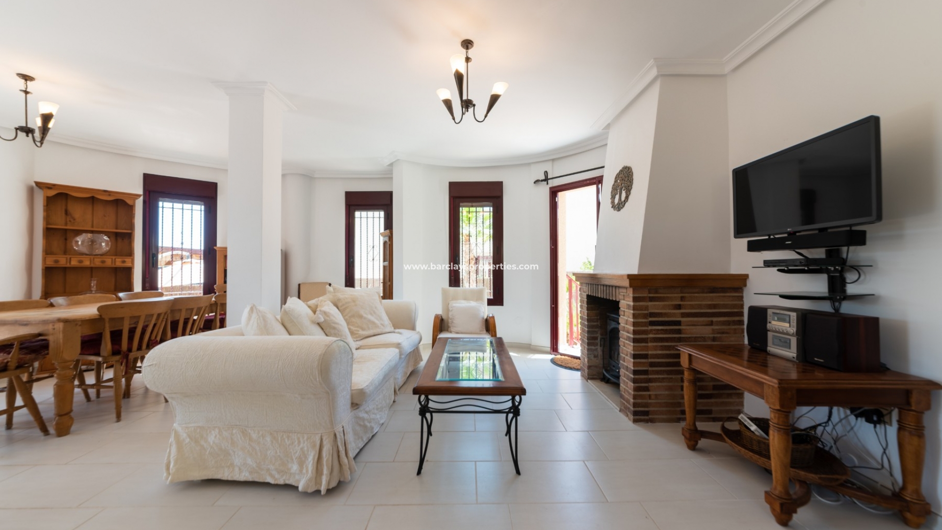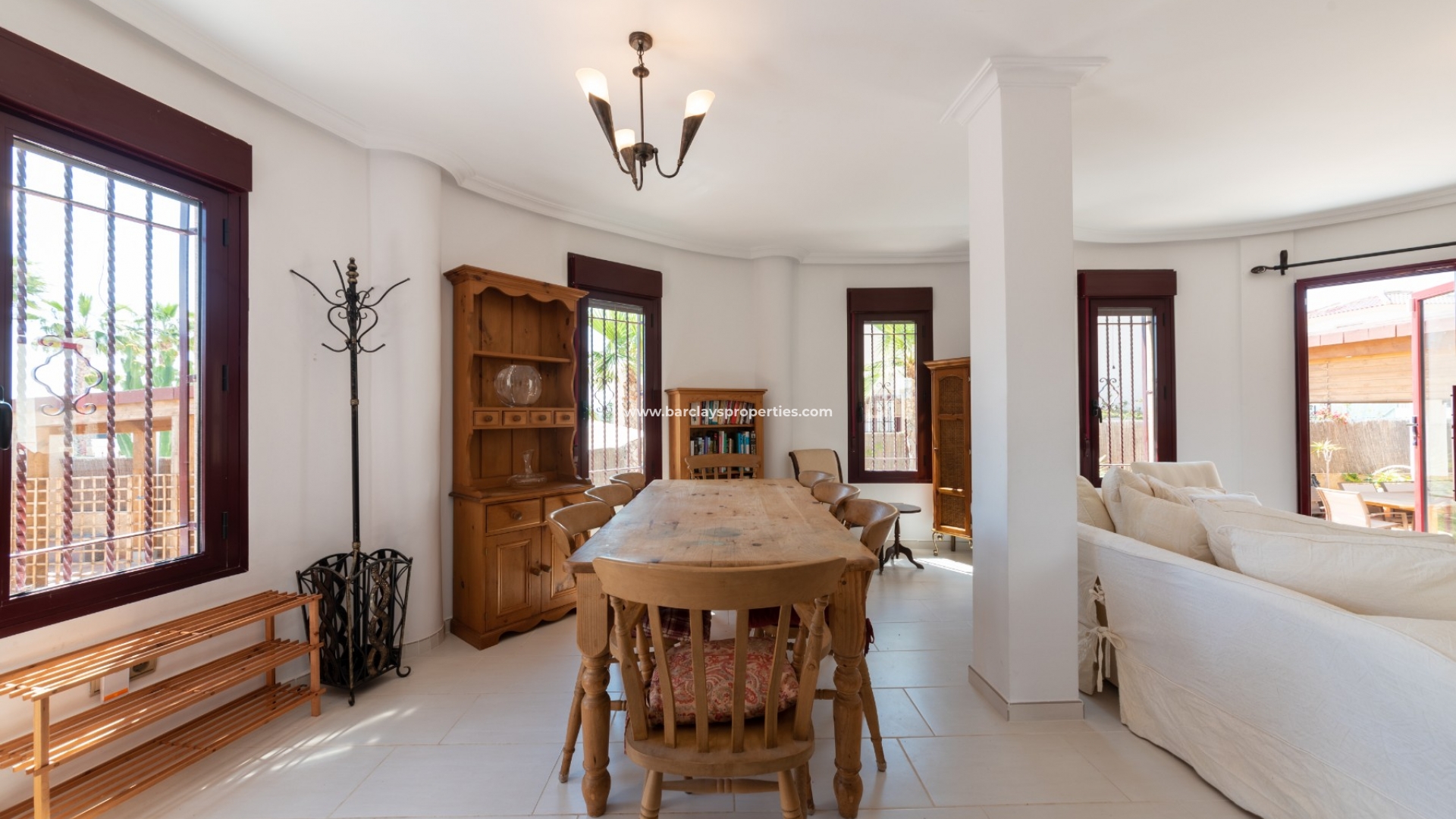Gelegen in een ruime aangelegde tuin met zijn eigen 8 x 4 prive zwembad is deze prachtige vrijstaande villa, een model "Elisa" gelegen in een rustige omgeving, maar toch op slechts 10 minuten lopen naar de dichtstbijzijnde commerciële gebied in urbanisatie La Marina dat is een grote woonwijk op slechts 5 minuten rijden naar de gouden, zandstranden van La Marina. Alle voorzieningen zijn te vinden op de urbanisatie echter, voor degenen die wensen om verder weg te reizen zijn er busroutes en taxi's beschikbaar in de hele urb. Er is ook een zomer busdienst naar het plaatselijke strand, dat is erg populair bij toeristen en de lokale bevolking.