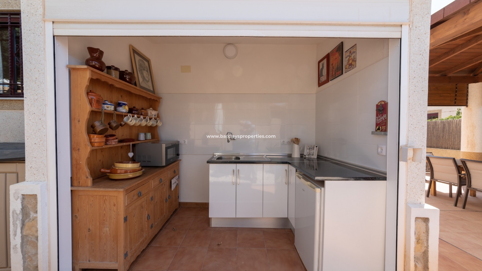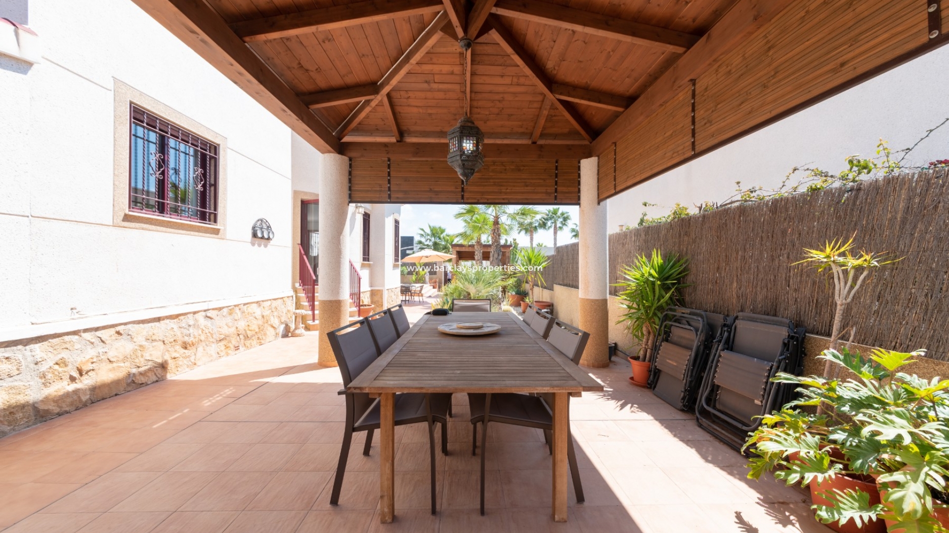 Deze prachtige woning heeft een perceel van 397m2 met off-road parking met een grote houten carport, een prachtig privé zwembad en een zorgvuldig onderhouden tuin met buiten zitplaatsen, waaronder een gazebo en buitenkeuken, perfect om te genieten van het zonnige klimaat van de Costa Blanca, ongeveer 325 dagen van het jaar! Bovendien maakt deze villa deel uit van een privé-gemeenschap die een gemeenschappelijk zwembad heeft, zeer dicht bij het pand.