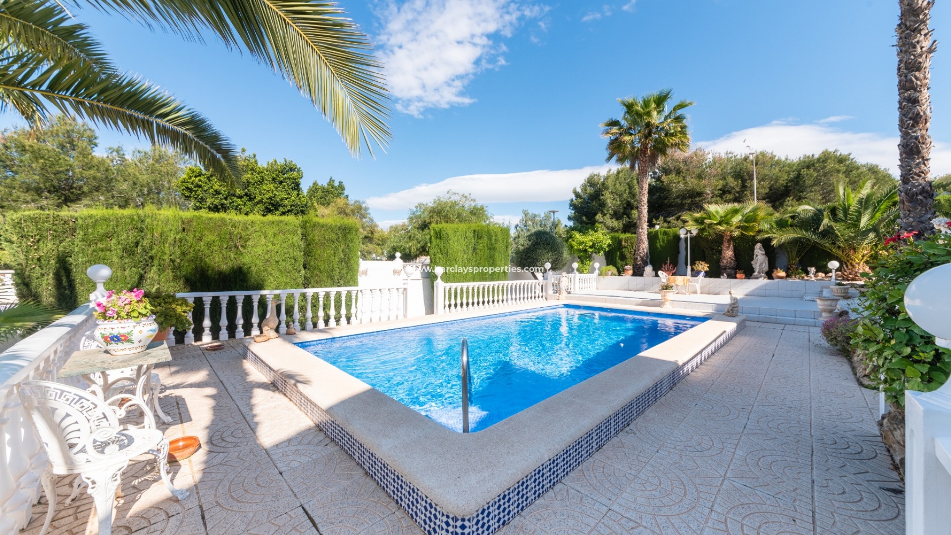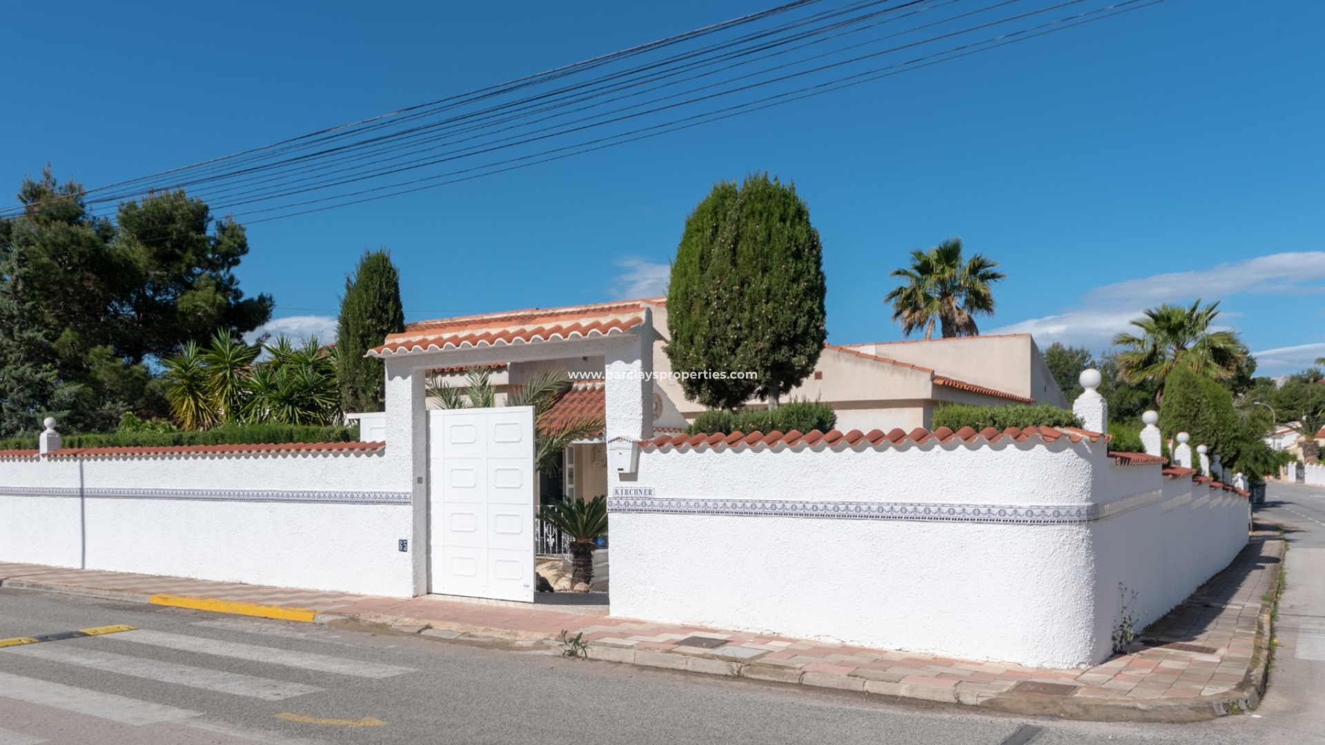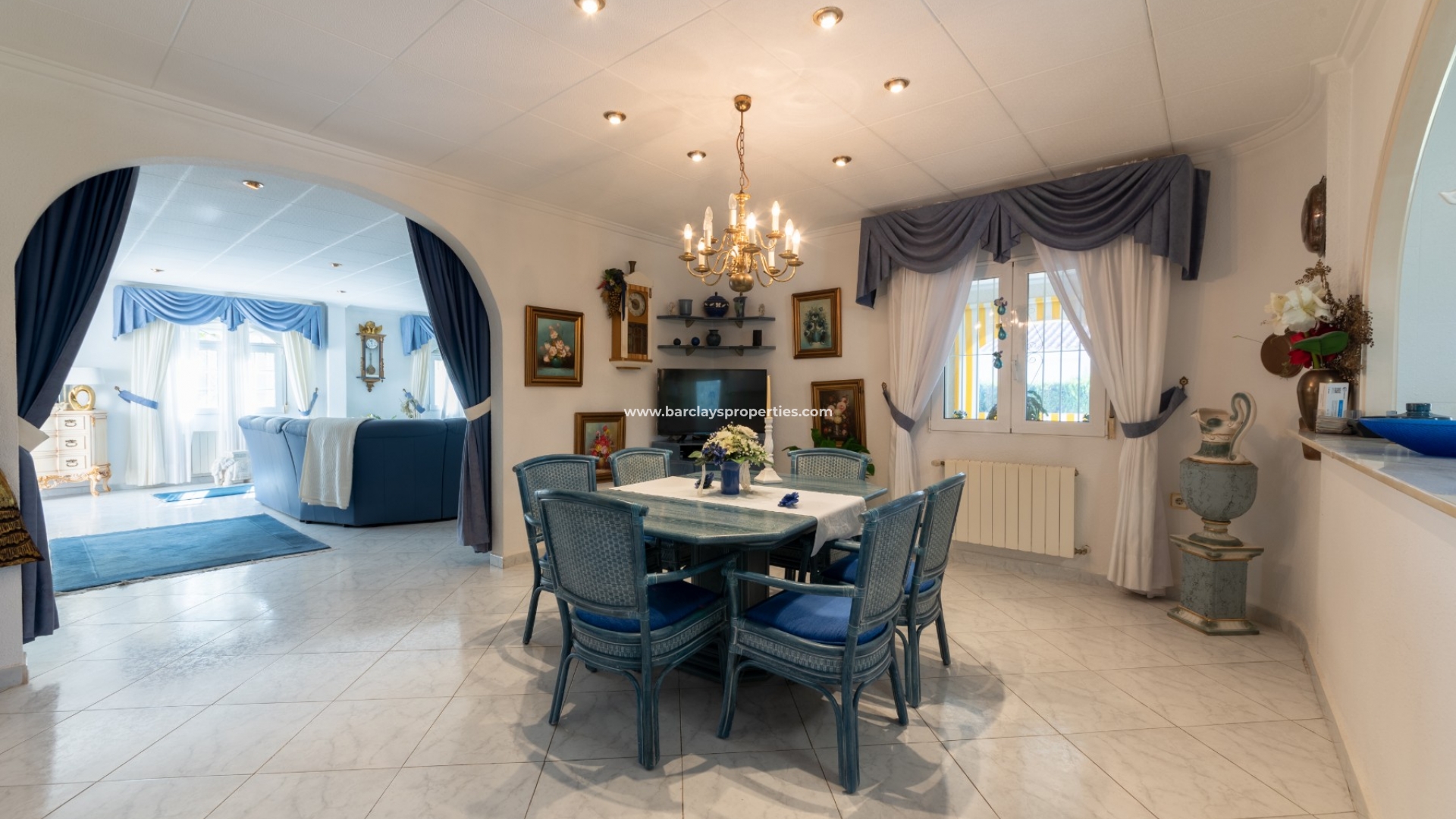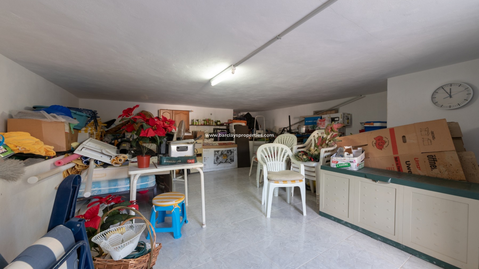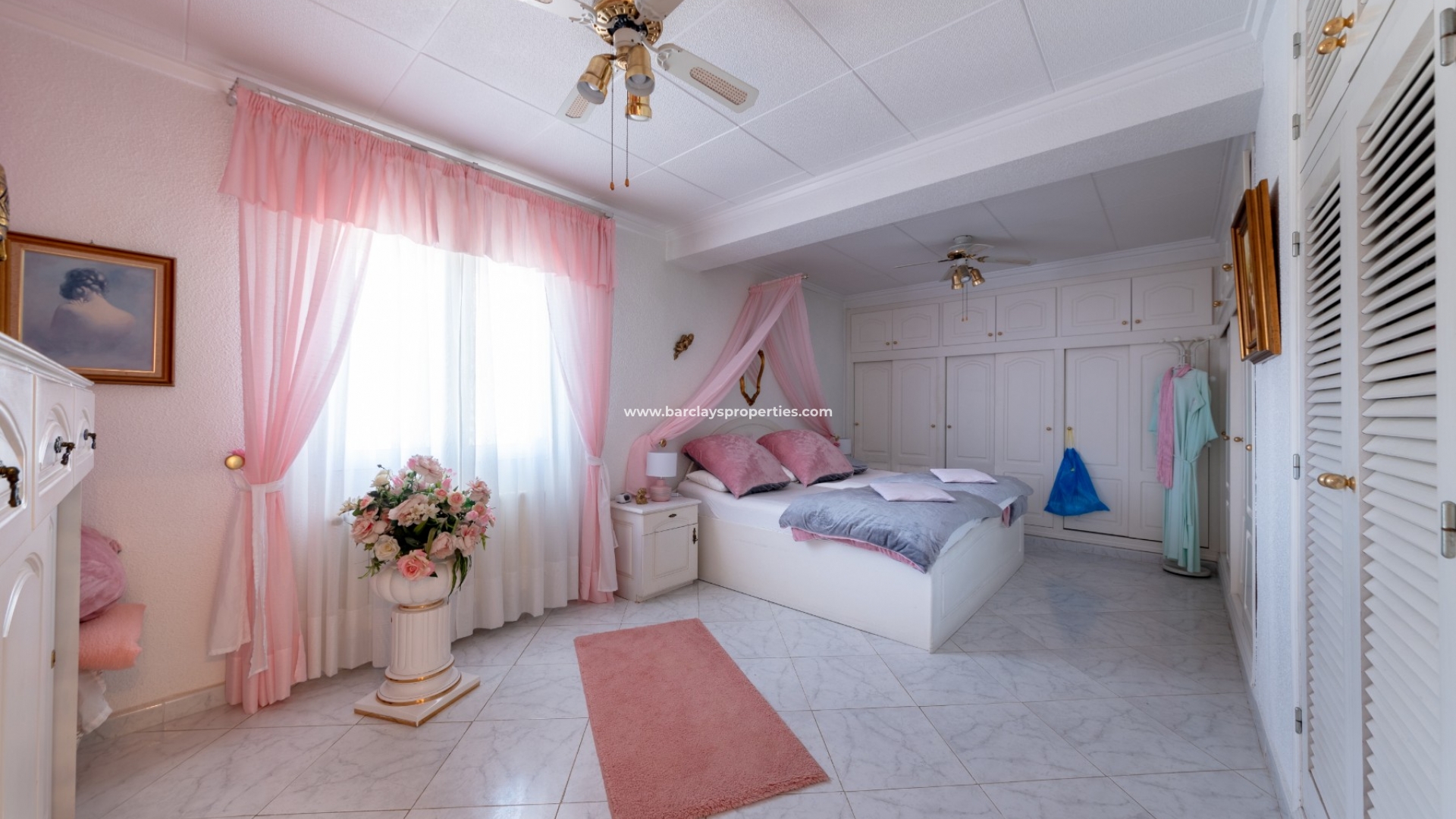 Deze prachtige woning heeft het allemaal! Het is gelegen op een toplocatie in de self-catering en multi-nationale urbanisatie van La Marina. Gelegen op een grote 800m2 hoekperceel, deze op het zuidwesten gelegen villa ligt naast twee parken en op slechts vijf minuten lopen van Consum Square waar u een grote supermarkt, diverse winkels en een scala aan bars en gemengde keuken restaurants, die live entertainment bieden tijdens de warmere maanden van het jaar te vinden. Vijf minuten in de tegenovergestelde richting brengt u naar een ander commercieel gebied, langs een groot sportcomplex met minigolf, een snookerhal en een waterpark voor kinderen op uw weg. Hier vindt u een apotheek, het gemeentehuis, een dokterspraktijk, banken, een supermarkt, samen met meer bars en restaurants. Er is ook een internationale supermarkt die zeven dagen per week open is, waar ze een verscheidenheid aan internationale producten en elke dag versgebakken brood aanbieden.