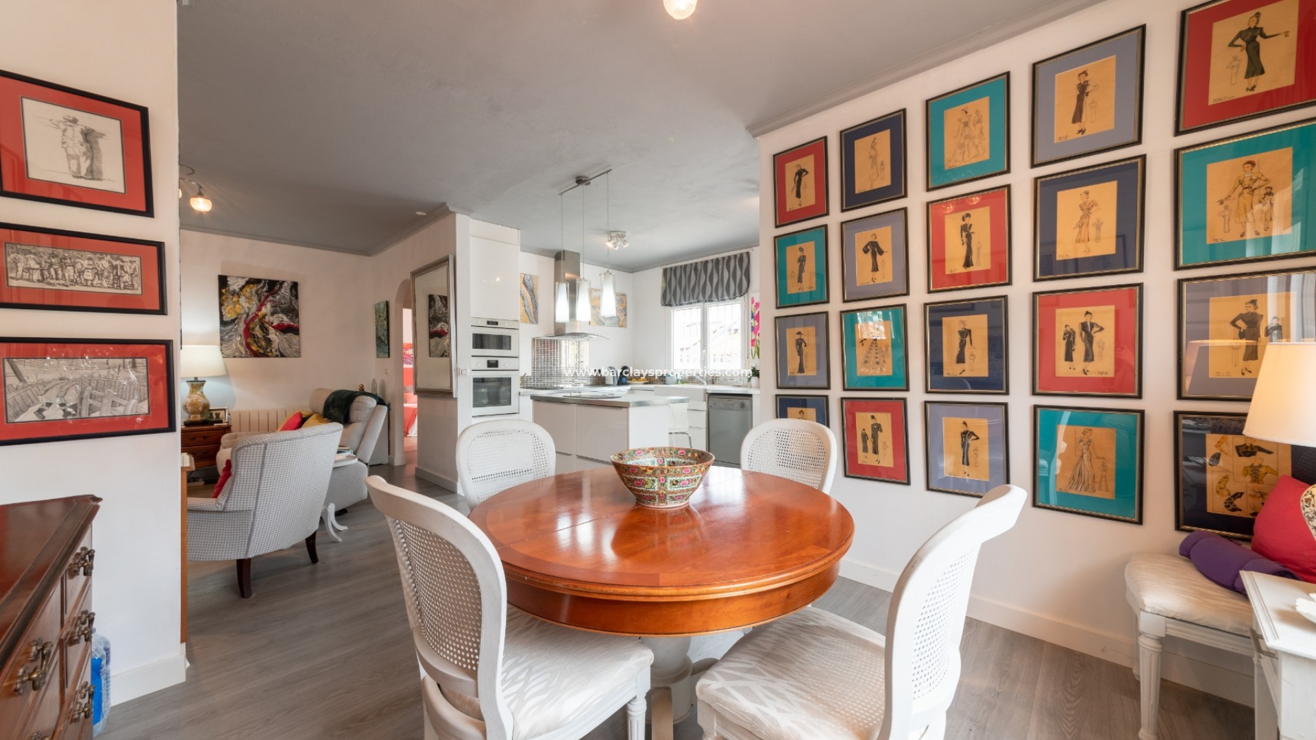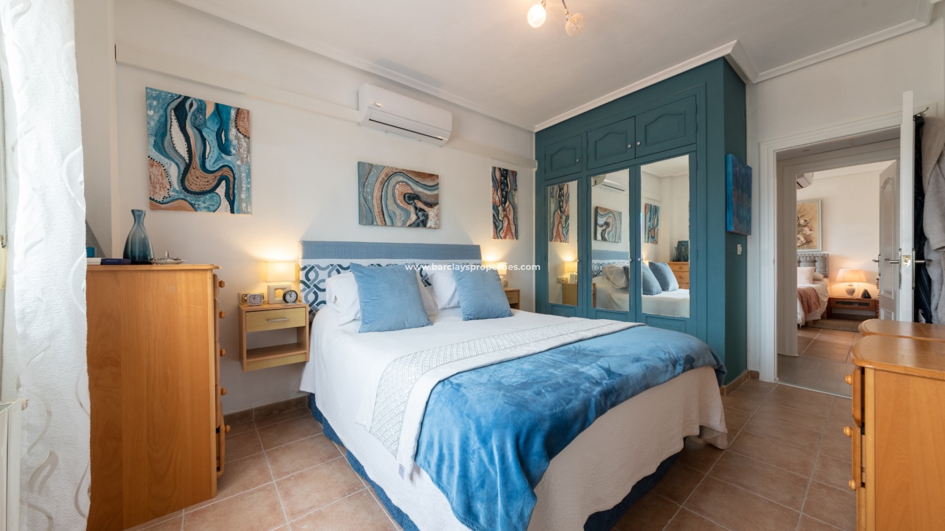 Er is een elegante eethoek grenzend aan de woonkamer en een absoluut prachtige moderne open keuken. Op dezelfde verdieping vinden we een grote tweepersoonsslaapkamer met een ingebouwde kledingkast, airconditioning en centrale verwarming, een volledig ingerichte badkamer met een hoekdouche en een tweede tweepersoonsslaapkamer met airconditioning, ingebouwde spiegelkasten, centrale verwarming en een ensuite badkamer met een volwaardig bad. Er is ook een derde tweepersoonsslaapkamer die eveneens airconditioning en centrale verwarming heeft.