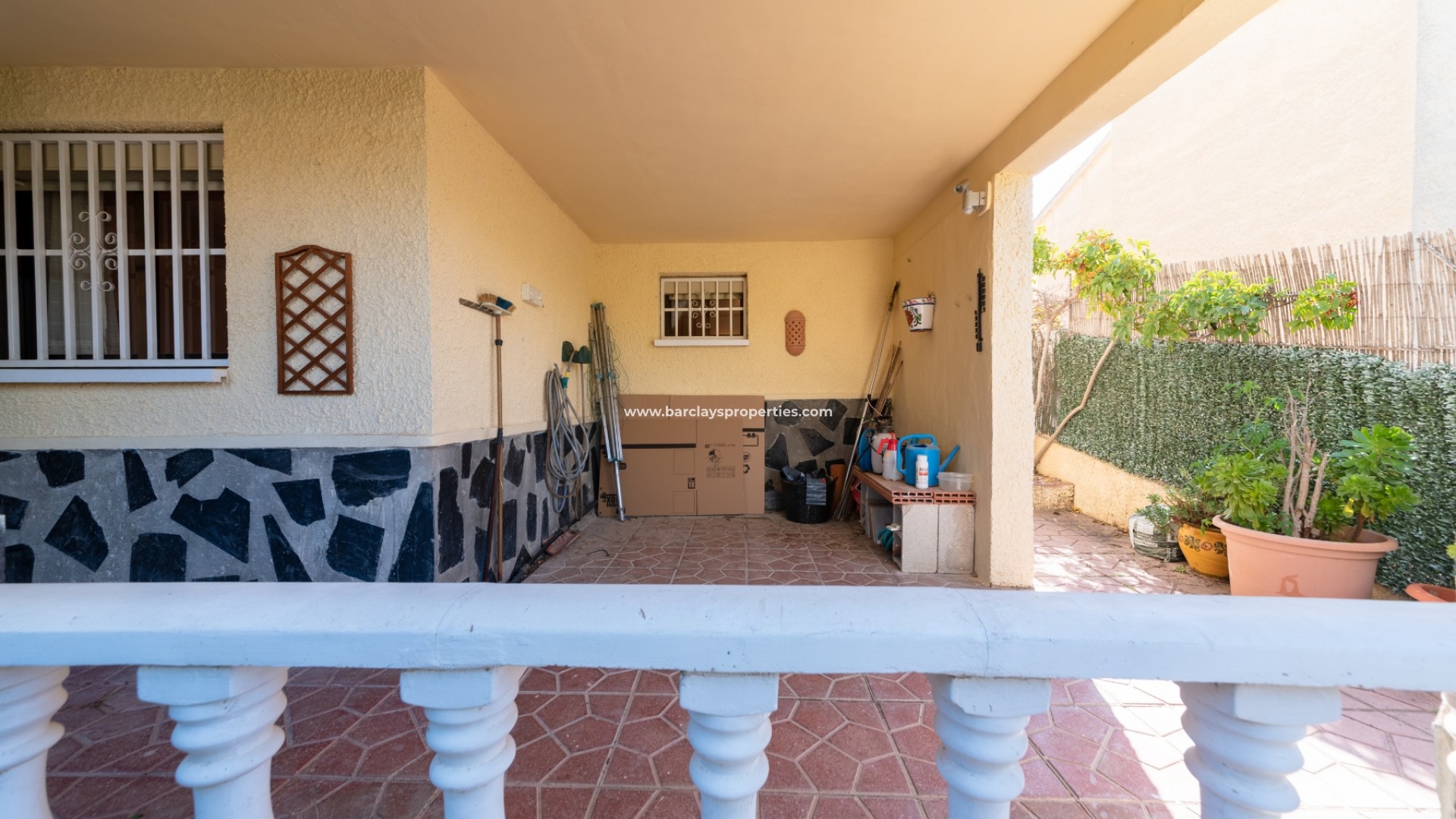 Het huis ligt op een steenworp afstand van het gemeenschappelijke zwembad, dat gedeeld wordt door slechts twaalf huizen. Het ligt ook dicht bij een bushalte met bussen die in de zomer elk uur van en naar La Marina Playa rijden. Het met de blauwe vlag bekroonde strand ligt op slechts tien minuten afstand van de urbanisatie en biedt voldoende ruimte om te ontspannen op het fijne gouden zand of in de schaduw van het grote dennenbos. Als u een natuurliefhebber bent en graag wandelt, zijn er vele routes dicht bij de urbanisatie waar u de lokale fauna kunt observeren. Het natuurreservaat 'El Hondo' biedt een prachtig landschap met zijn watermeren en flamingo's, samen met een aantal prachtige paarse en rode zonsondergangen voor de enthousiaste fotografen.