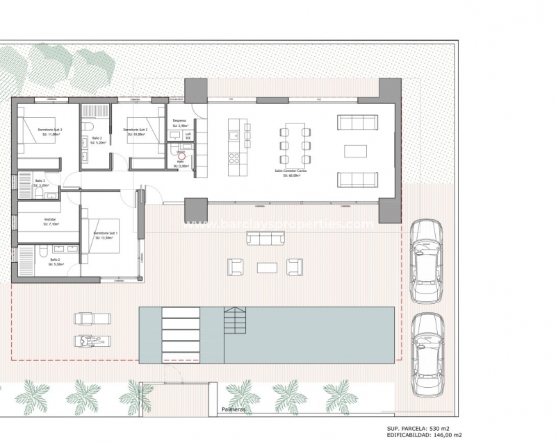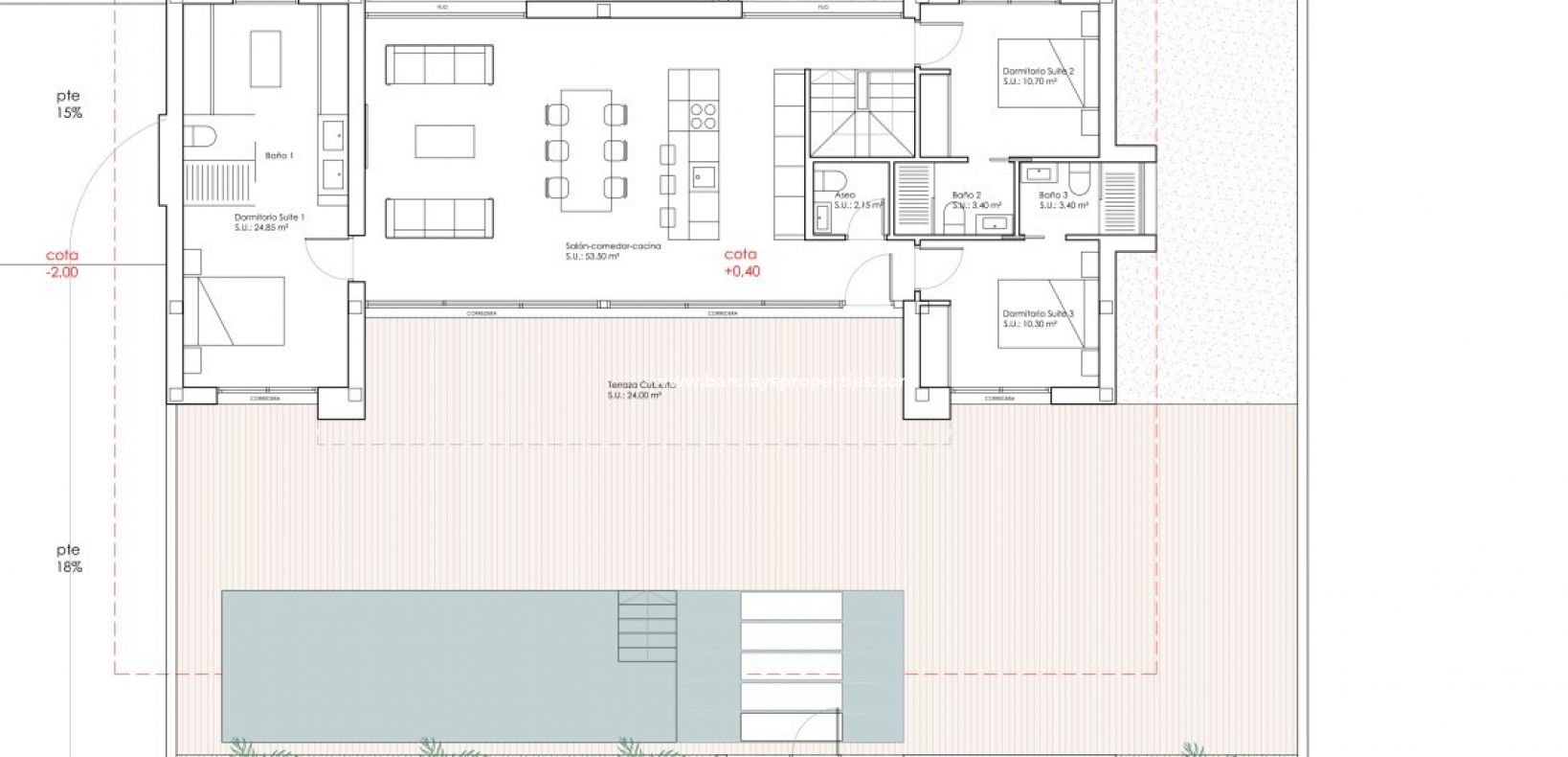 De villa's bieden royale zwembaden van 7x3m, met verschillende modellen om uit te kiezen, die ofwel op een niveau of twee niveaus.