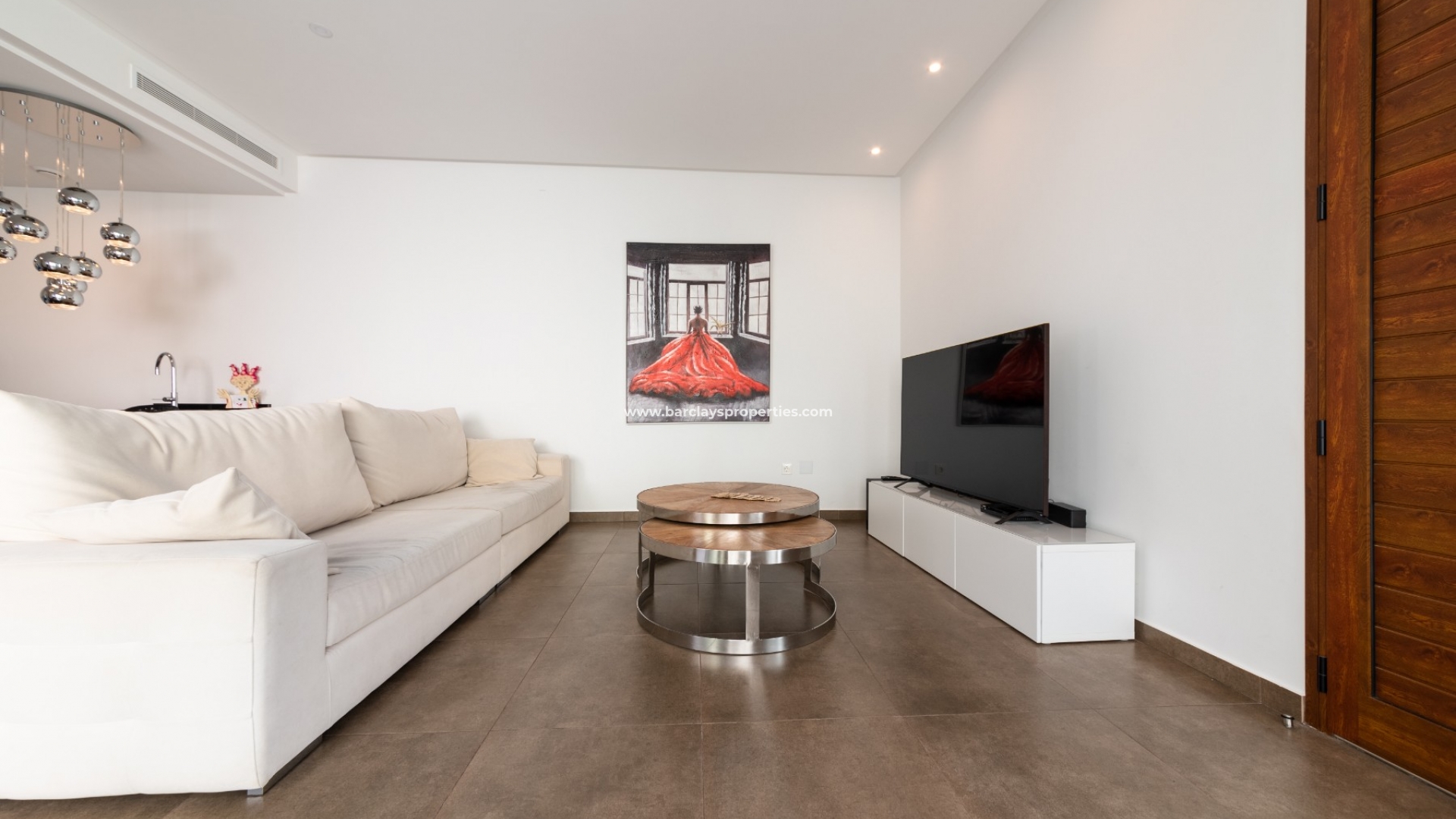Deze prachtige op het zuiden gelegen villa met monocap afwerking heeft vele speciale functies, zoals geïntegreerde airconditioning, elektrische rolluiken, beveiligde toegangssysteem, opslagfaciliteiten, enz. en wordt gedeeltelijk gemeubileerd aangeboden.