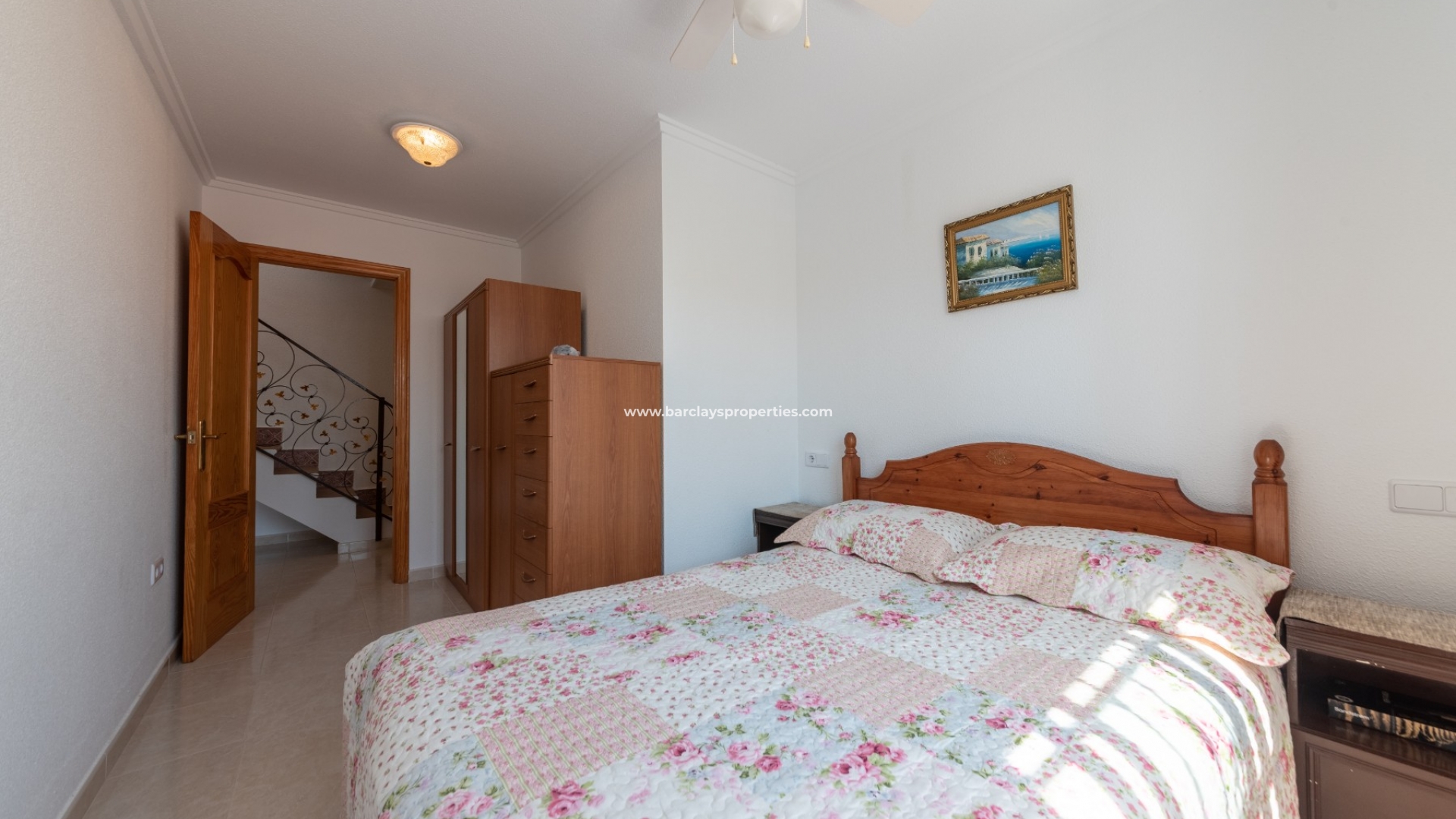 Een elegant vormgegeven trap brengt ons naar de volgende verdieping, waar zich twee ruime slaapkamers bevinden en een volledig ingerichte badkamer met een hoekdouche. Op de volgende verdieping vinden we een grote berging/bijkeuken en toegang tot het privé zonneterras met panoramisch uitzicht dat helemaal tot aan de zee reikt. Het is een spectaculaire plek om te chillen in de zon met een koud drankje en het krijgen van die felbegeerde zongebruinde kleur!