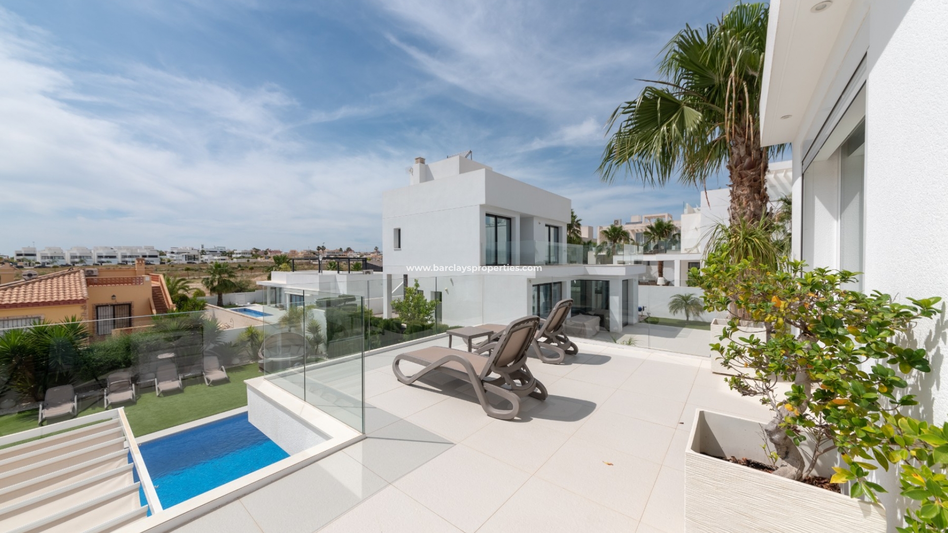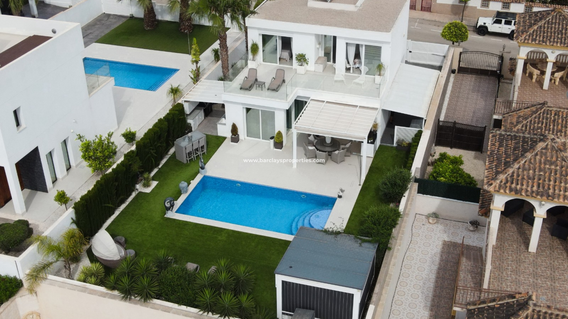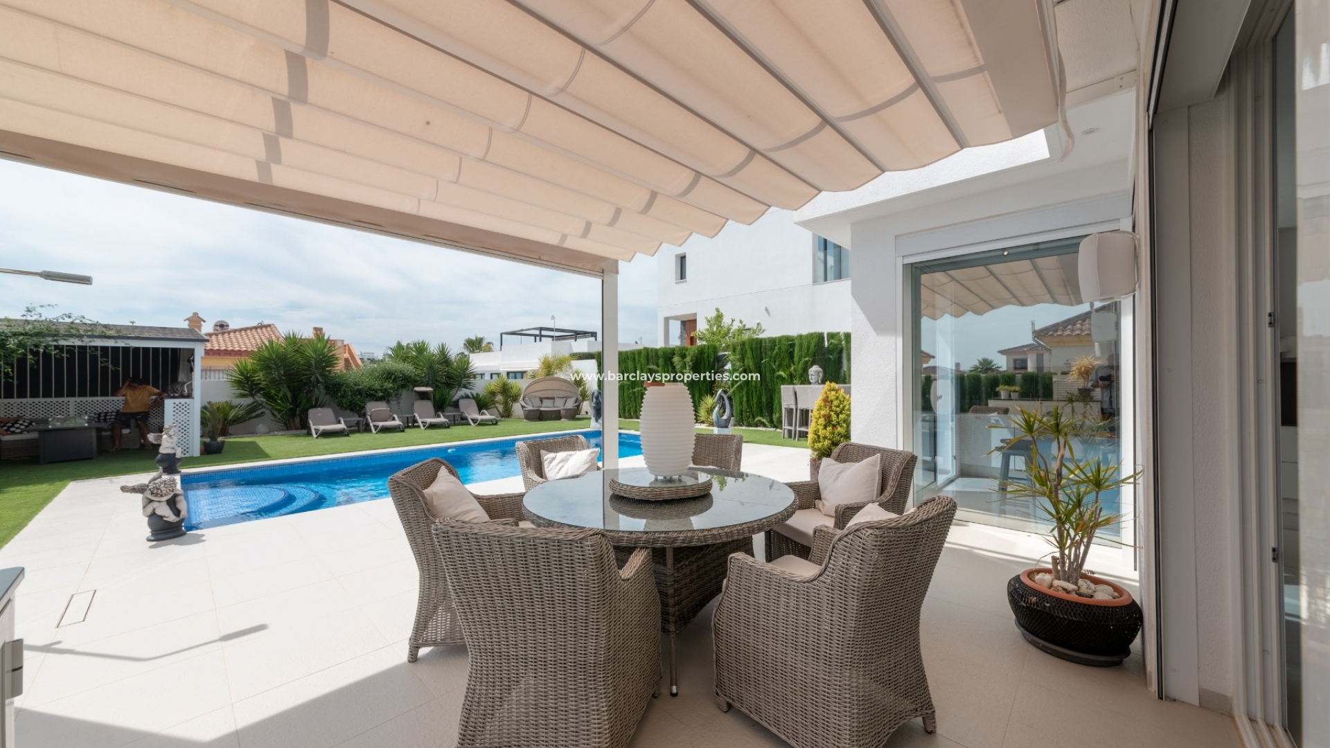 Met trots presenteren wij deze prachtige "nieuw gebouwde" vrijstaande villa met 8 x 4 prive zwembad gelegen op een rustige locatie van de populaire urbanisatie La Marina, op slechts 10 minuten lopen naar het dichtstbijzijnde commerciële gebied waar men kan een supermarkt, winkels, opticiens, dierenartsen, apotheek, een dokterspraktijk en een fantastische keuze aan tapas bars, cafes en restaurants te vinden.