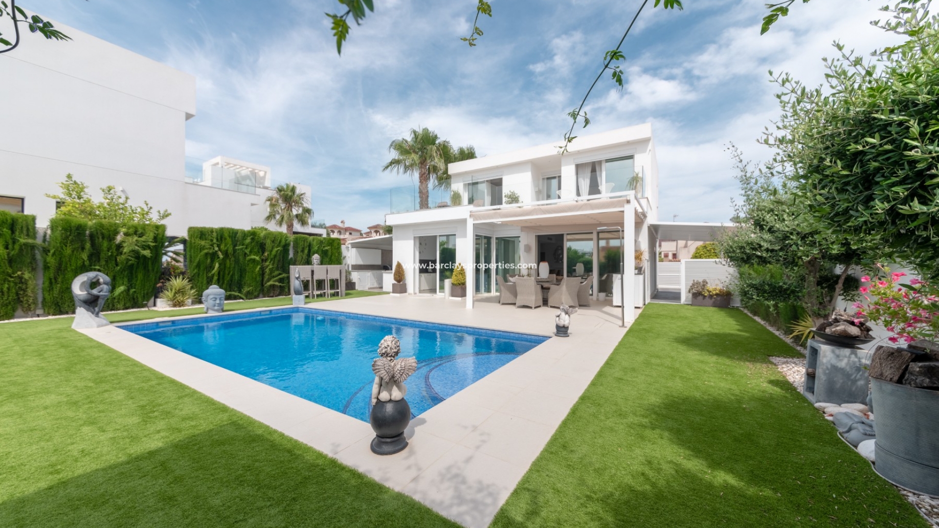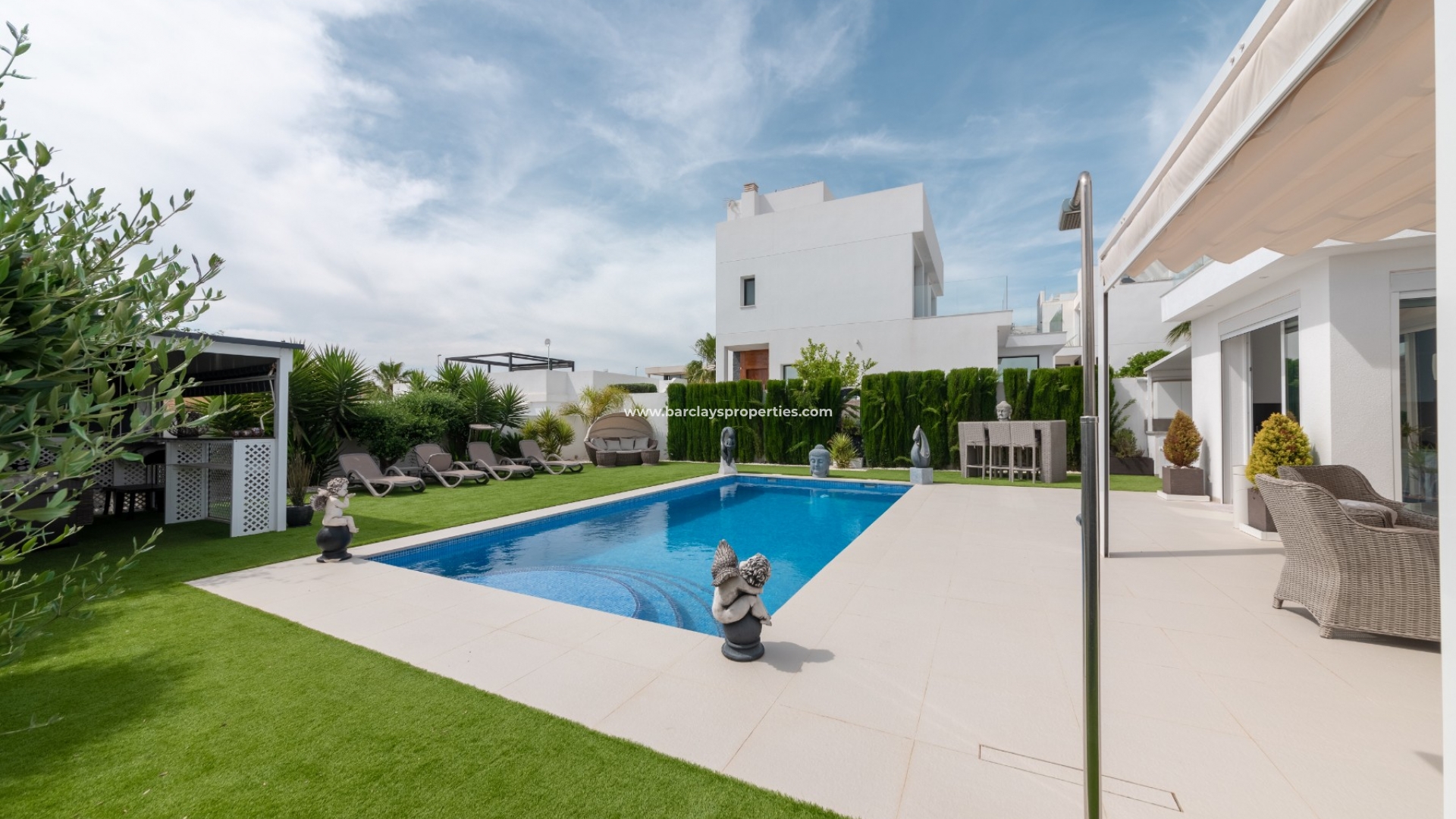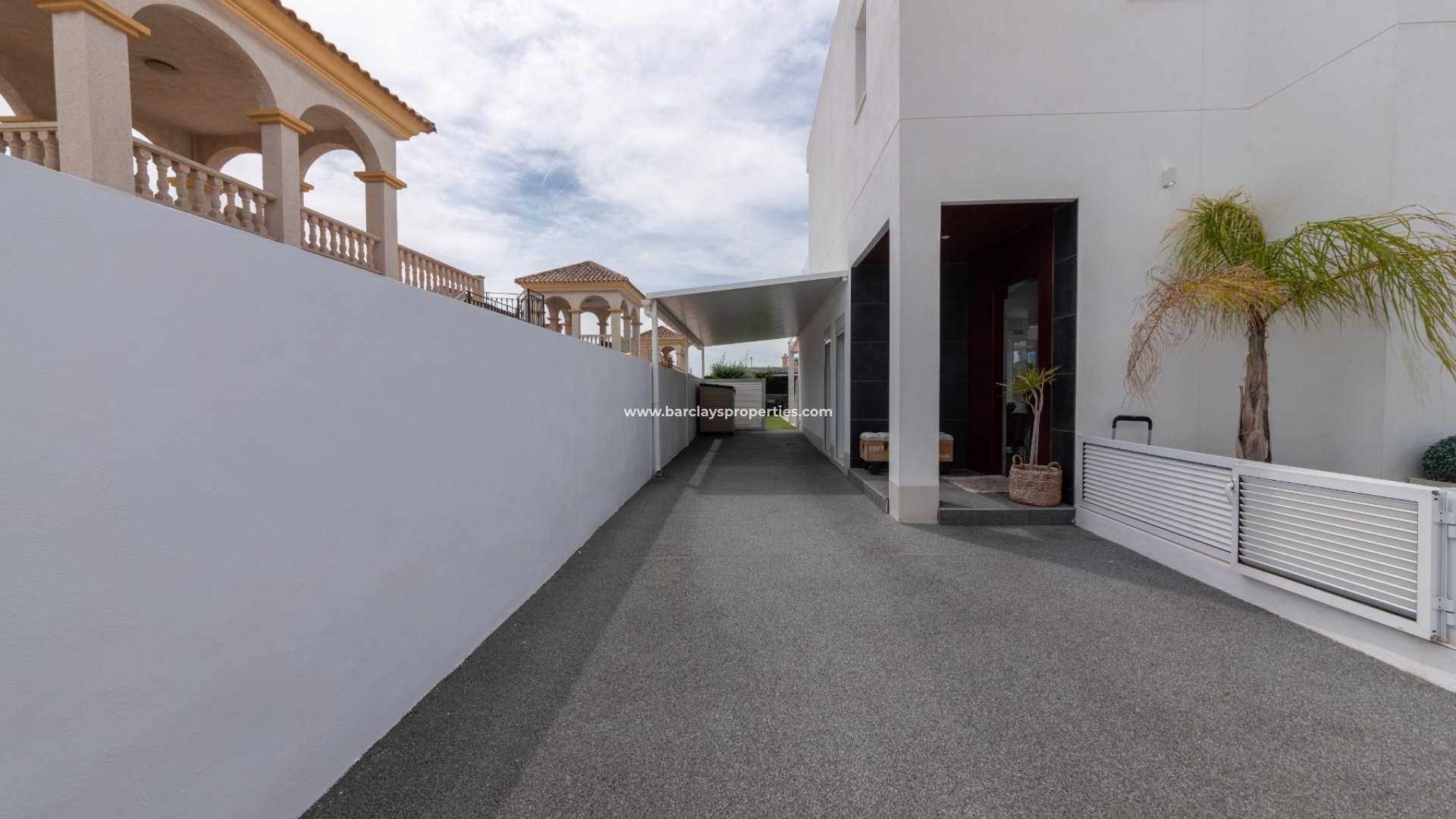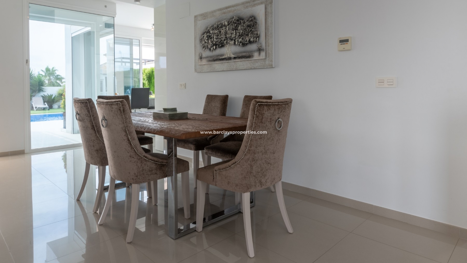 Met trots presenteren wij deze prachtige "nieuw gebouwde" vrijstaande villa met 8 x 4 prive zwembad gelegen op een rustige locatie van de populaire urbanisatie La Marina, op slechts 10 minuten lopen naar het dichtstbijzijnde commerciële gebied waar men kan een supermarkt, winkels, opticiens, dierenartsen, apotheek, een dokterspraktijk en een fantastische keuze aan tapas bars, cafes en restaurants te vinden.