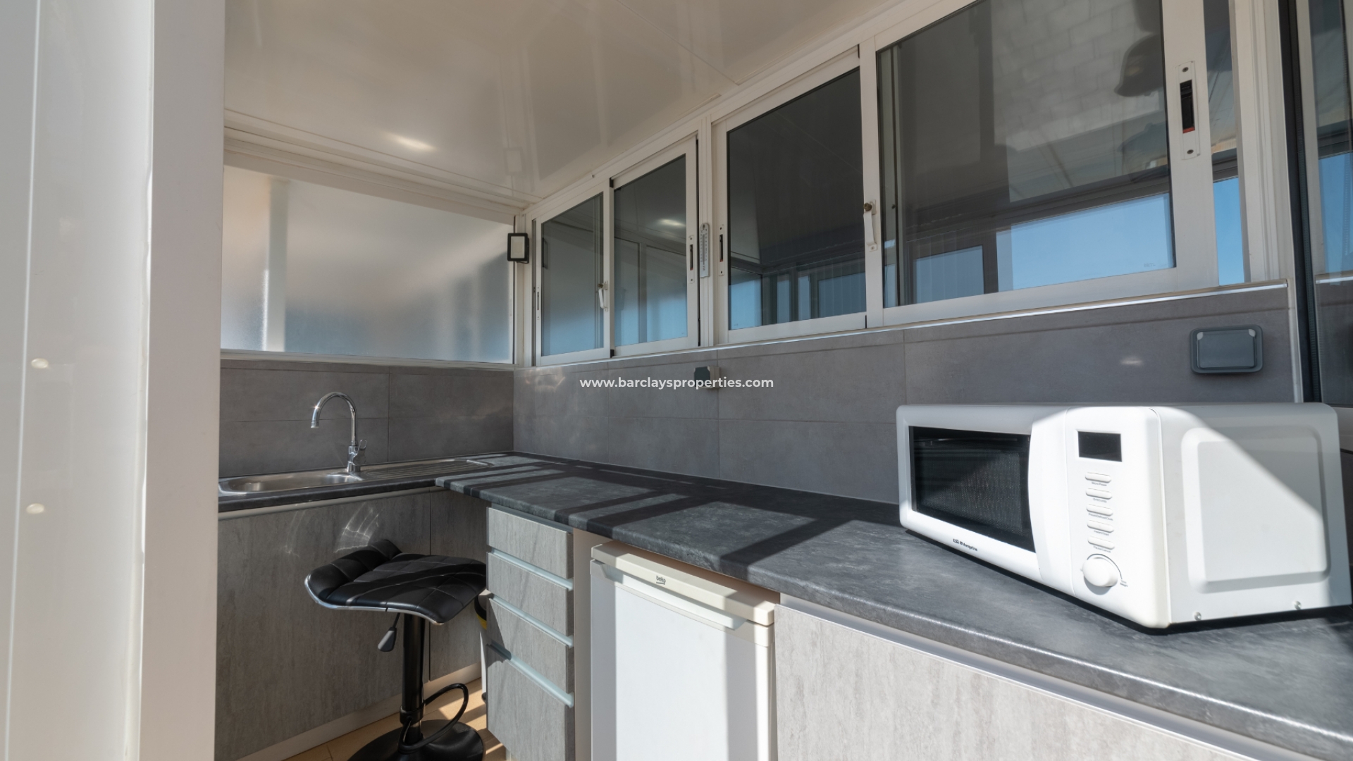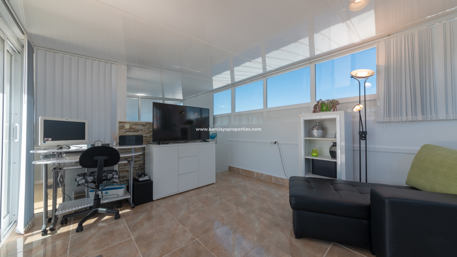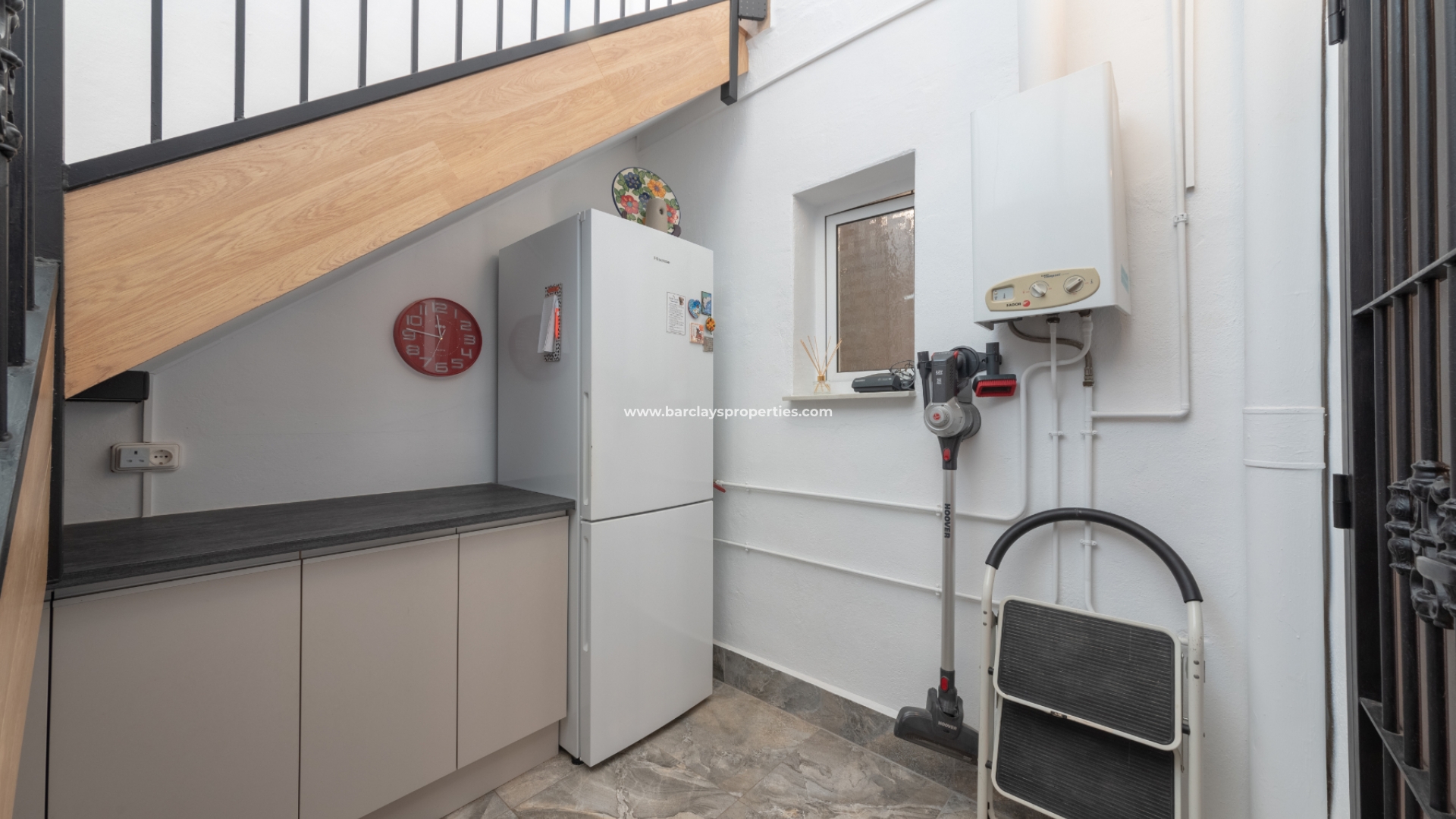 Gelegen op slechts 10 minuten lopen naar het populaire "Consum Square" commerciële centrum waar men supermarkten, winkels, een bank, een hond trimsalon, opticiens, postkantoor, krantenwinkel, fysio therapeut en een scala aan bars en restaurants te vinden. Op slechts enkele minuten afstand bevinden zich sportfaciliteiten, waaronder tennis-, padel- en voetbalvelden. De woning ligt op slechts 5 minuten afstand van het met de blauwe vlag bekroonde strand van het dorp La Marina en op 25 minuten afstand van de luchthaven van Alicante.