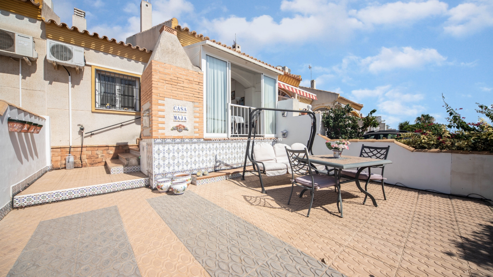 Gelegen in een kleine rustige gemeenschap bekend als "Monte Victoria urbanisatie" deze ruime zuid-westen gelegen geschakelde woning bevindt zich zeer dicht bij alle voorzieningen binnen Urbanisatie La Marina aan de Costa Blanca. In een toplocatie op Urb La Marina en met toegang tot een gemeenschappelijk zwembad met kinderbad, exterieur douches en zithoeken deze charmante geschakelde villa heeft zo veel te bieden. De blauwe vlag bekroond strand van La Marina Village ligt op slechts 5 minuten met de auto en de dichtstbijzijnde luchthaven Alicante-Elche is n slechts 25 minuten langs de kustweg.