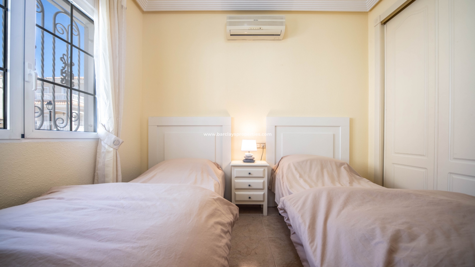 Deze charmante woning heeft airconditioning in de woonkamer en in alle slaapkamers, die ook ingebouwde kasten hebben. Het wordt volledig gemeubileerd verkocht, waardoor het een uitstekend verhuurpotentieel heeft.