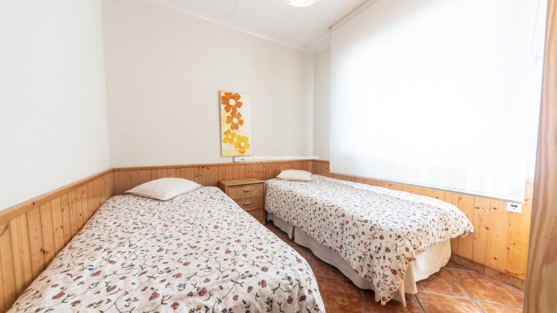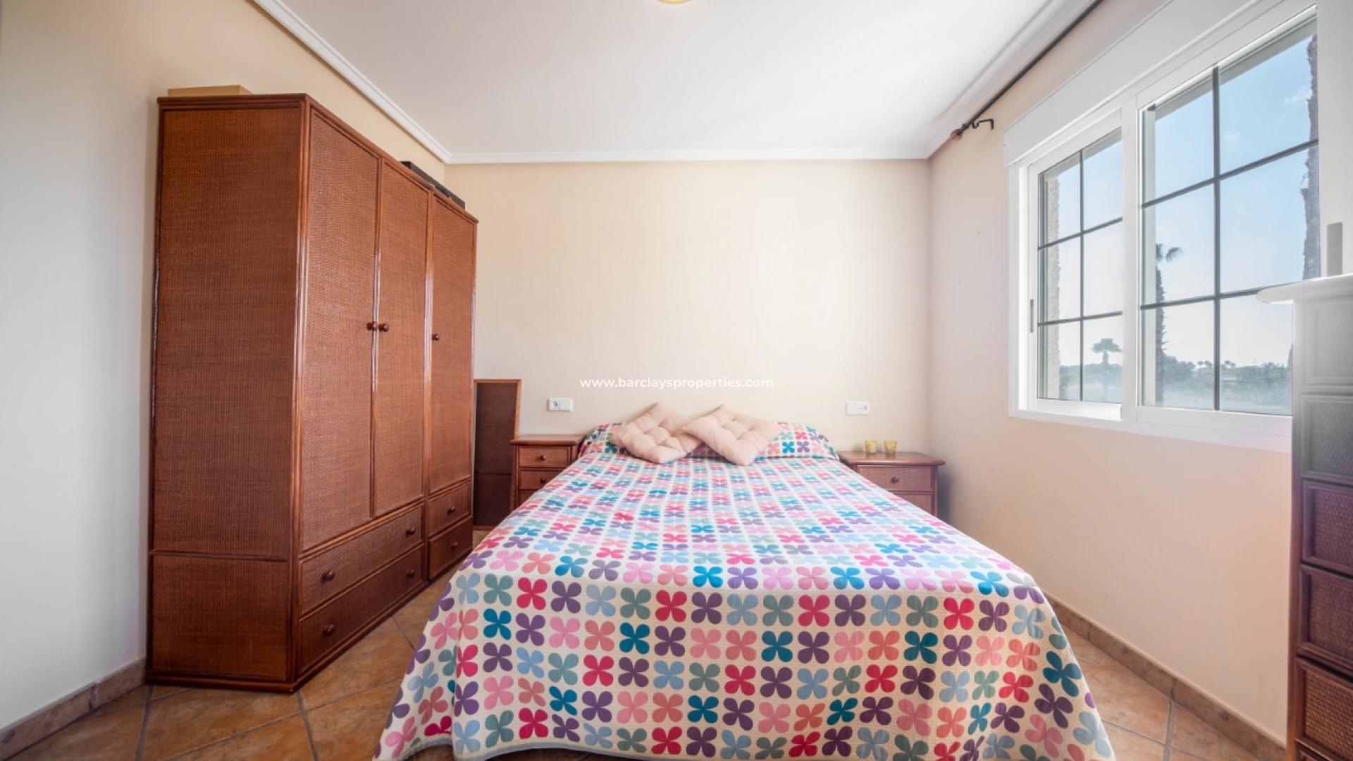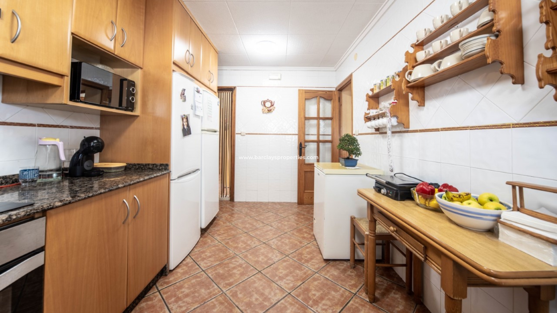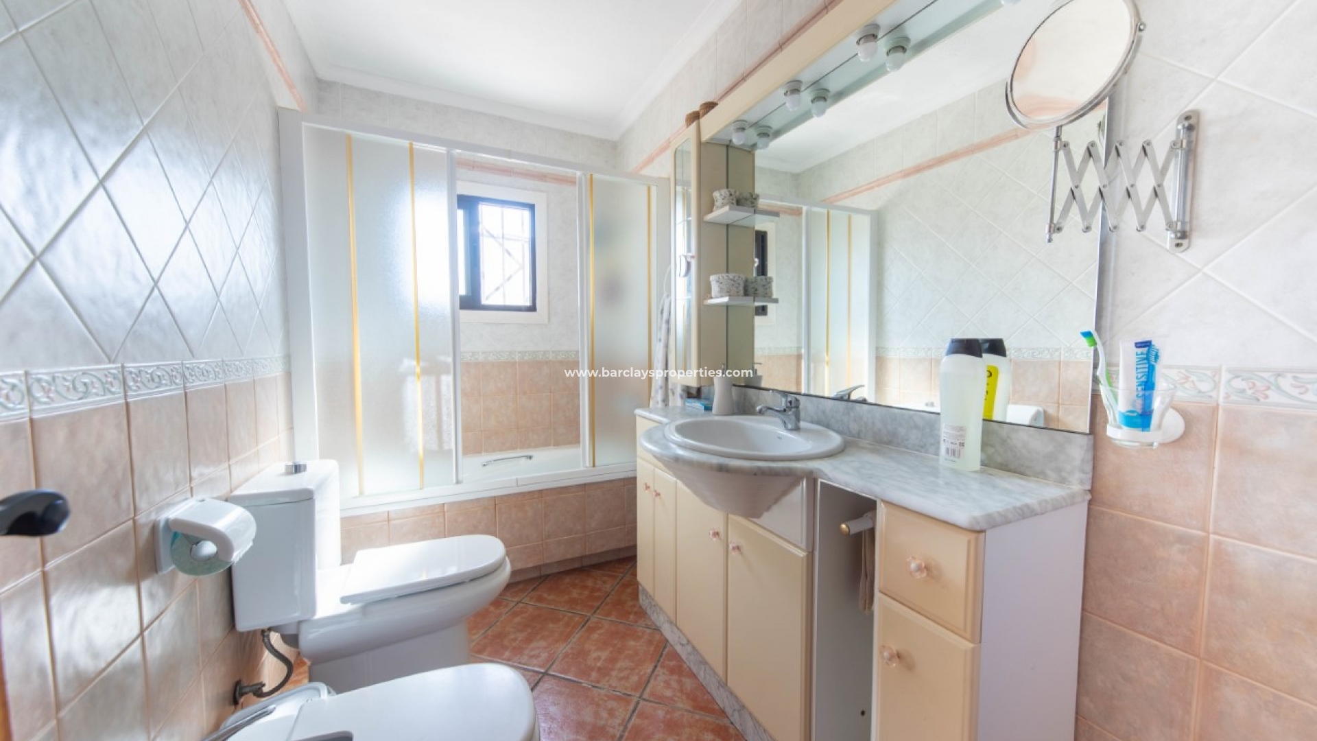 We komen de villa binnen via een ruime veranda met grote glazen deuren die veel natuurlijk licht binnenlaten. Vanaf hier hebben we toegang tot een grote woonkamer met een traditionele landelijke inrichting. Grenzend aan de zitkamer bevinden zich twee tweepersoonsslaapkamers, beide met grote ramen aan de buitenkant. Aan het eind van de zitkamer is een grote boog die ons naar een eetkamer brengt, van hieruit hebben we toegang tot een derde slaapkamer met een ingebouwde kledingkast, een badkamer met een groot marmeren badmeubel en een groot bad, samen met een ruime keuken, die wordt verkocht met alle elektrische apparaten. De keuken heeft ook toegang tot een bijkeuken met een buitendeur naar buiten, evenals een badkamer met een hoekdouche.