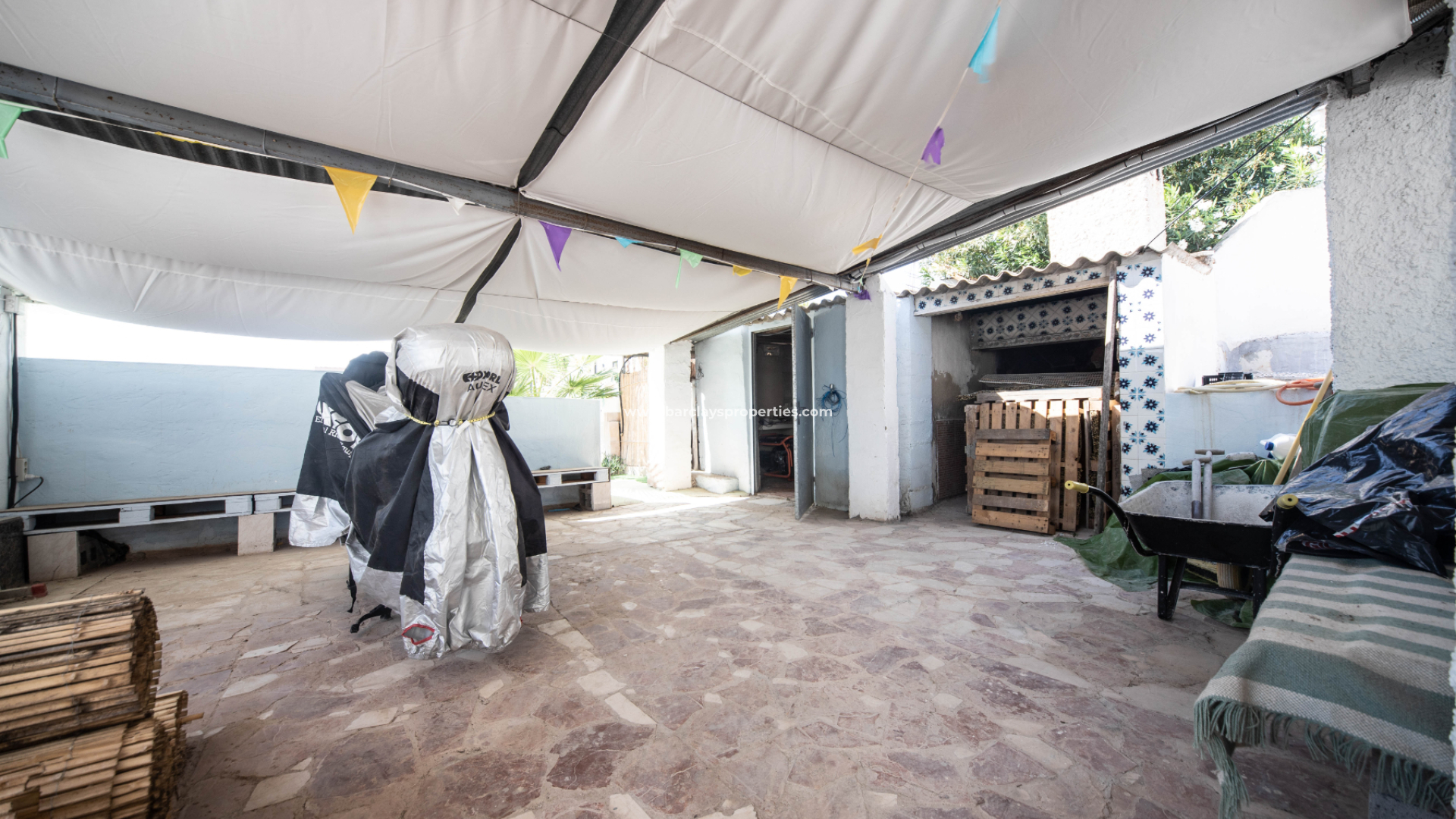 Dit unieke perceel herbergt drie ruime woningen voor gastenverblijf of verhuur. Het grote terrein biedt ruimte voor campers of caravans, evenals verschillende voertuigen, de lange oprit leidt naar drie carports waardoor overdekte parkeerplaats voor een paar voertuigen. De ligging is perfect aan de rand van de urbanisatie El Oasis op slechts 2 minuten lopen van alle voorzieningen en een fantastische keuze aan bars, cafés en restaurants voor ieders smaak. Bovendien zijn de lokale zandstranden van La Marina Village op slechts 5 minuten rijden met de auto en de luchthaven van Alicante ligt op slechts 25 minuten langs de kustweg.