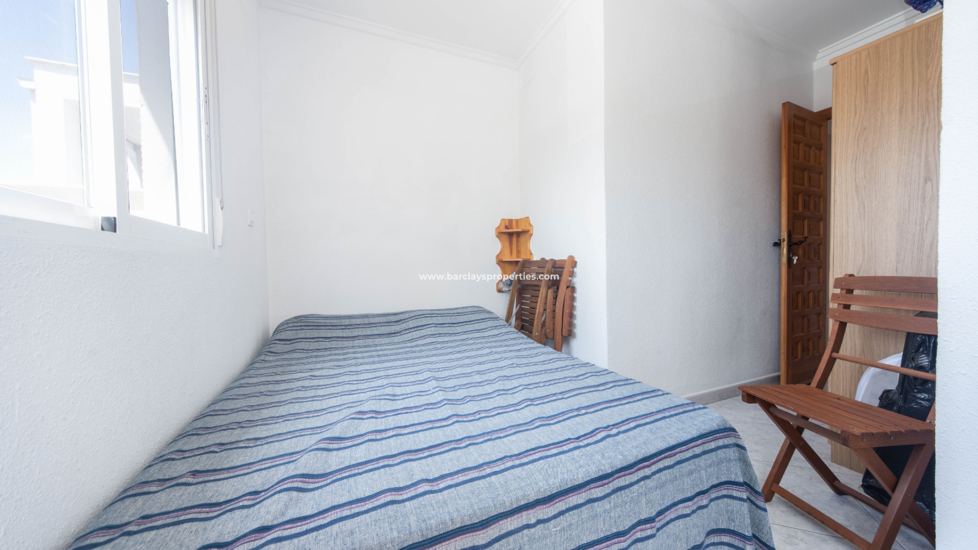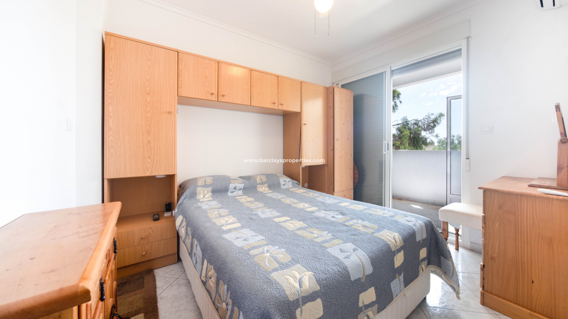 Een trap leidt naar de eerste verdieping waar zich twee tweepersoons slaapkamers bevinden met plafondventilatoren en de grootste van de twee kamers heeft airconditioning. Er is toegang tot een overdekt terras vanuit beide slaapkamers waar men kan genieten van een kopje koffie in de ochtend of een glas wijn van een avond kijken naar de zonsondergang over de bergen naar Orihuela.