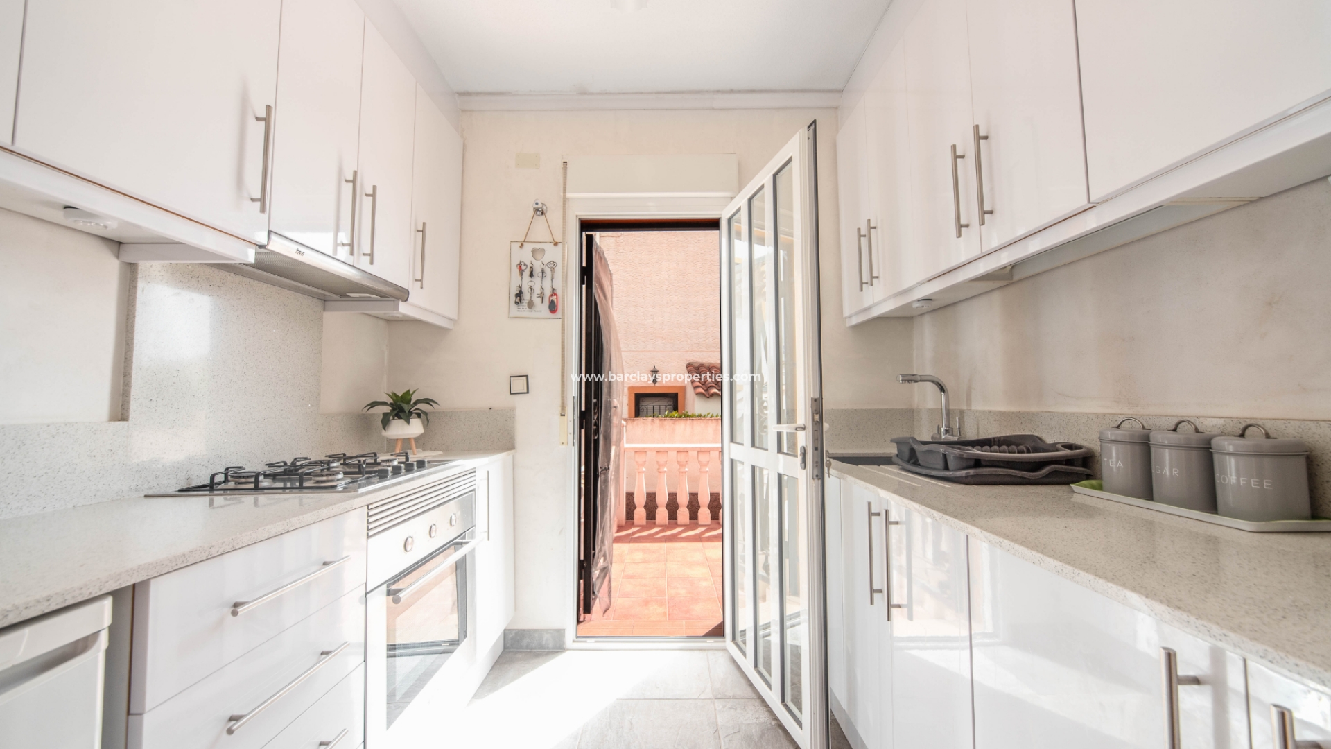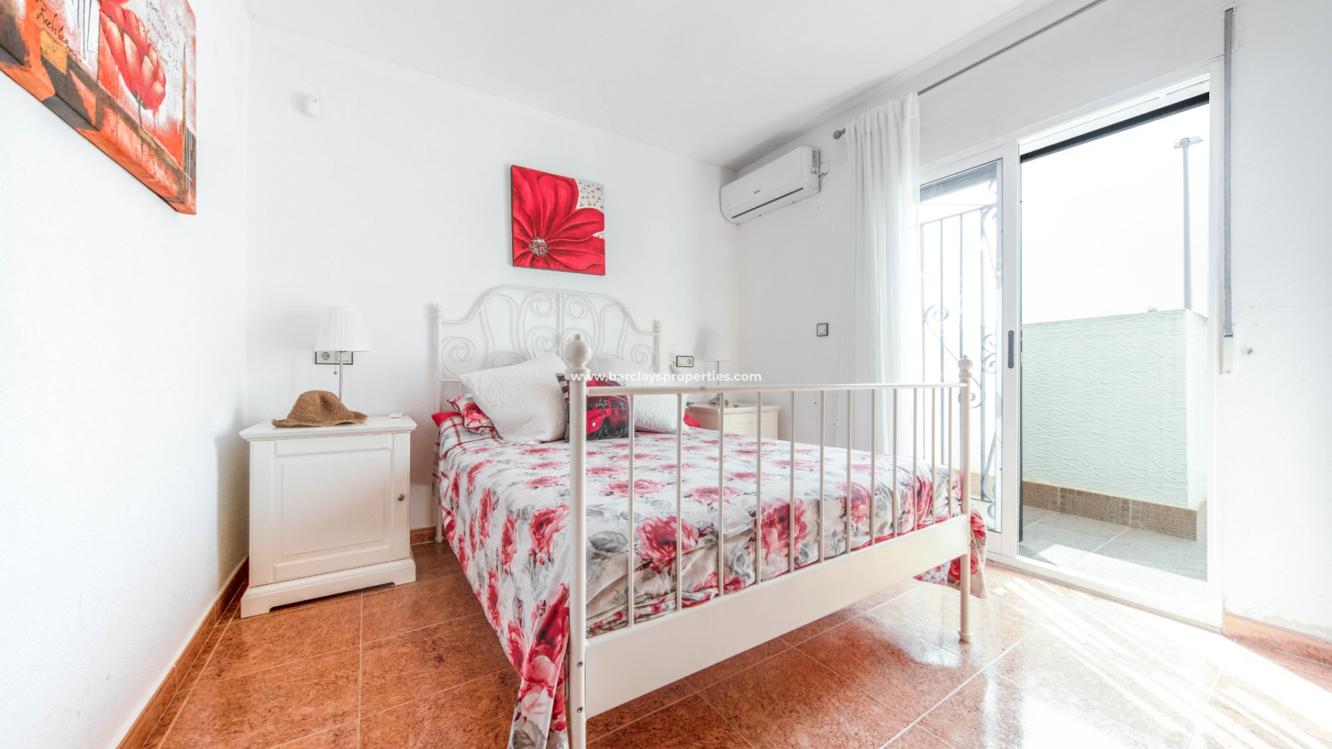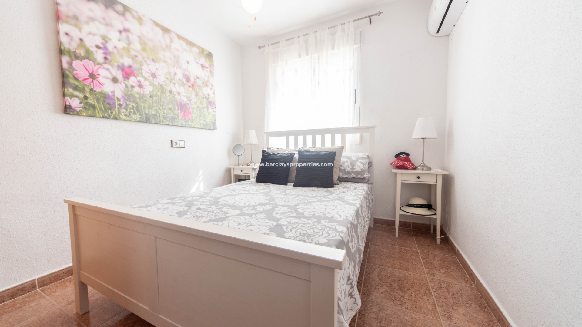 Een trap leidt ons naar het terras dat gedeeltelijk overdekt en gedeeltelijk open is en ons naar het interieur van het huis brengt waar we worden verwelkomd door een lichte en luchtige woonkamer met eethoek en voorzien van airconditioning. Vanaf hier vinden we de onafhankelijke nieuw ingerichte keuken met gasboiler en een toegangsdeur naar een zonneterras met trap naar beneden naar de tuin. Een tweepersoonsslaapkamer met airconditioning, plafondventilator en inbouwkasten en een badkamer met inloopdouche zijn ook te vinden op de begane grond.