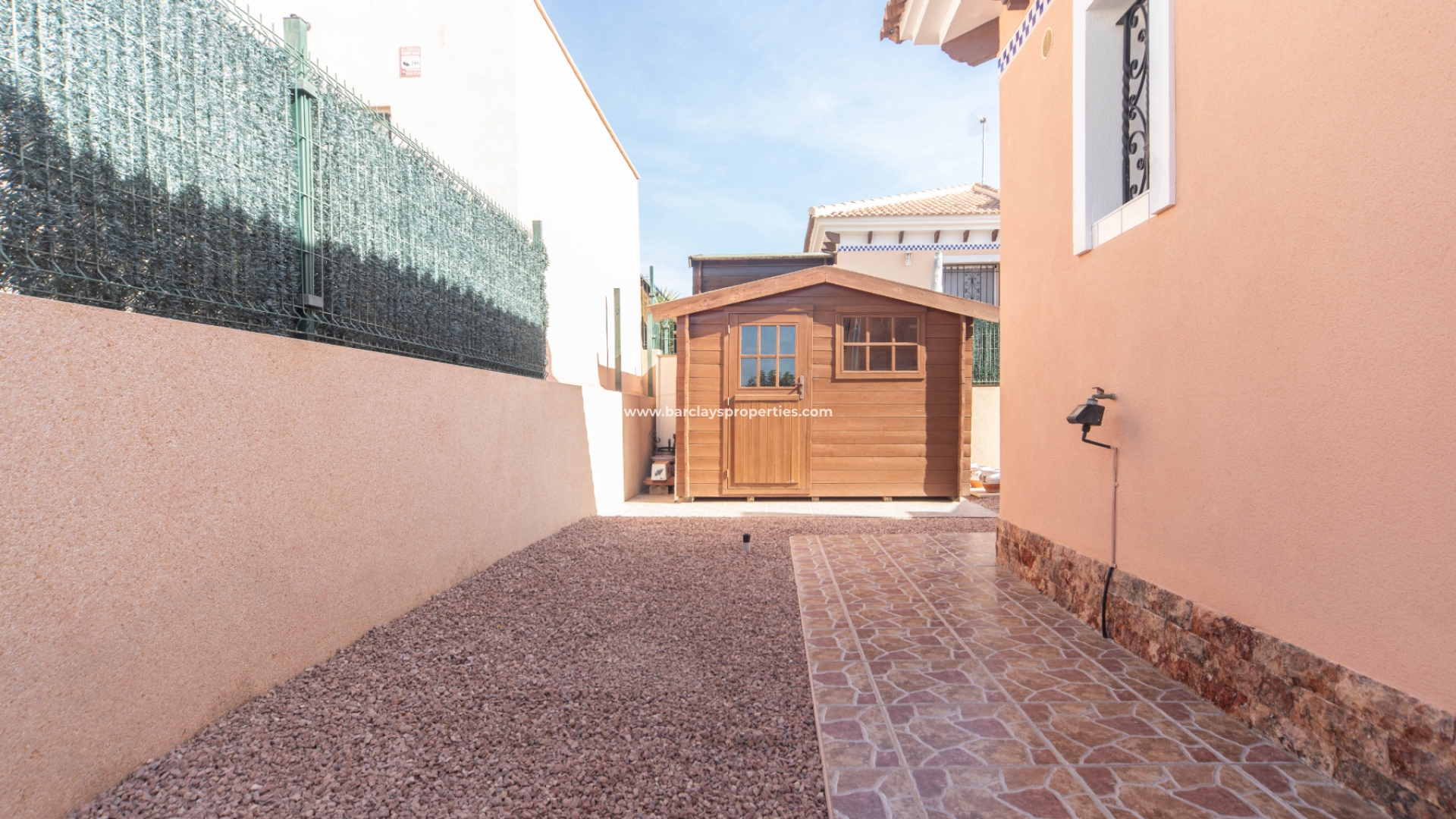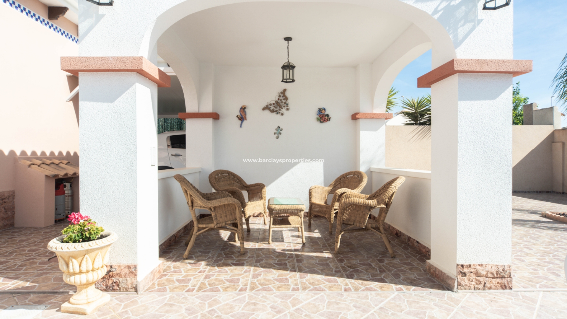 Deze op het zuiden gelegen villa is toegankelijk via een elektrische poort met een intercom beveiligingssysteem waar we een prive 8 x 4 zwembad en buitendouche met ligweiden binnen de verharde tuinen die onberispelijk zijn het aanbieden van een carport, een gebouwde gazebo, een schuur / "man cave" met functie ramen en een gas en log dubbele barbecue met schaduwrijke dineren met zonwering.