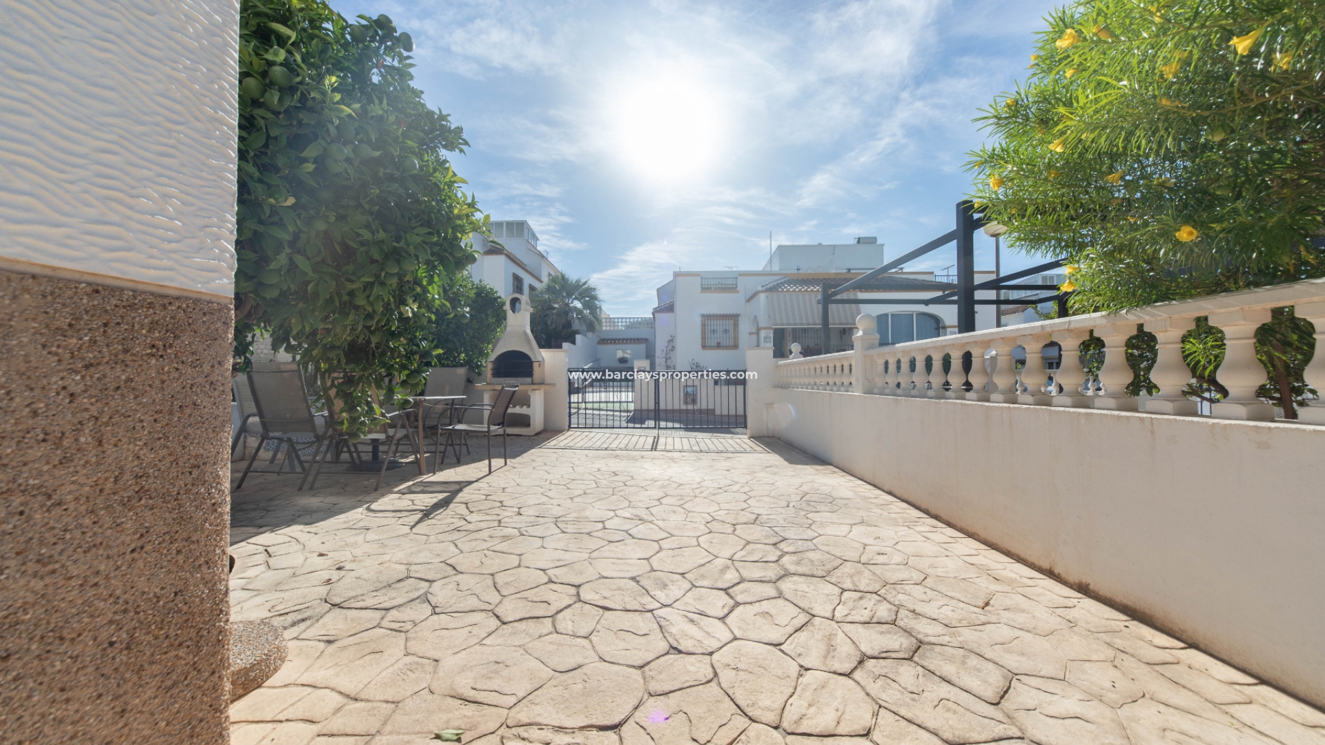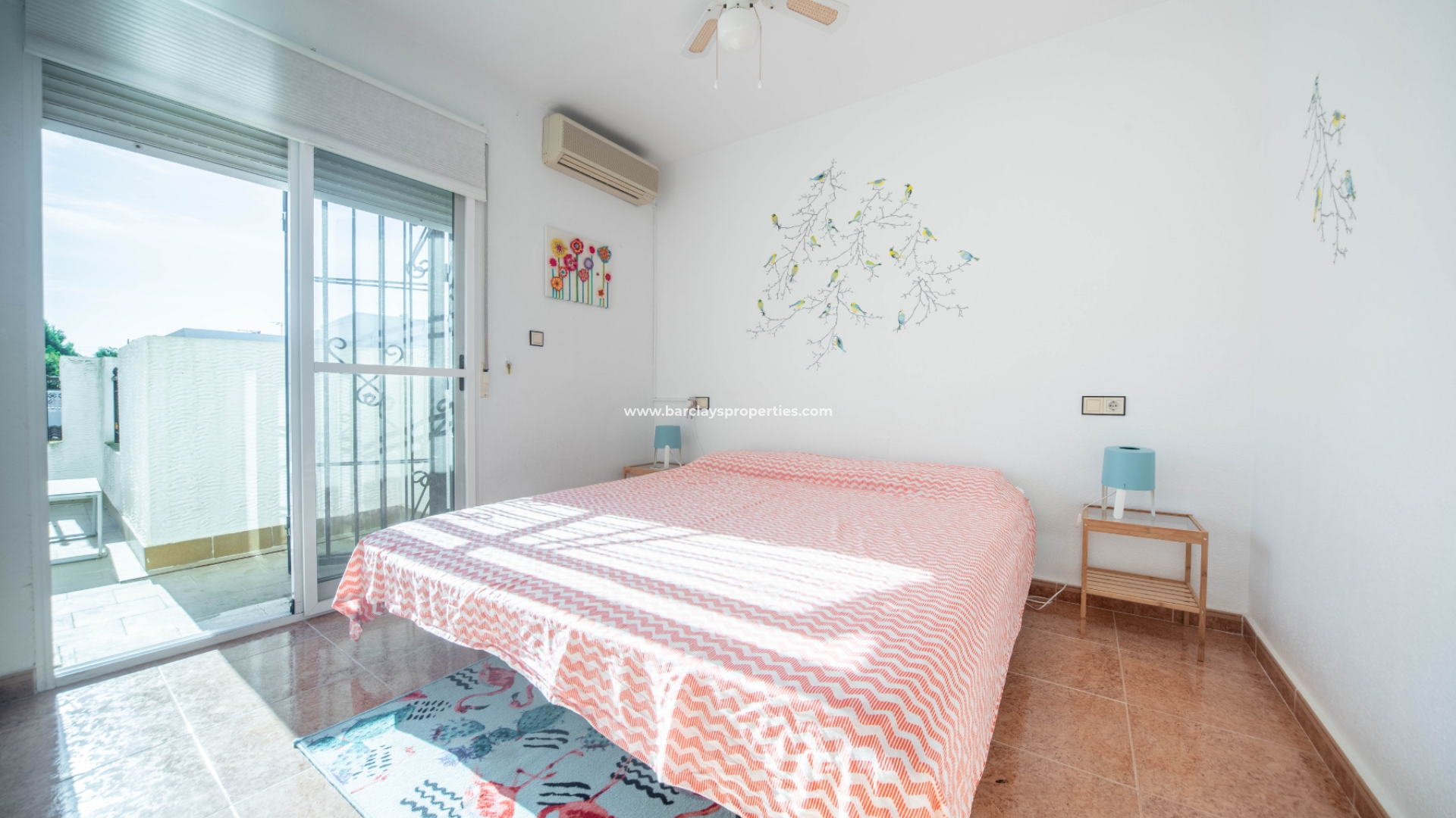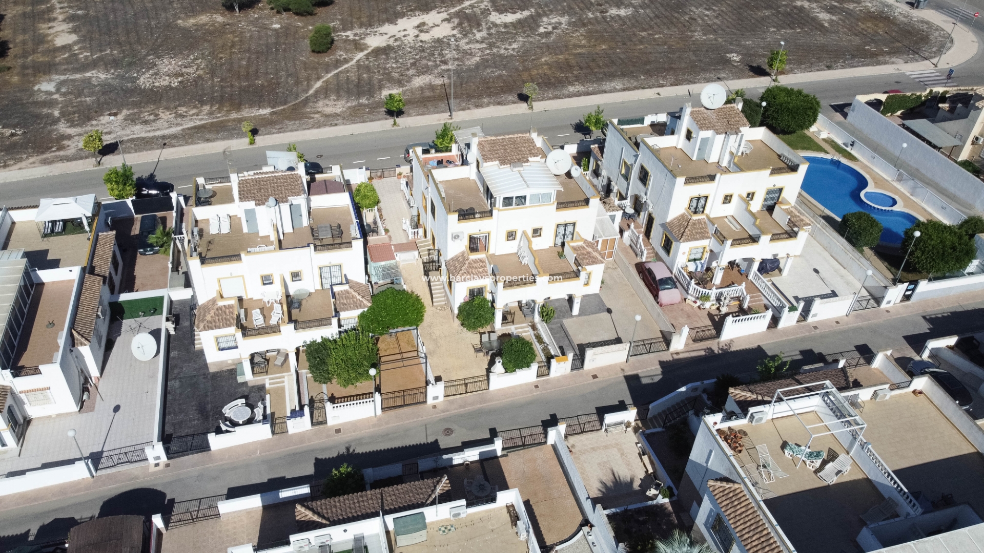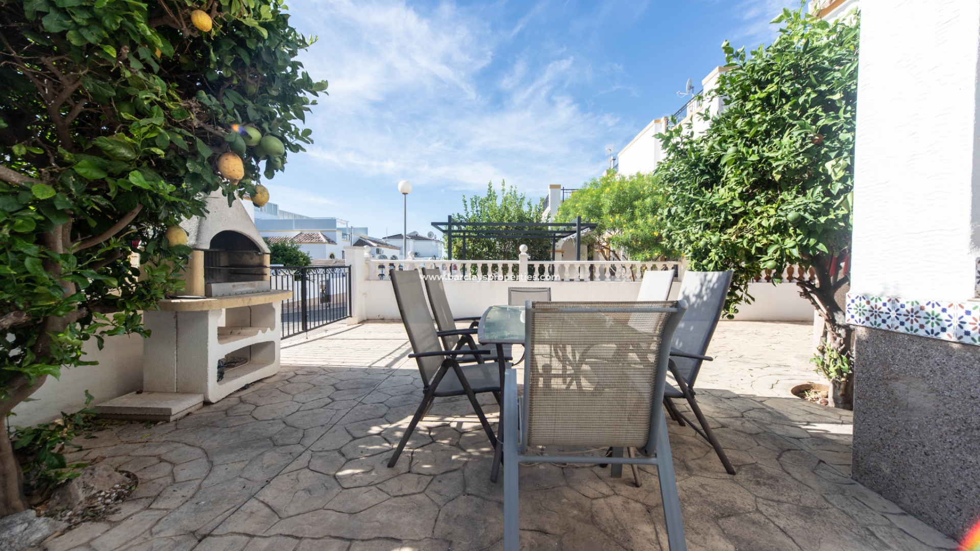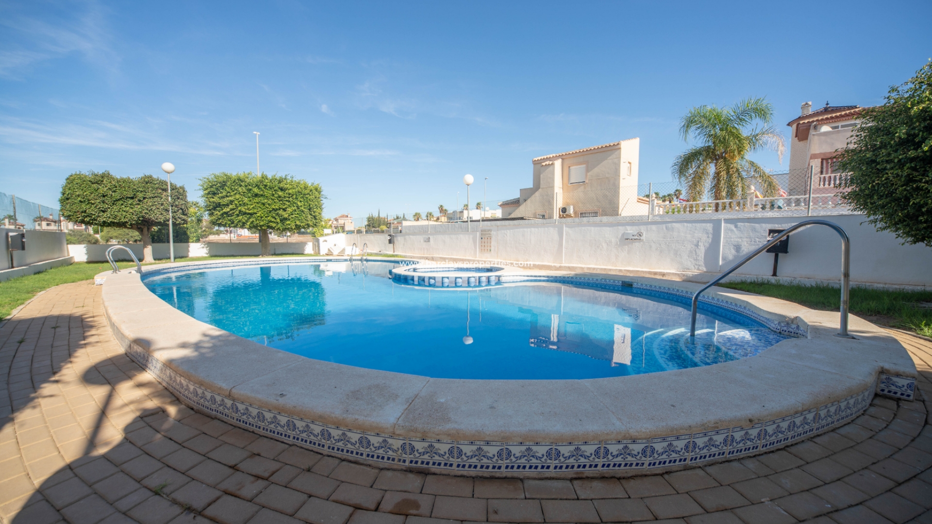 In een privé gemeenschap introduceren wij u dit populaire quad model, een "Isabel" die te koop staat in de urbanisatie La Marina, San Fulgencio. Deze charmante villa heeft toegang tot een goed onderhouden gemeenschappelijk zwembad met gras en verharde gebieden met grote bomen voor schaduw, buitendouches en een kinderzwembad. Voor degenen die het strand willen bezoeken, brengt een autorit van 5 minuten u naar het gouden strand van het dorp La Marina. Voor familie en vrienden is de dichtstbijzijnde luchthaven Alicante-Elche slechts 25 minuten rijden van het huis.