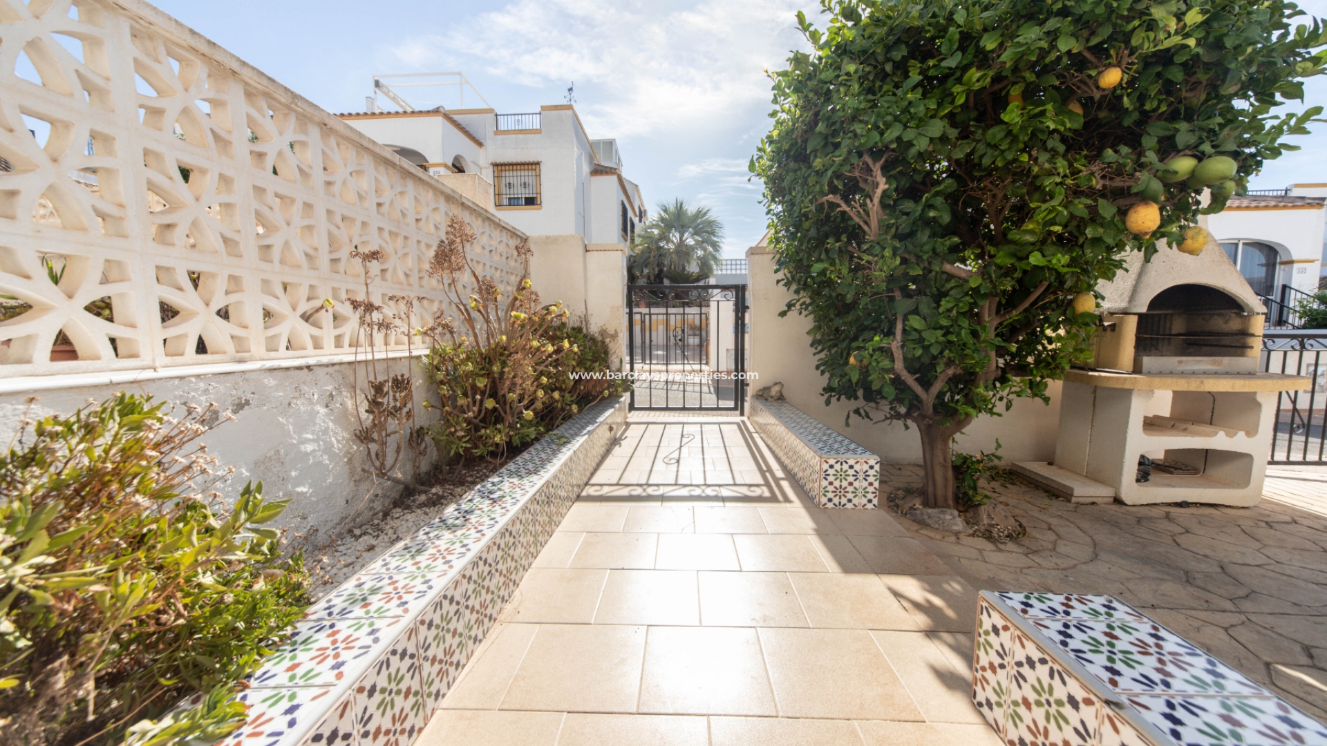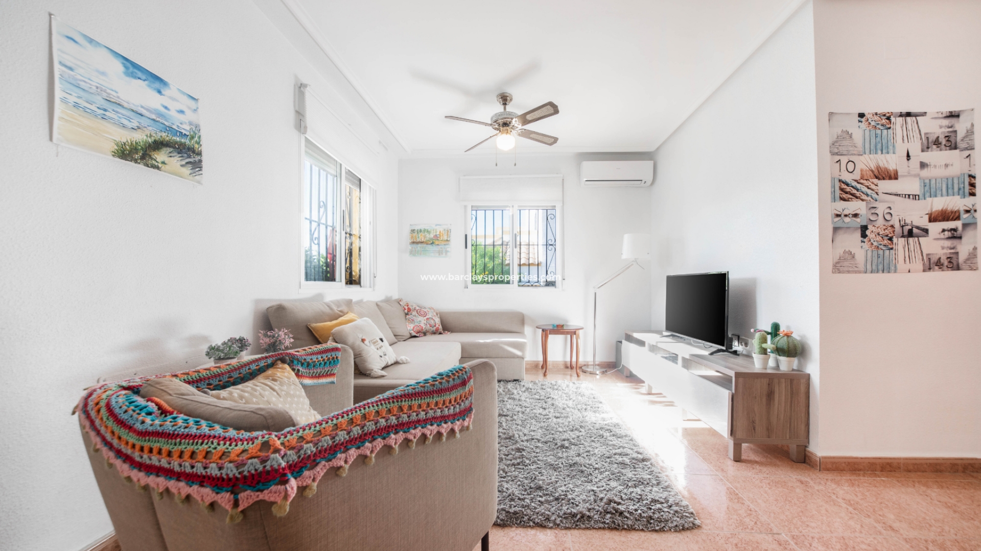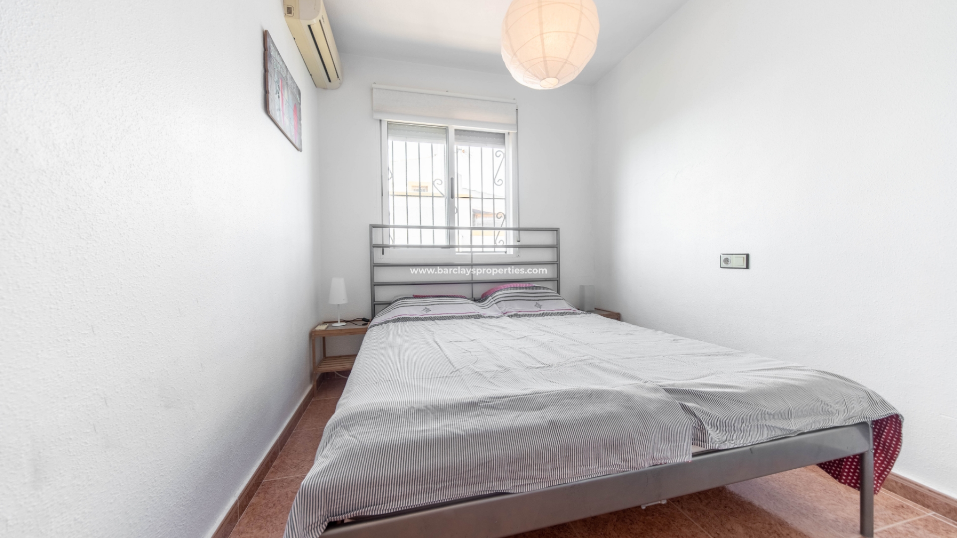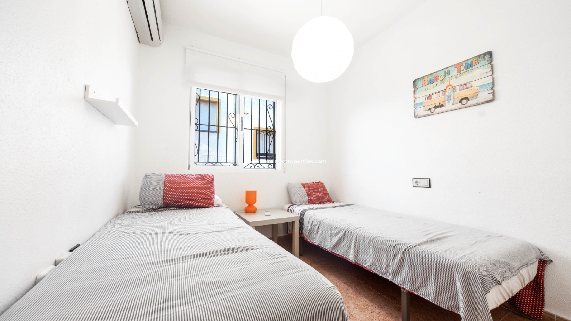 In een privé gemeenschap introduceren wij u dit populaire quad model, een "Isabel" die te koop staat in de urbanisatie La Marina, San Fulgencio. Deze charmante villa heeft toegang tot een goed onderhouden gemeenschappelijk zwembad met gras en verharde gebieden met grote bomen voor schaduw, buitendouches en een kinderzwembad. Voor degenen die het strand willen bezoeken, brengt een autorit van 5 minuten u naar het gouden strand van het dorp La Marina. Voor familie en vrienden is de dichtstbijzijnde luchthaven Alicante-Elche slechts 25 minuten rijden van het huis.