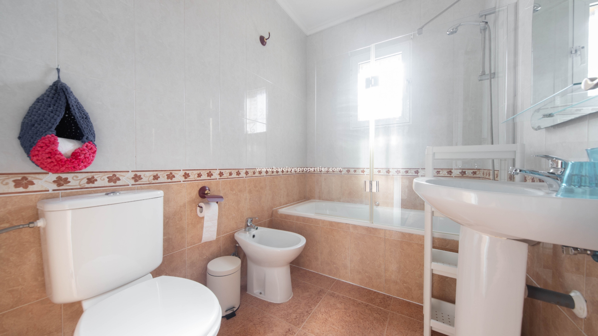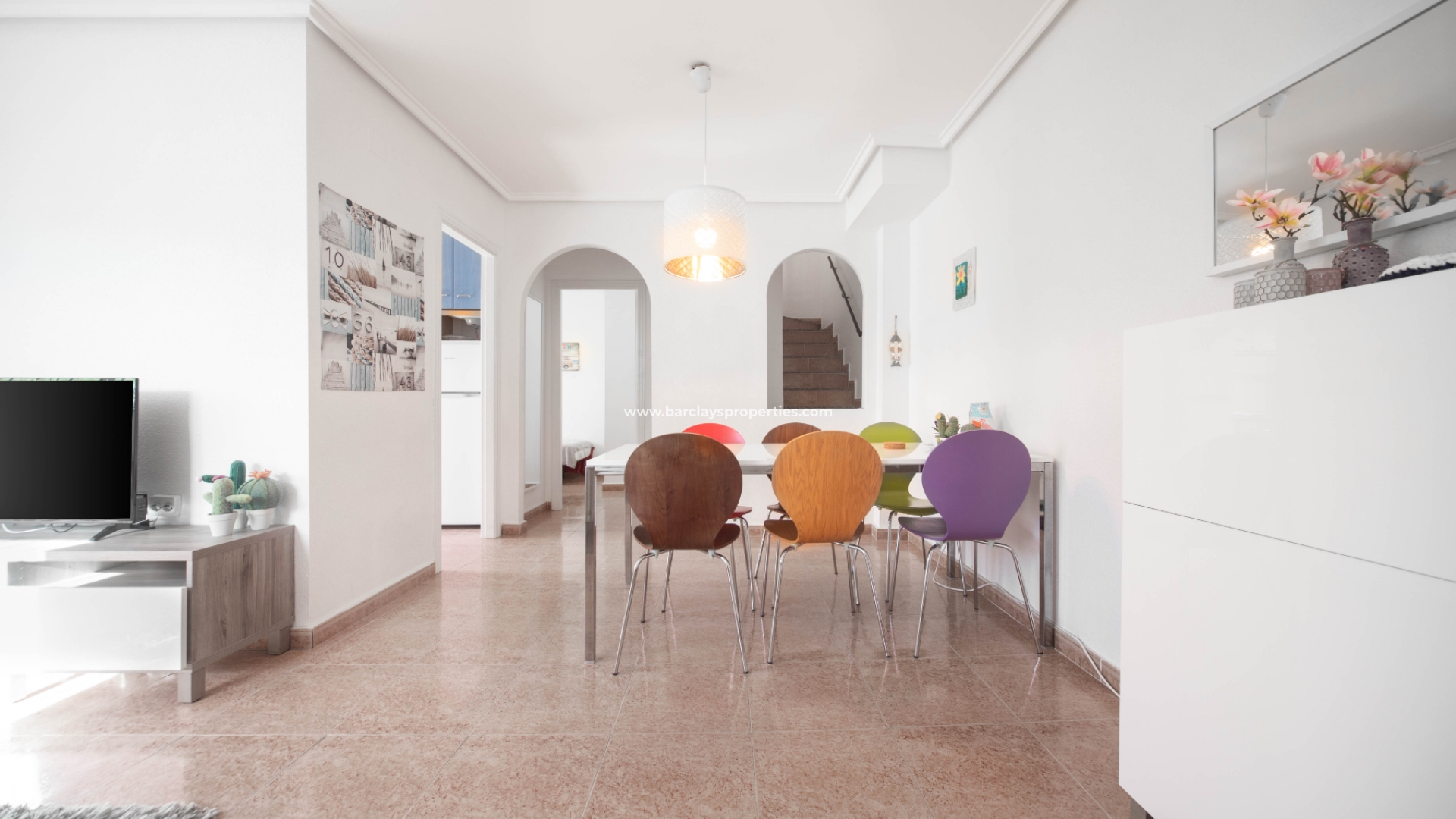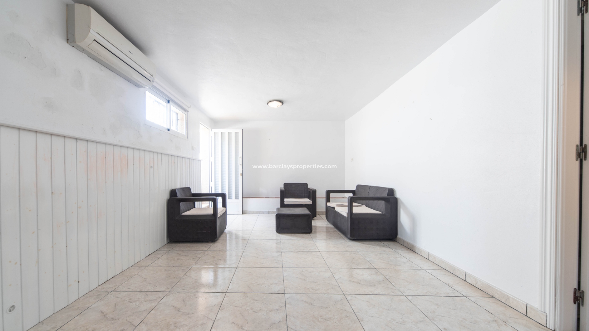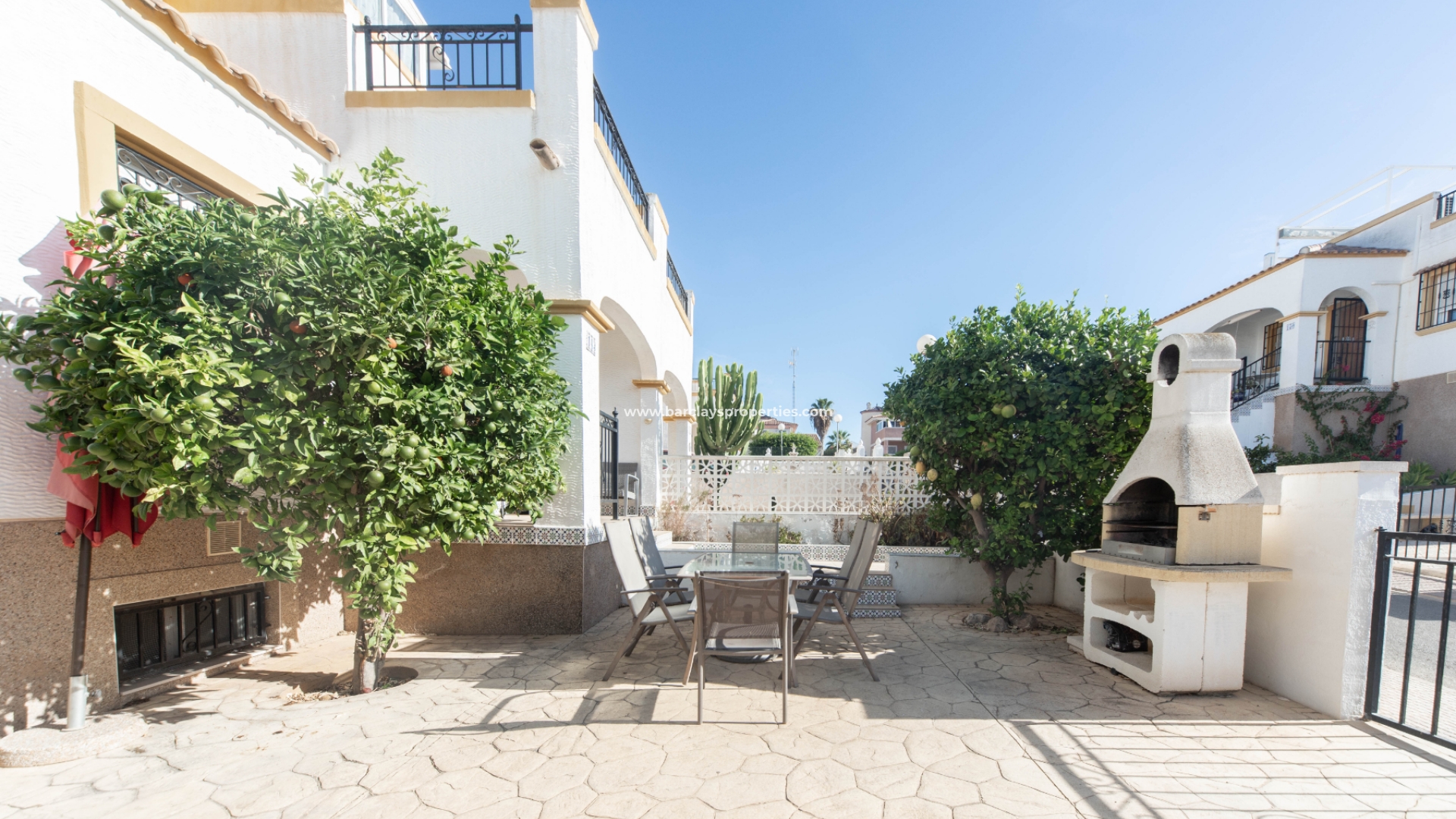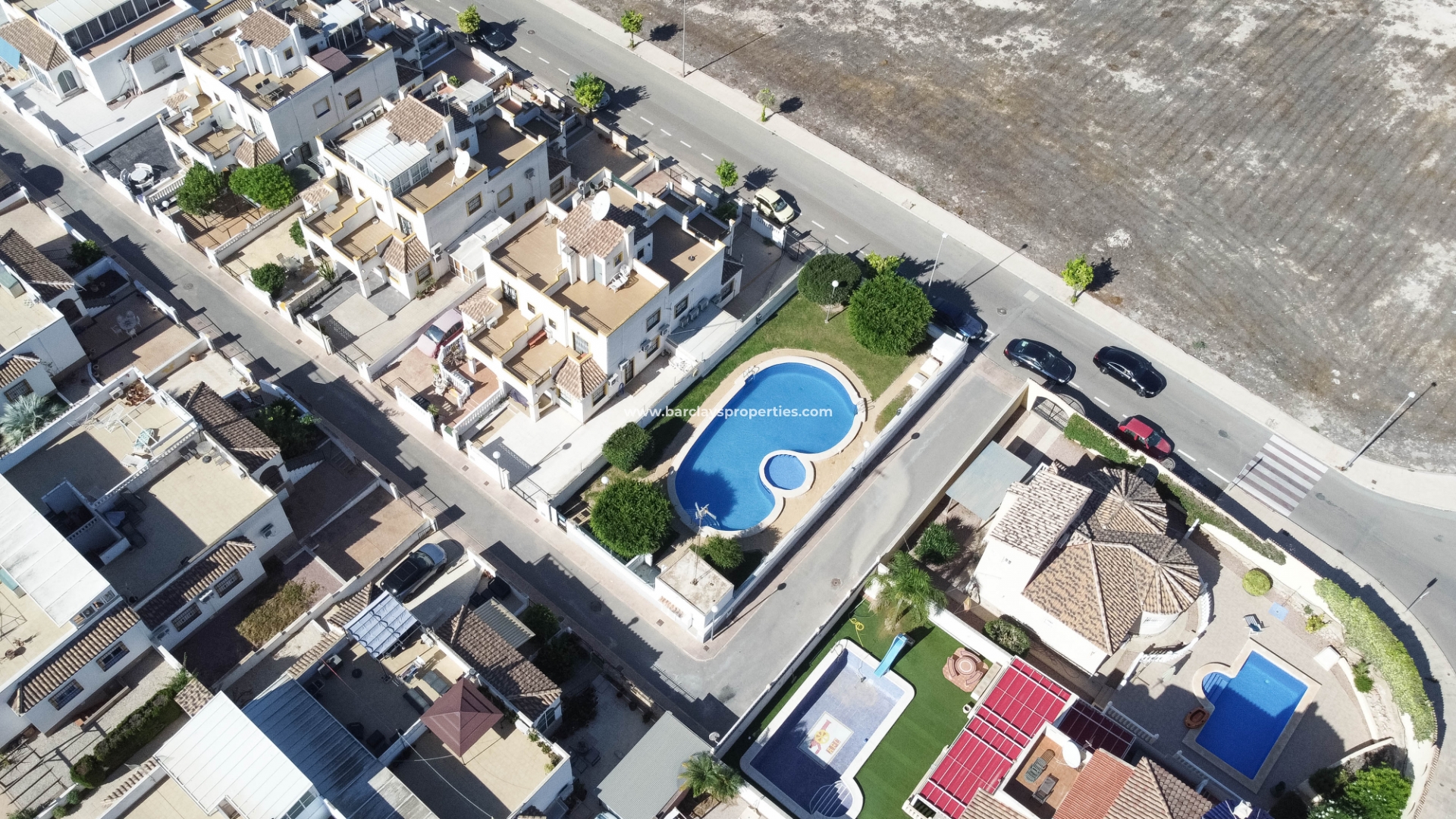 In een privé gemeenschap introduceren wij u dit populaire quad model, een "Isabel" die te koop staat in de urbanisatie La Marina, San Fulgencio. Deze charmante villa heeft toegang tot een goed onderhouden gemeenschappelijk zwembad met gras en verharde gebieden met grote bomen voor schaduw, buitendouches en een kinderzwembad. Voor degenen die het strand willen bezoeken, brengt een autorit van 5 minuten u naar het gouden strand van het dorp La Marina. Voor familie en vrienden is de dichtstbijzijnde luchthaven Alicante-Elche slechts 25 minuten rijden van het huis.